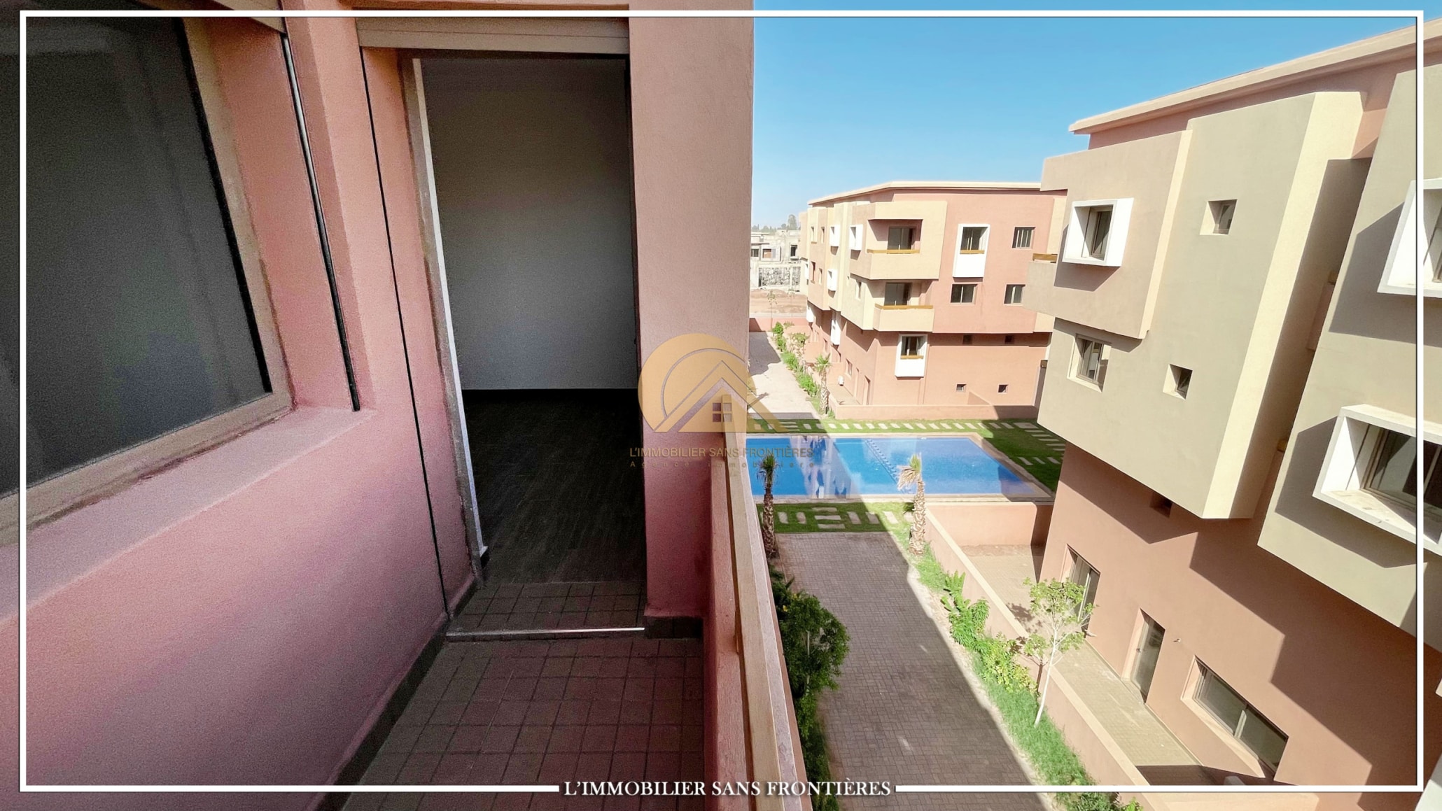 Real Estate Without Borders offers this unfurnished apartment for rent in Targa, Marrakech, on the 2nd floor. The listing mentions a residence with a communal pool and communal garden, as well as a private garden for the apartment, and proximity to shops.