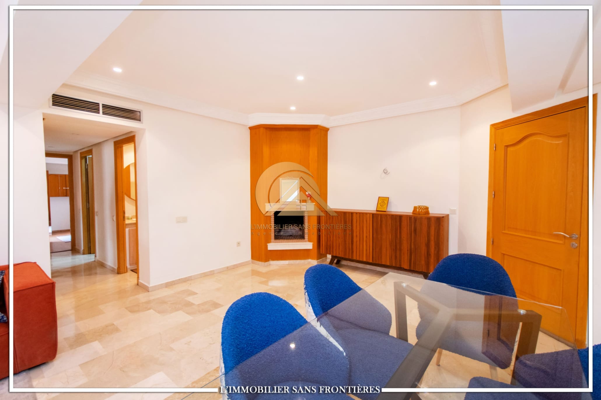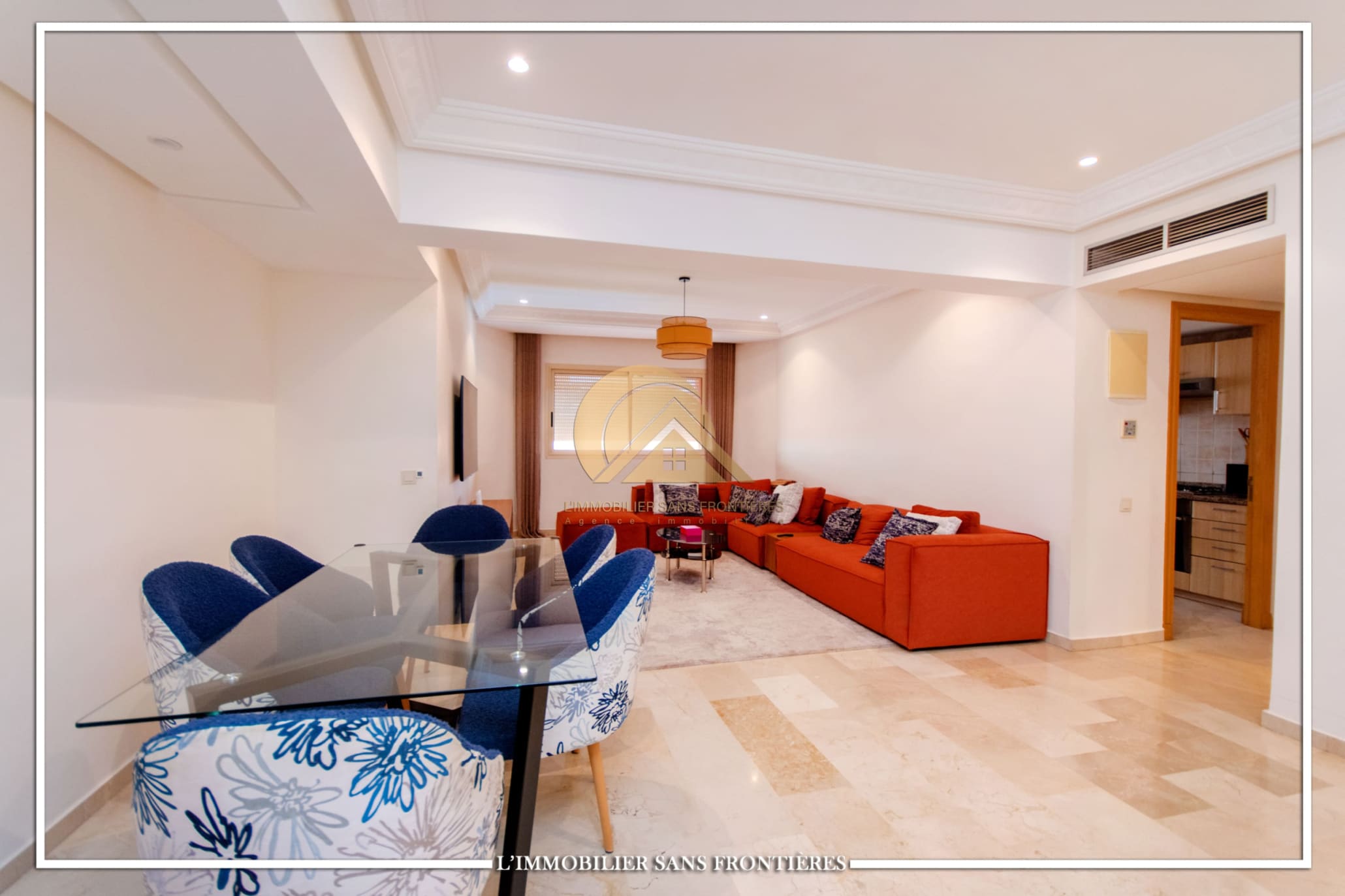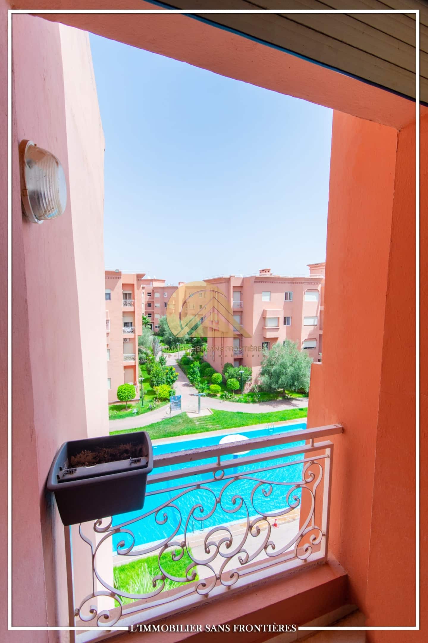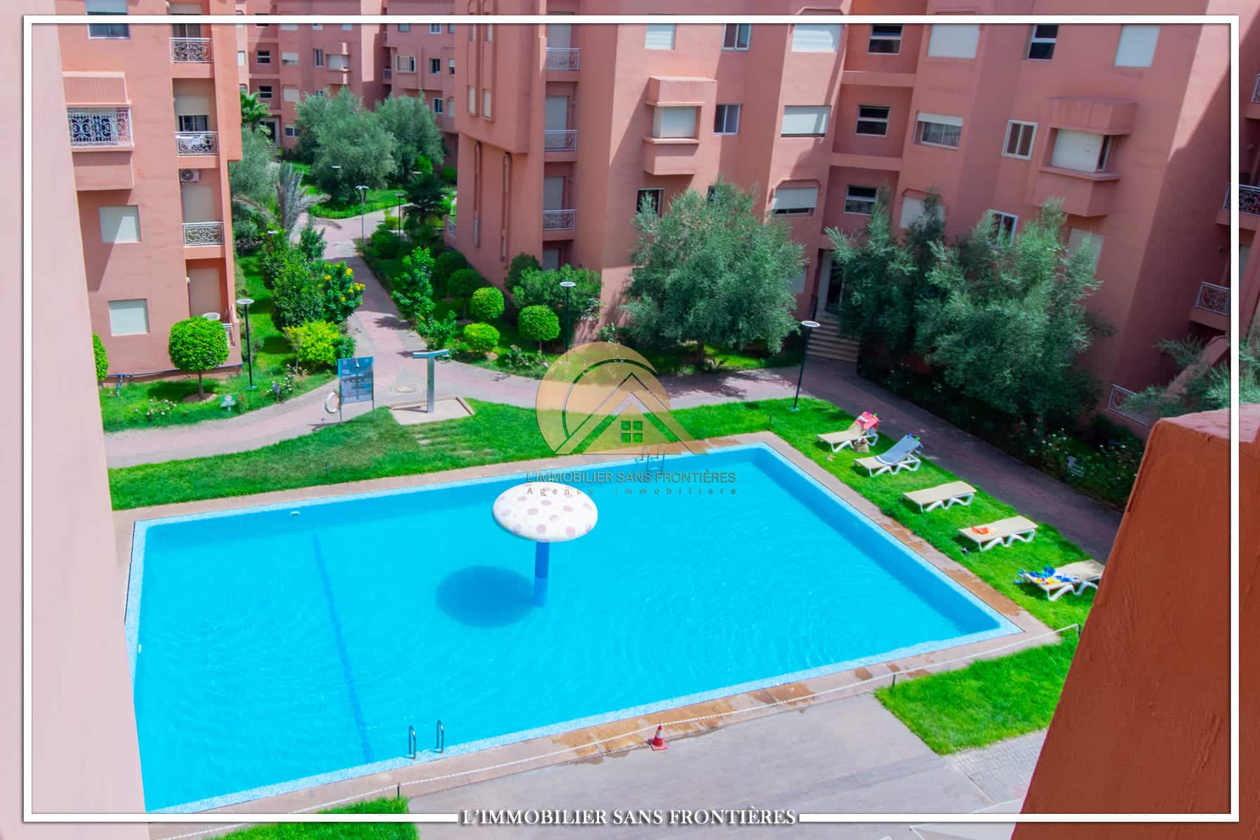 Real Estate Without Borders offers this furnished apartment for rent on Route de Casablanca, Marrakech, in a calm and secured residence with garden and pool. It has a pool view and is located on the 3rd floor.