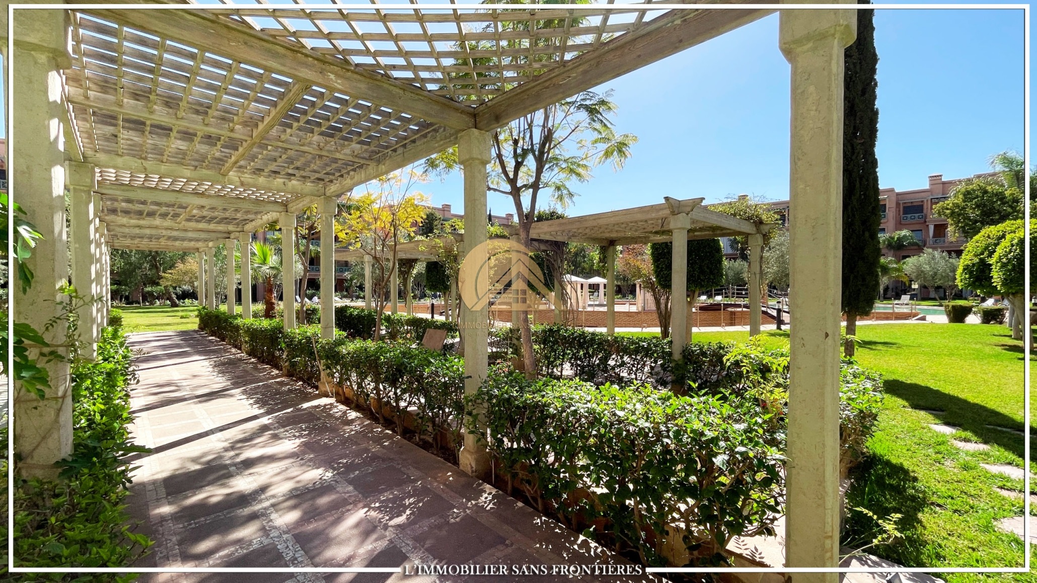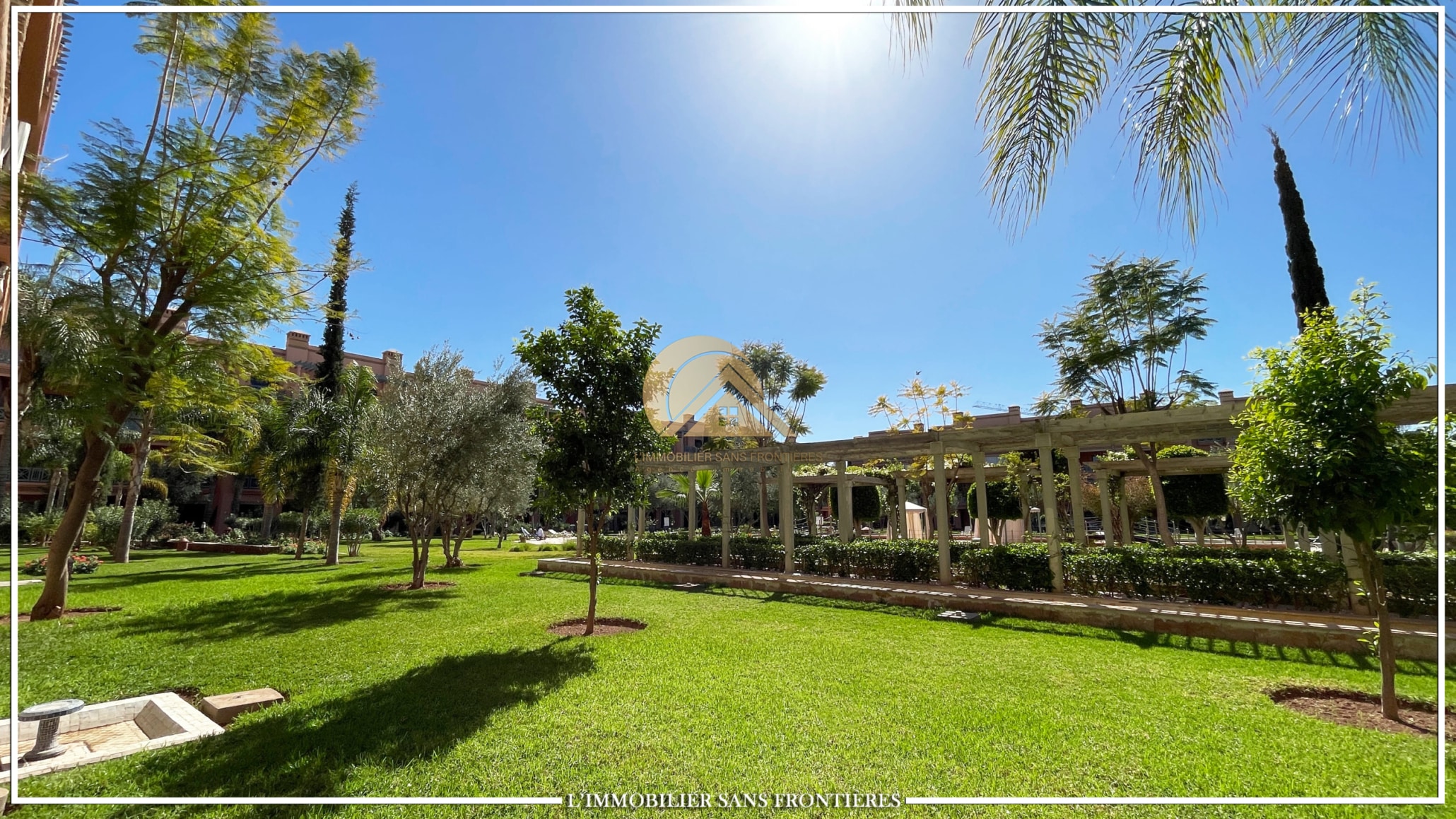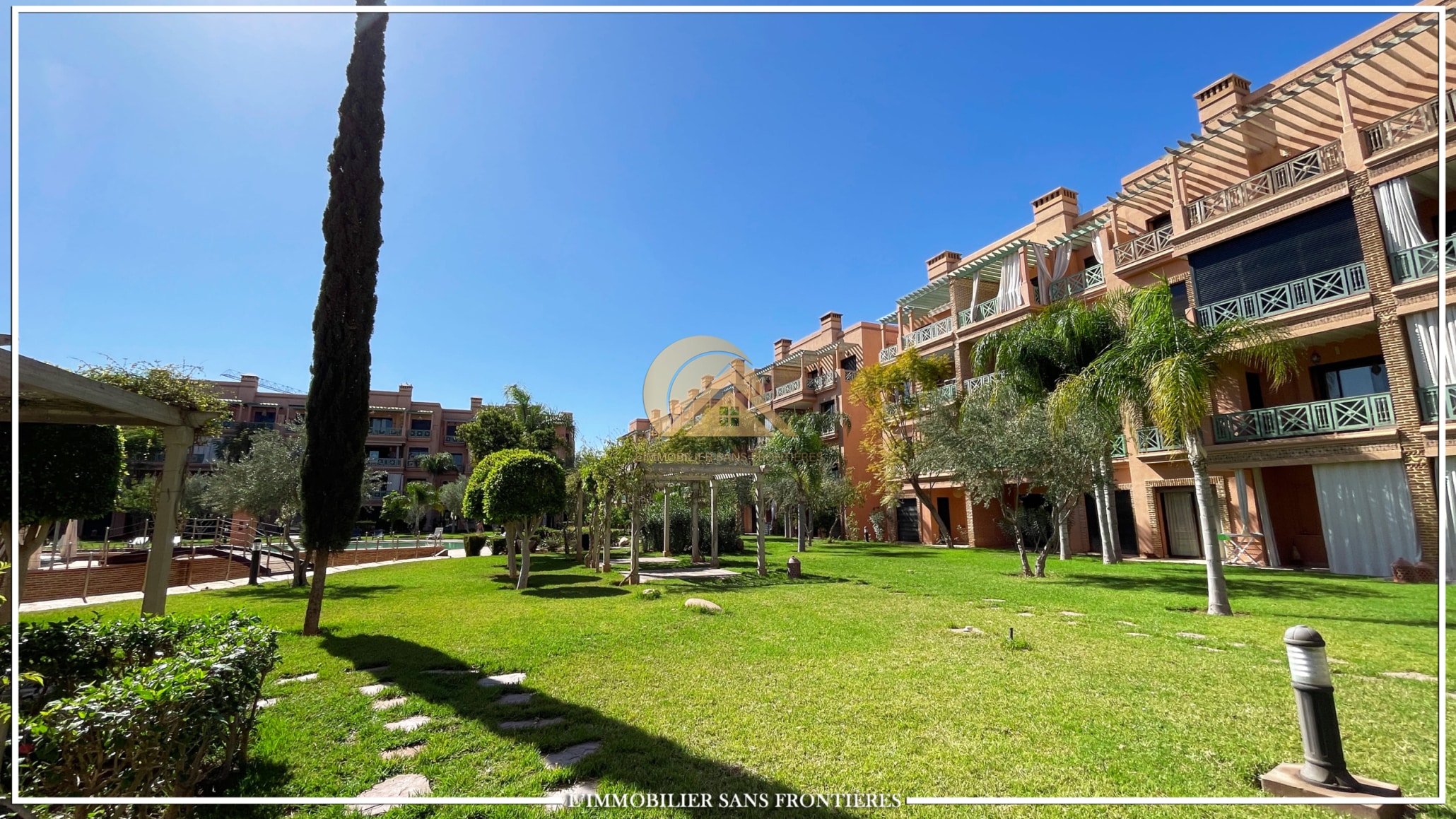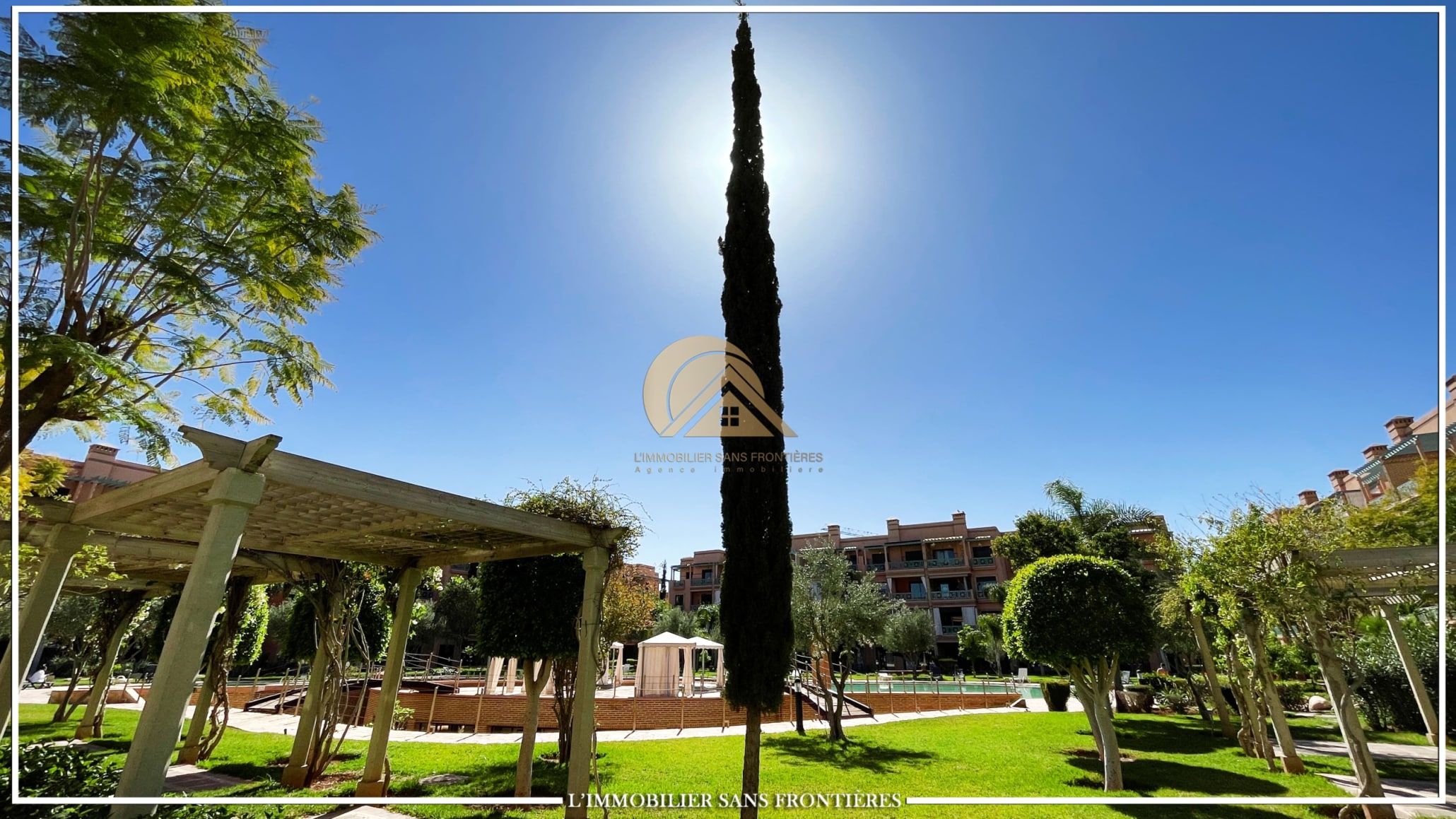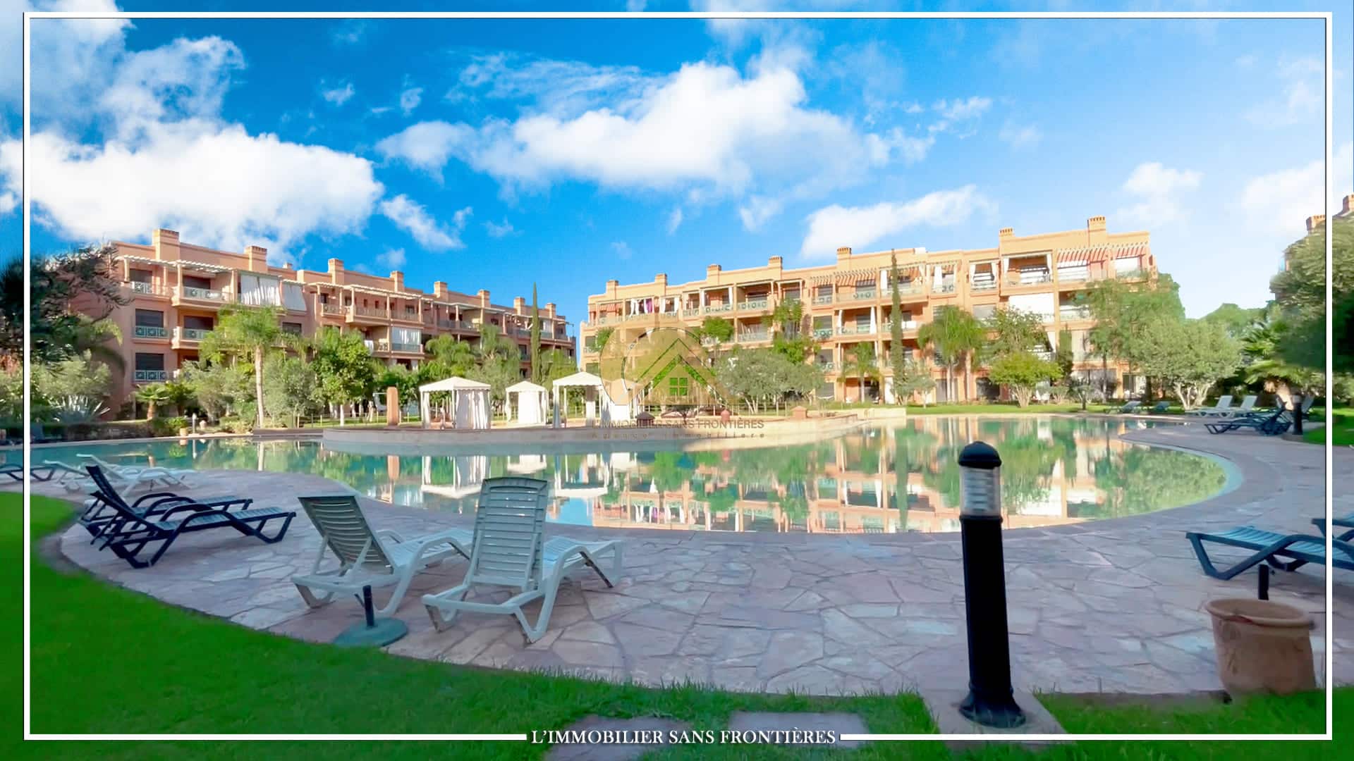 Real Estate Without Borders offers this apartment for rent in Agdal, Marrakech, within a secure residence with pool and garden. It is presented as close to Guéliz and to the district’s restaurants, cafés, shops, and attractions.