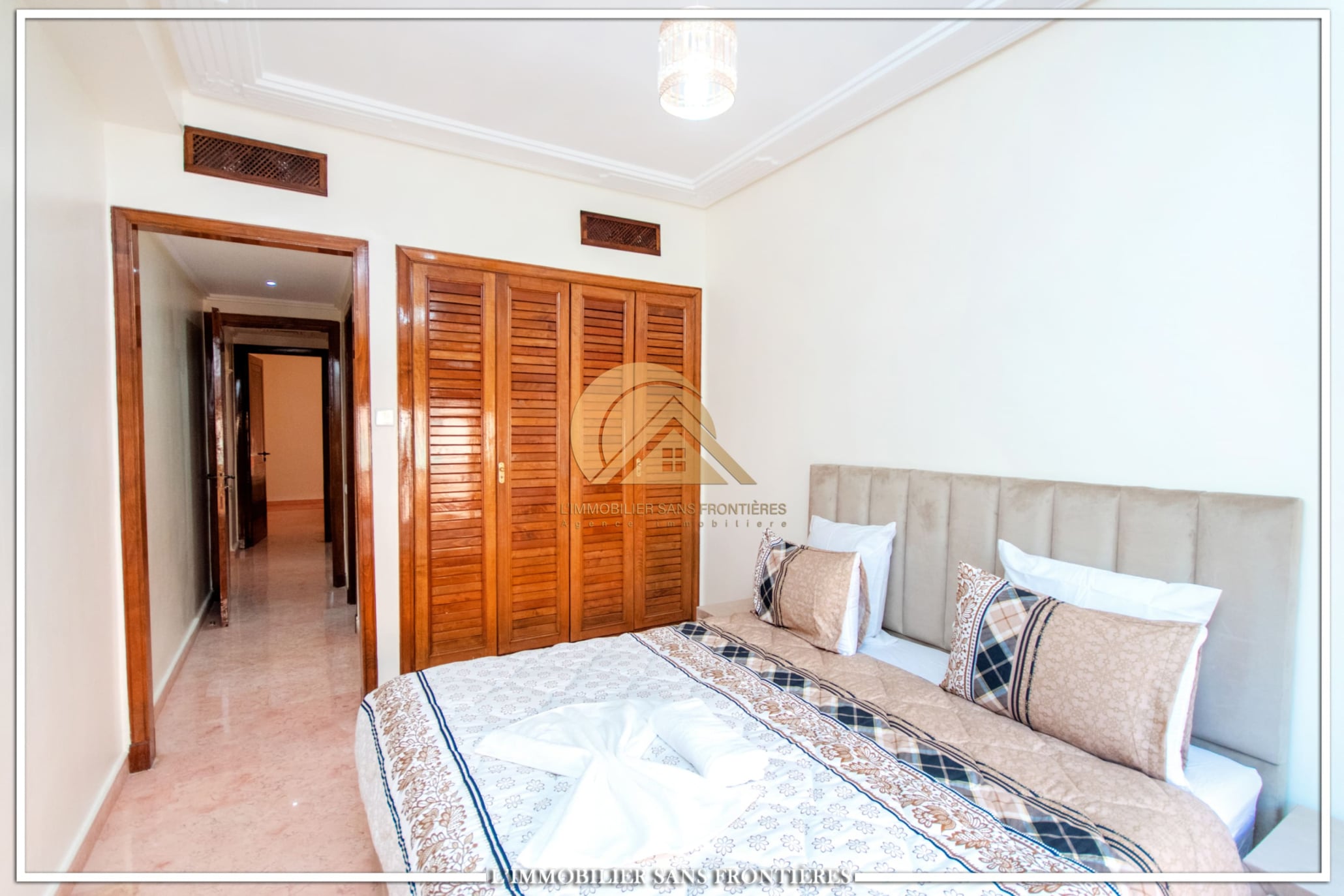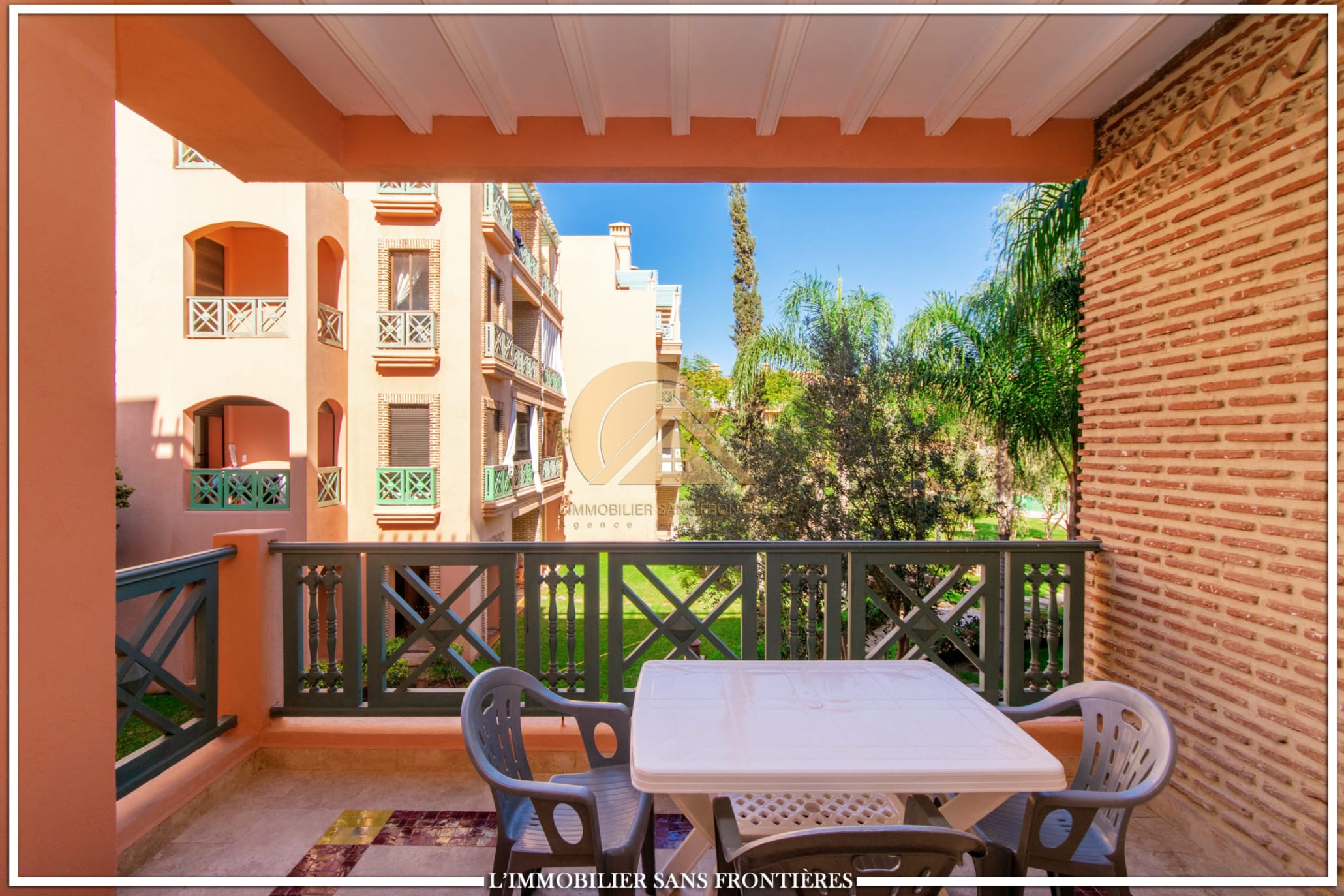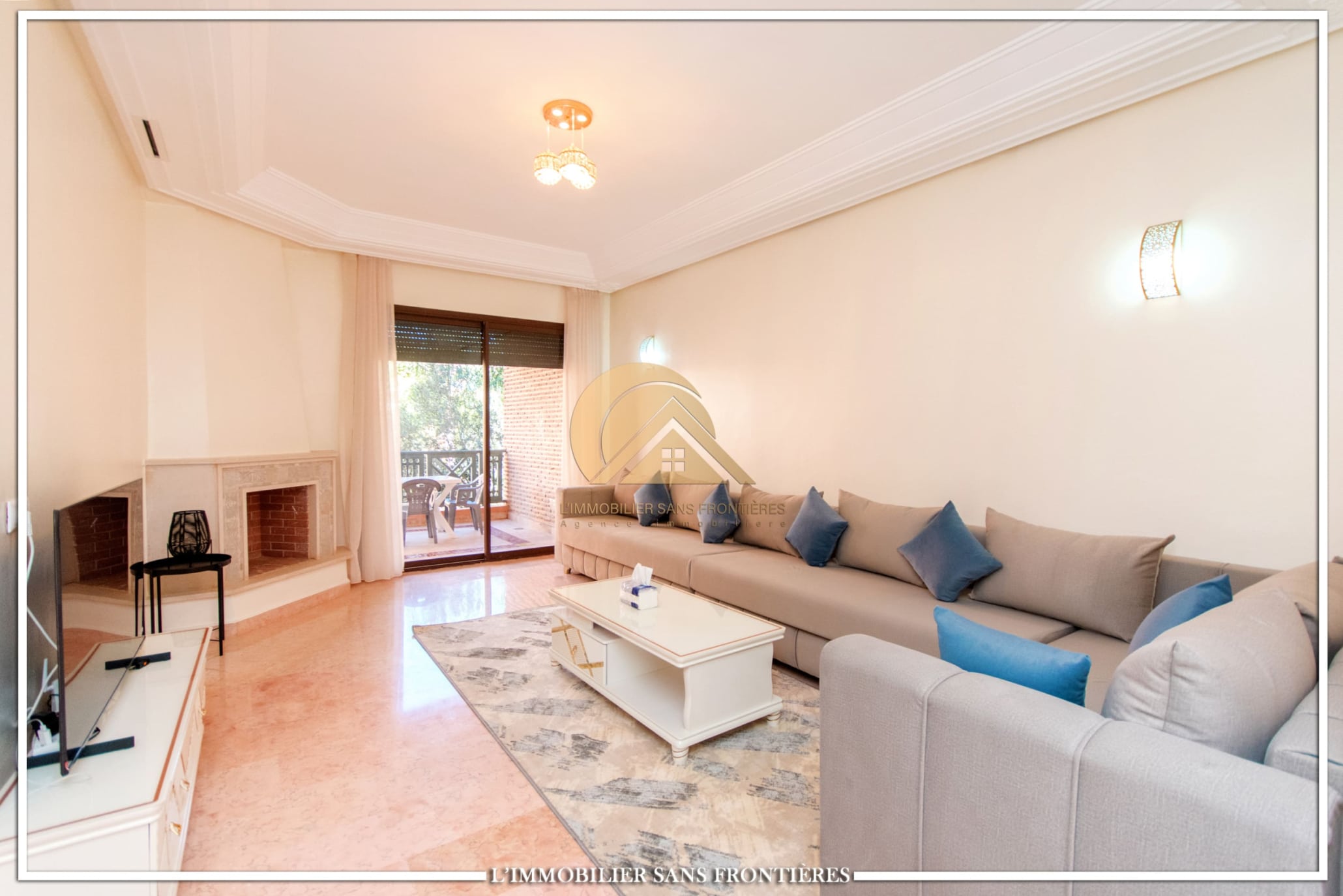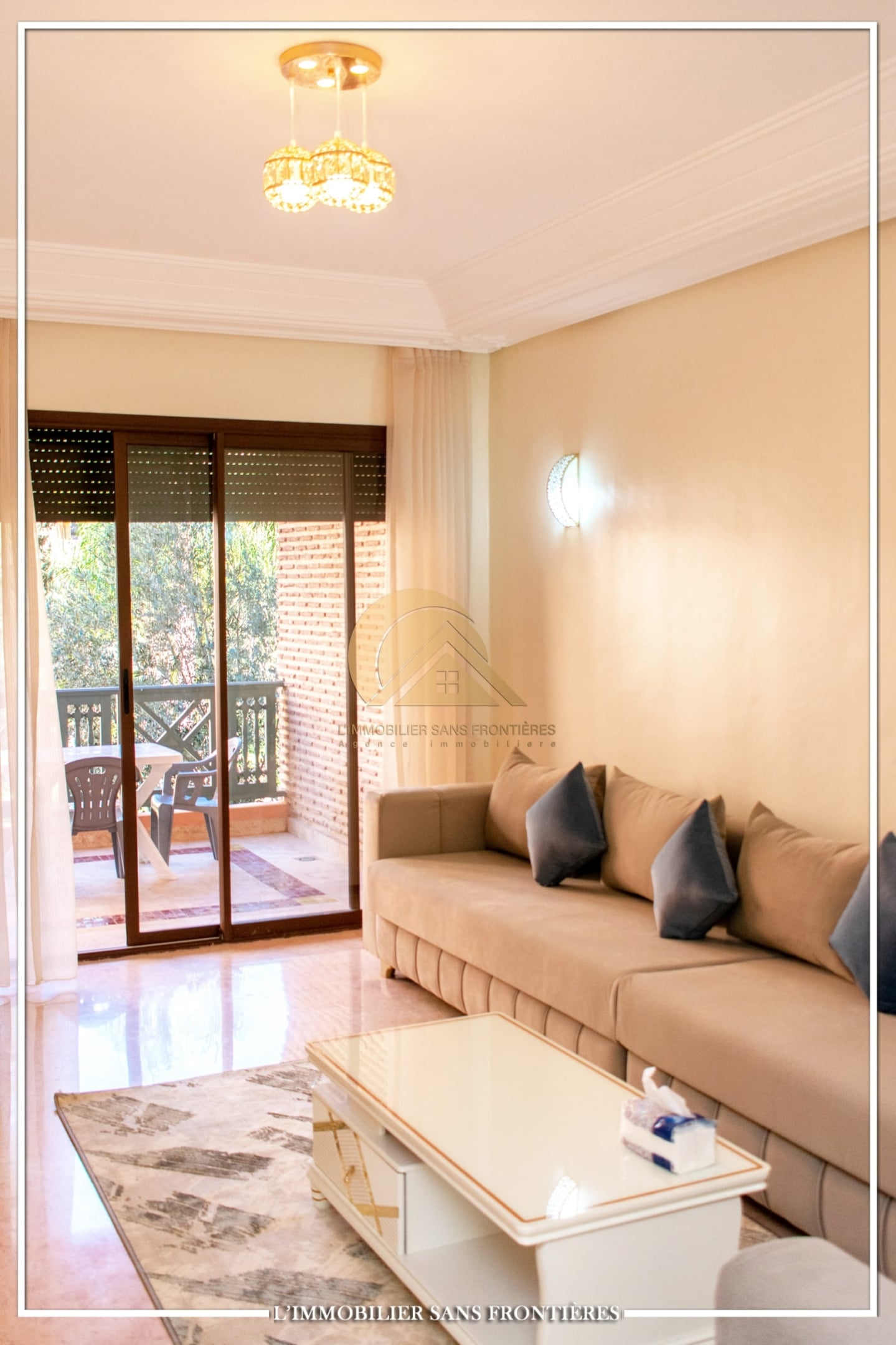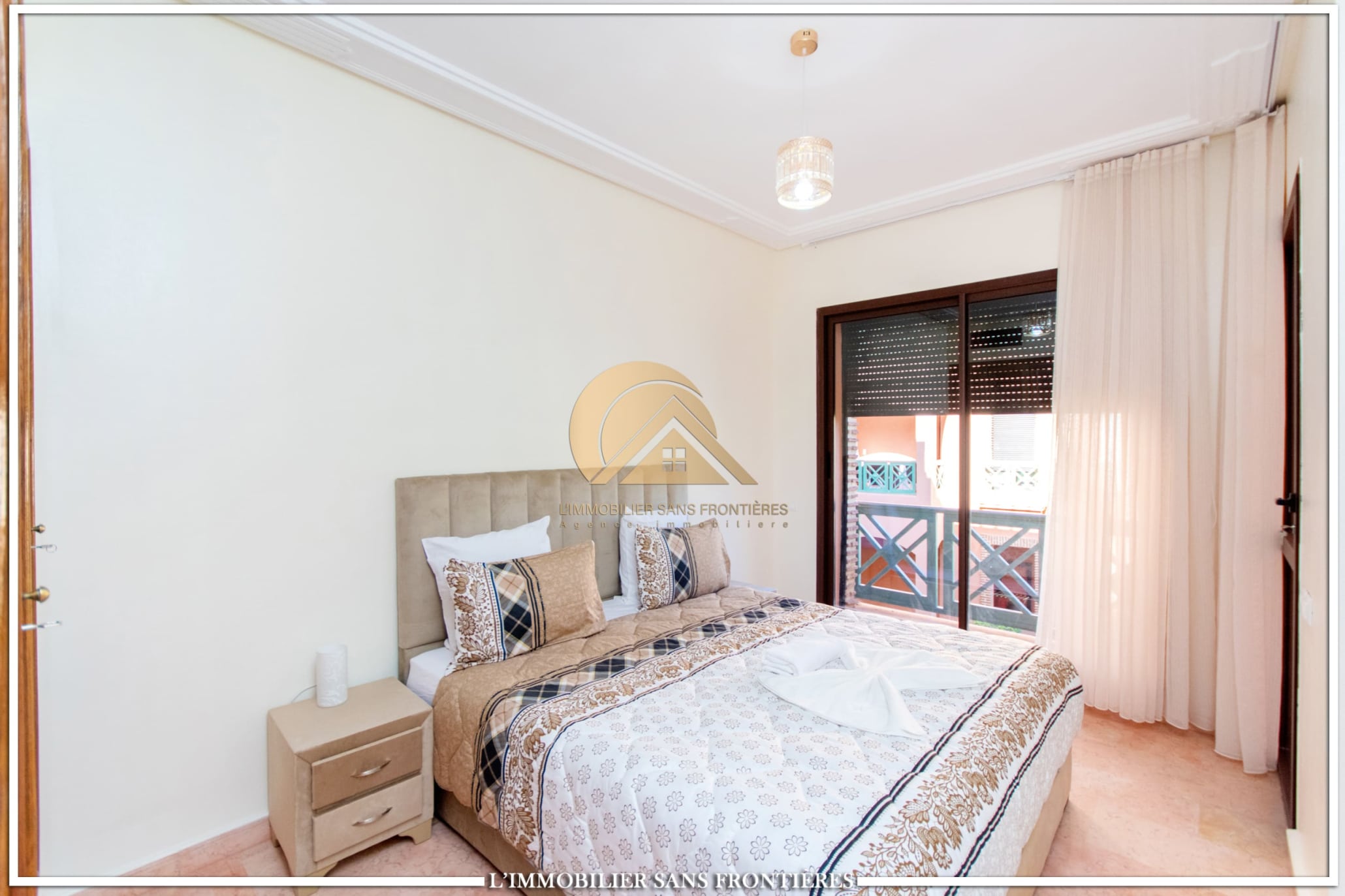 Real Estate Without Borders offers this apartment for rent in Agdal, Marrakech, within a secure residence with pool and garden. It is presented as close to Guéliz and to the district’s restaurants, cafés, shops, and attractions.