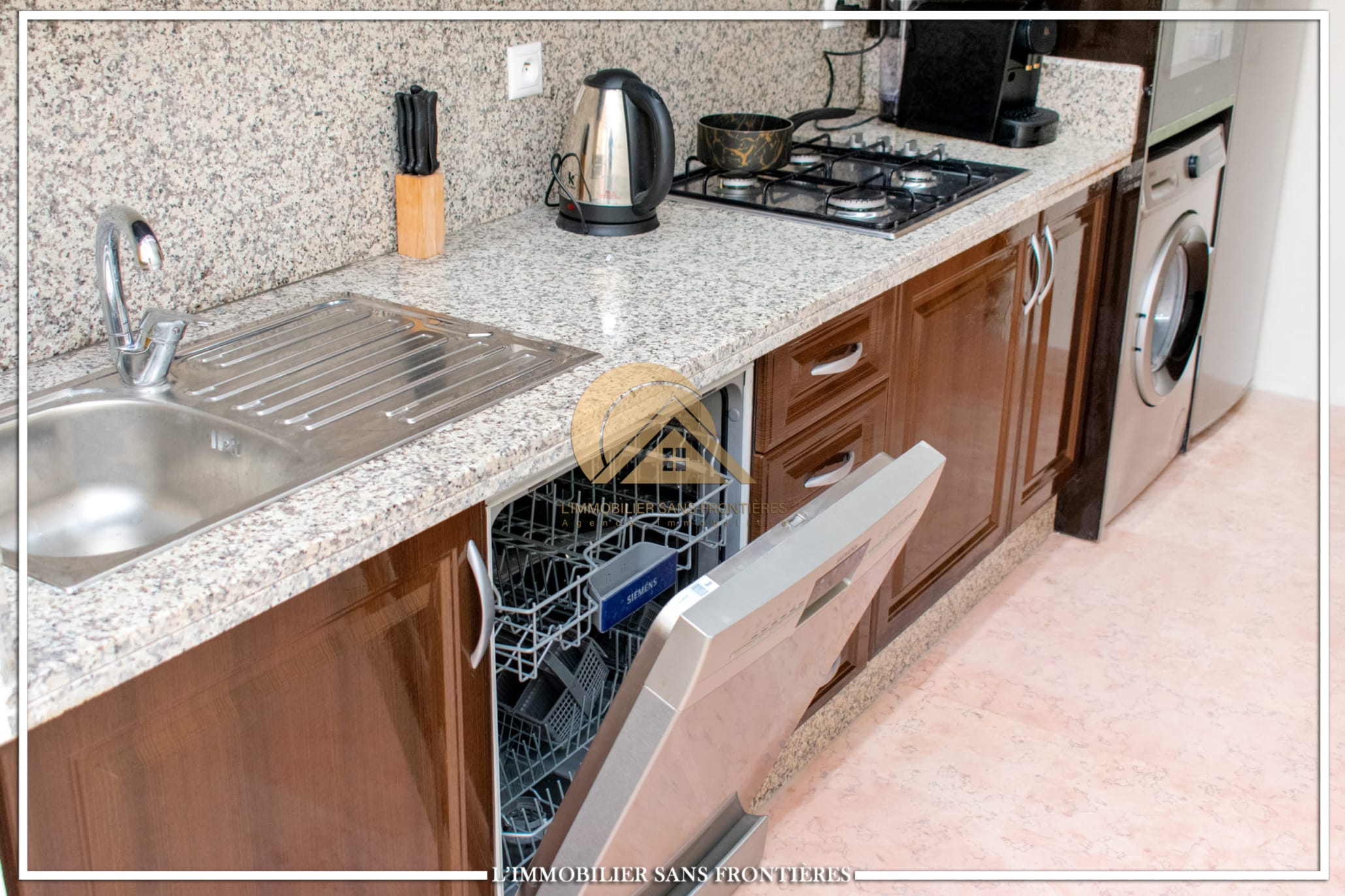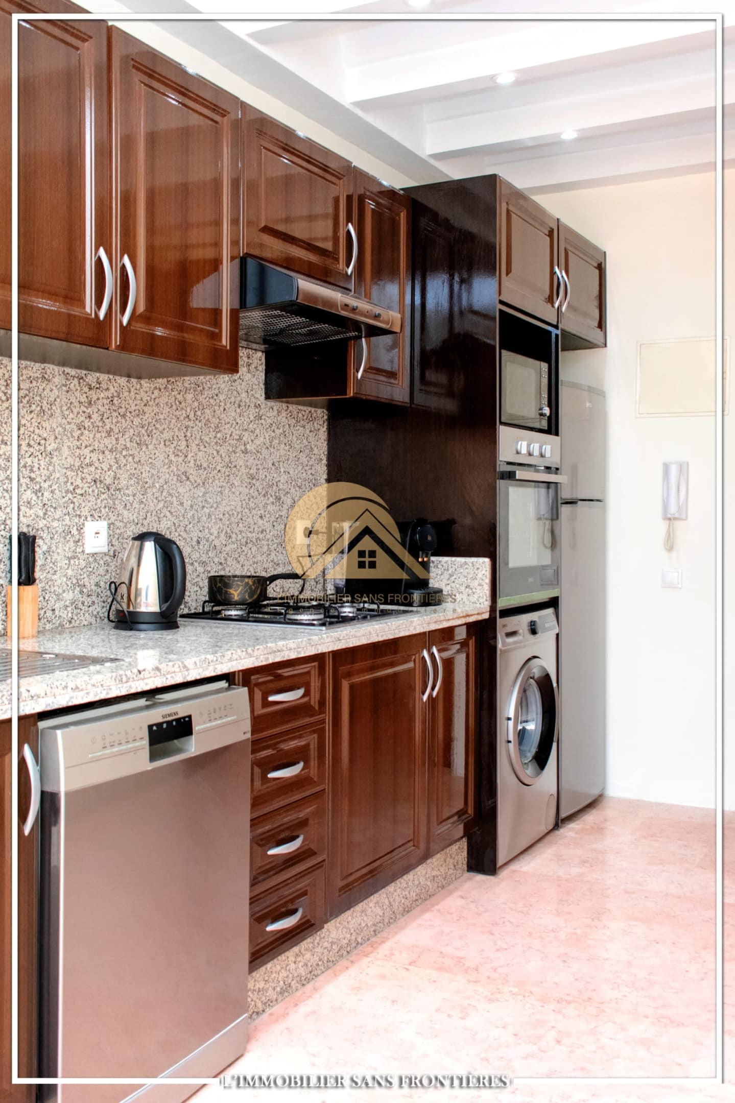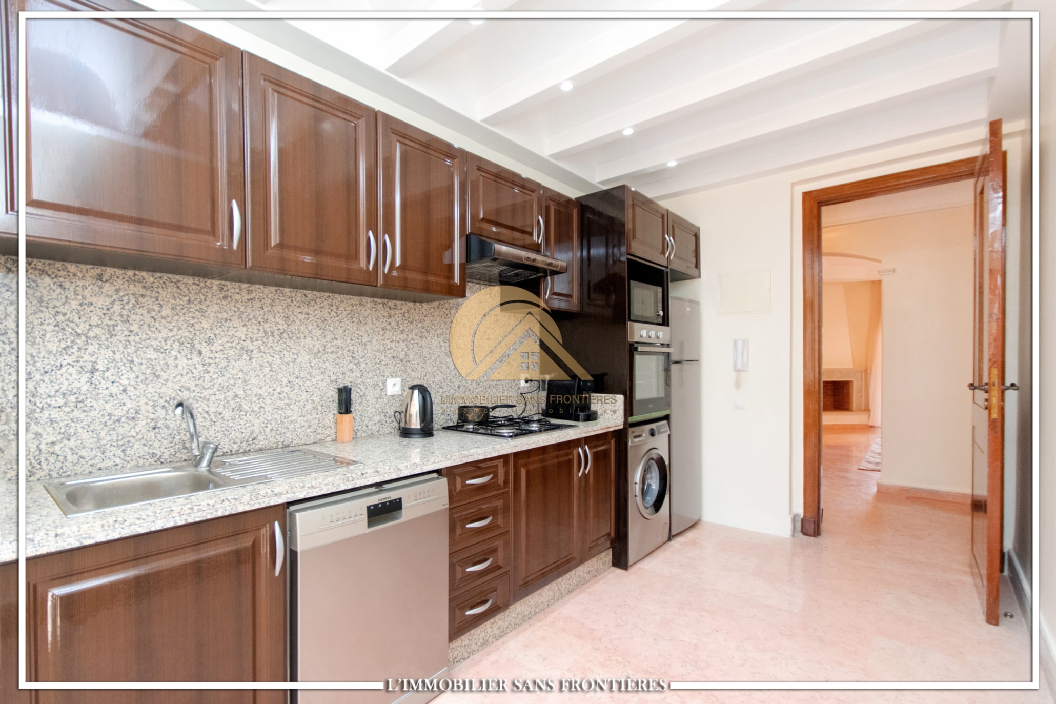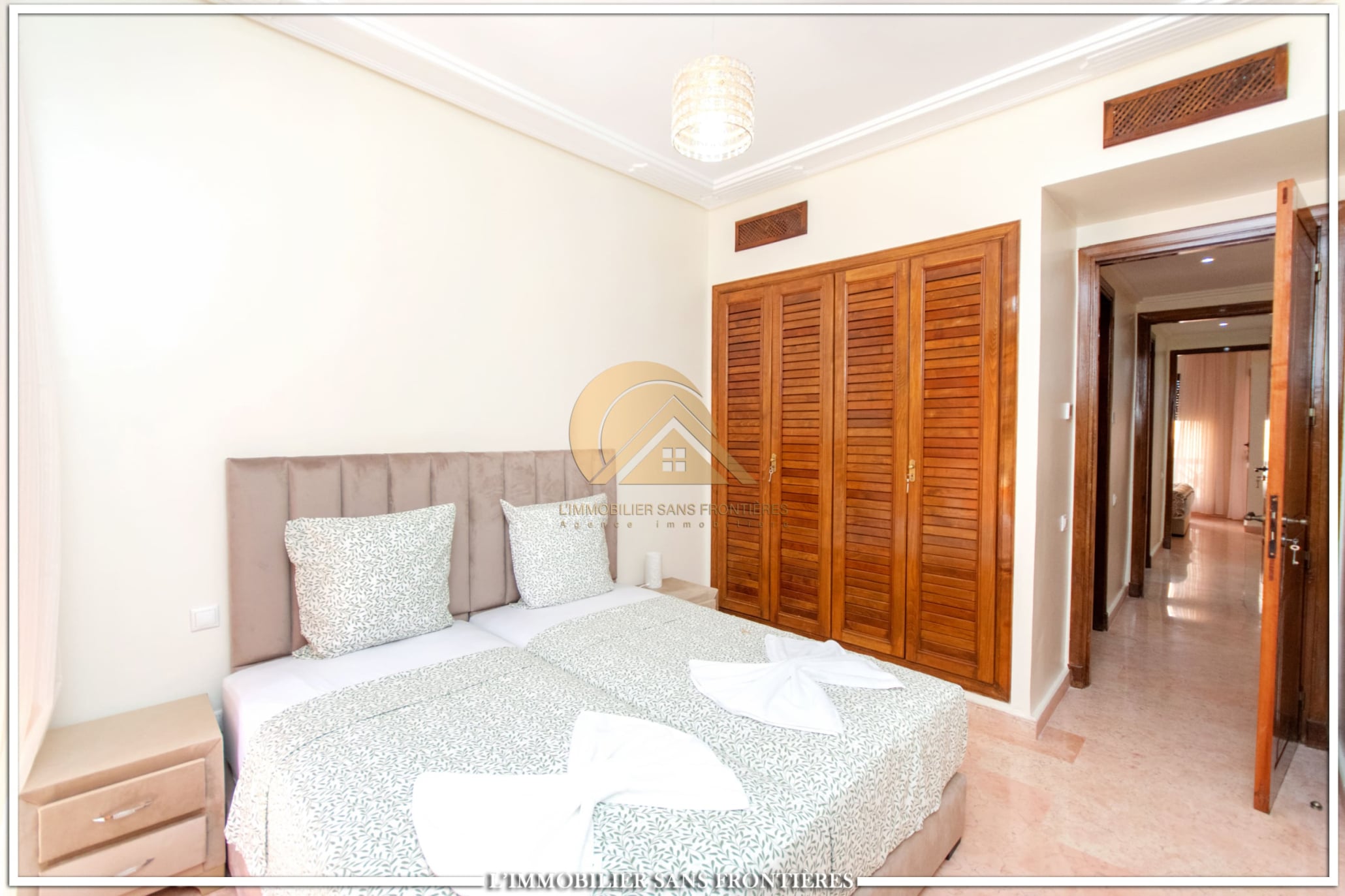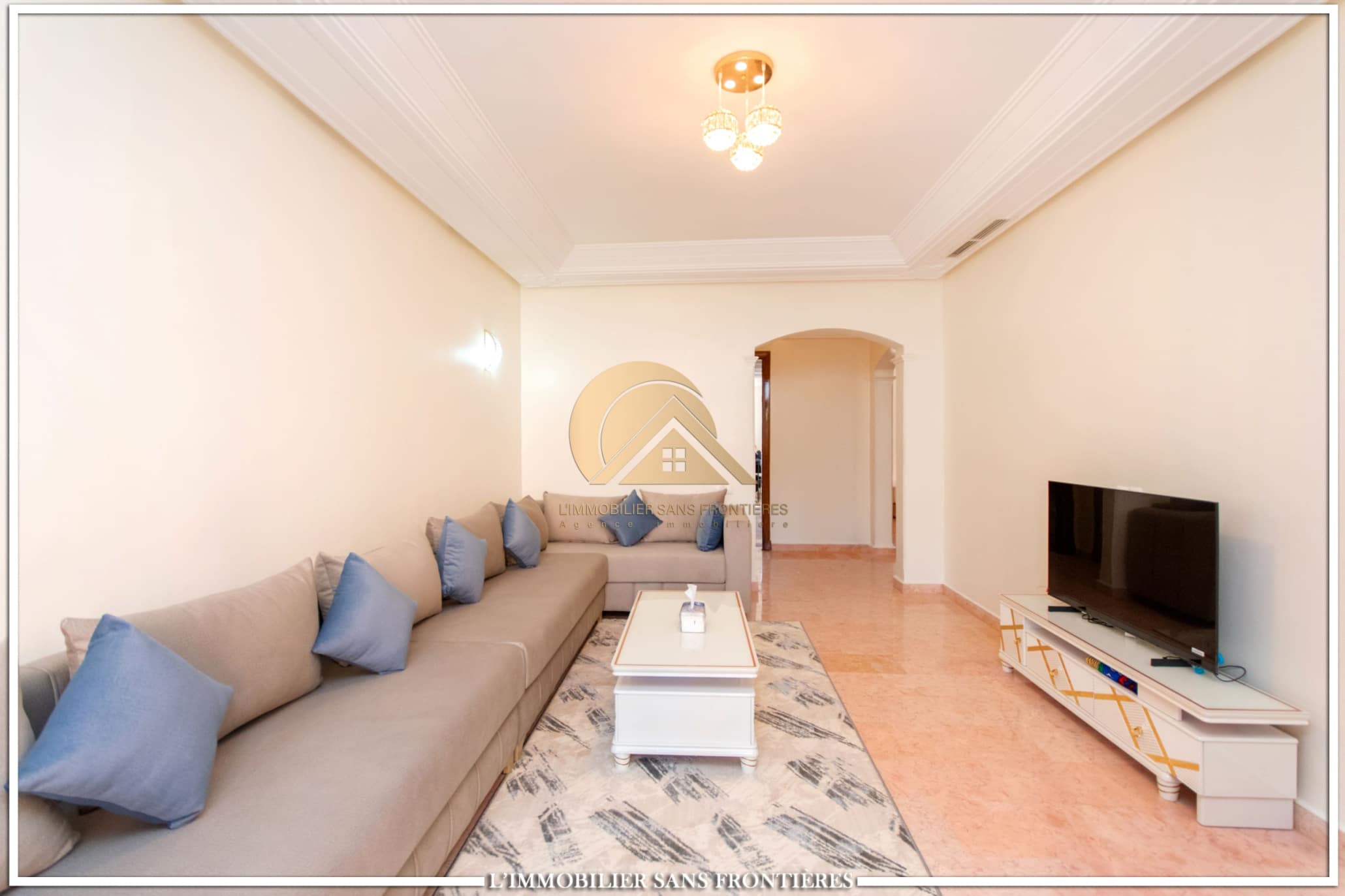 Real Estate Without Borders offers this apartment for rent in Agdal, Marrakech, within a secure residence with pool and garden. It is presented as close to Guéliz and to the district’s restaurants, cafés, shops, and attractions.