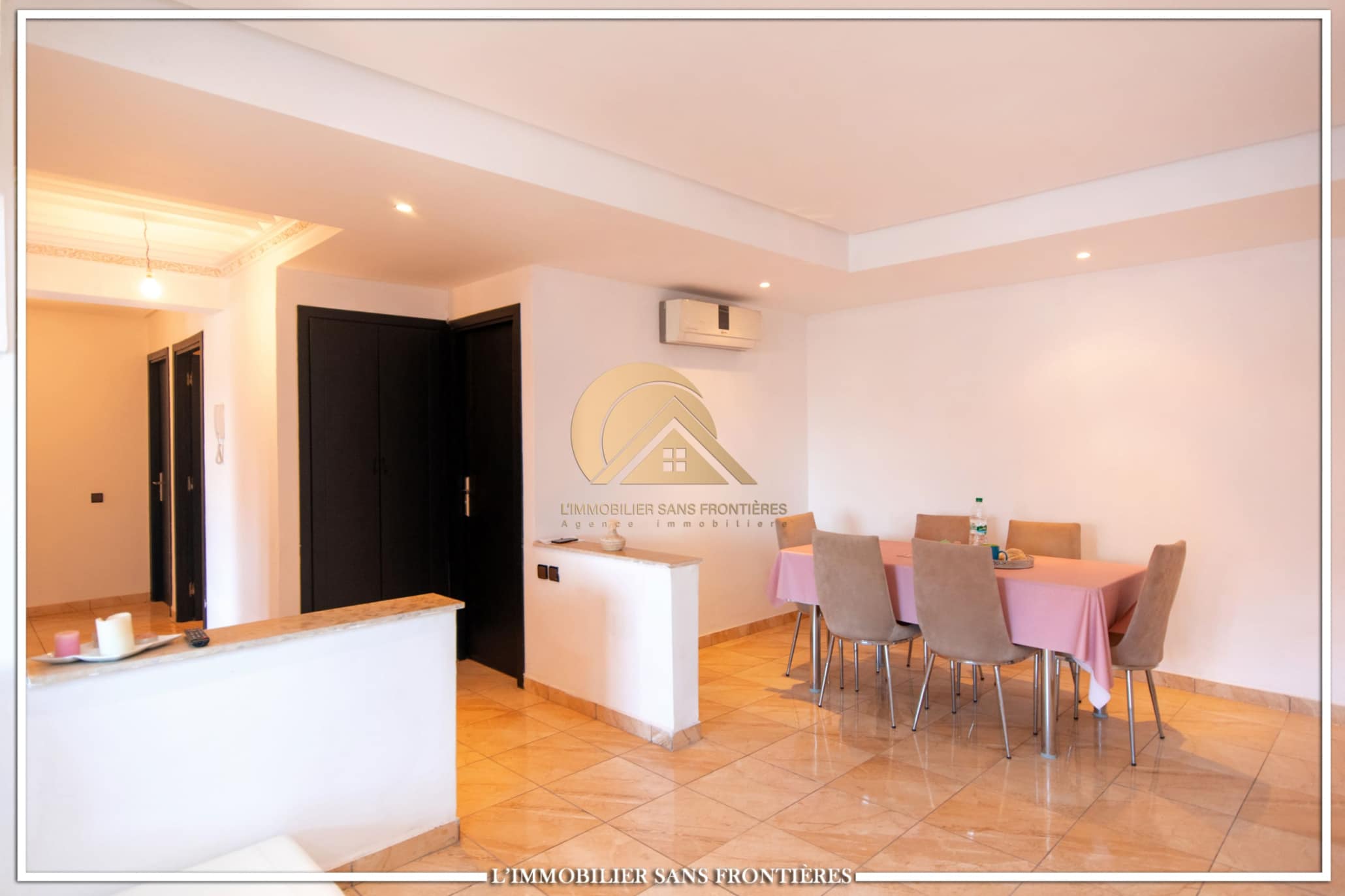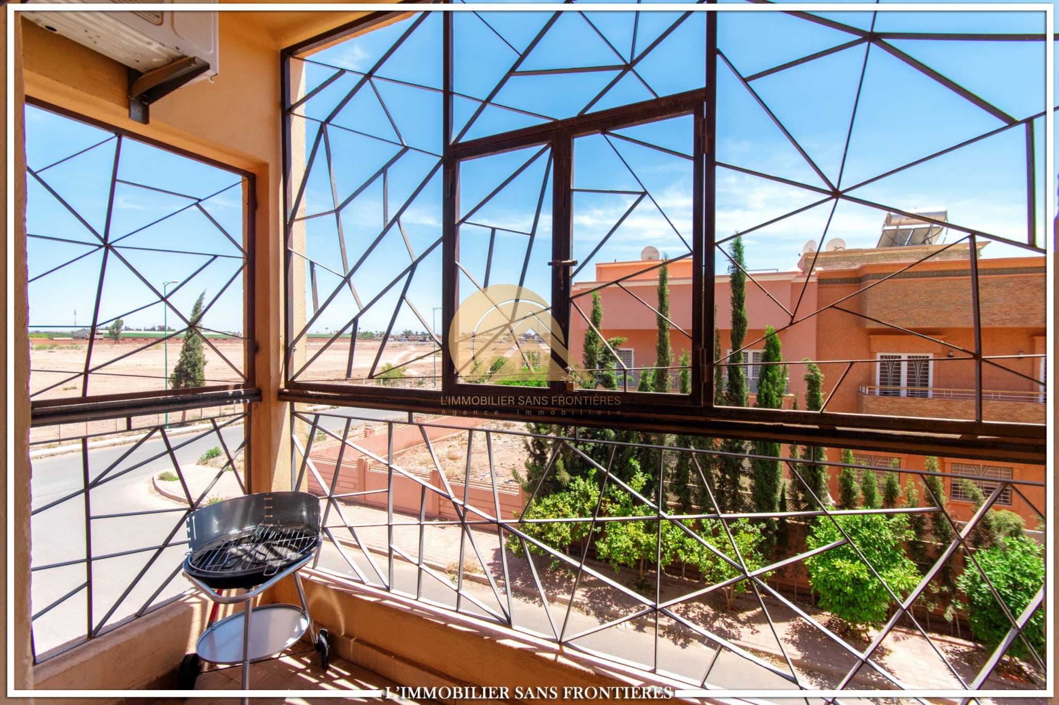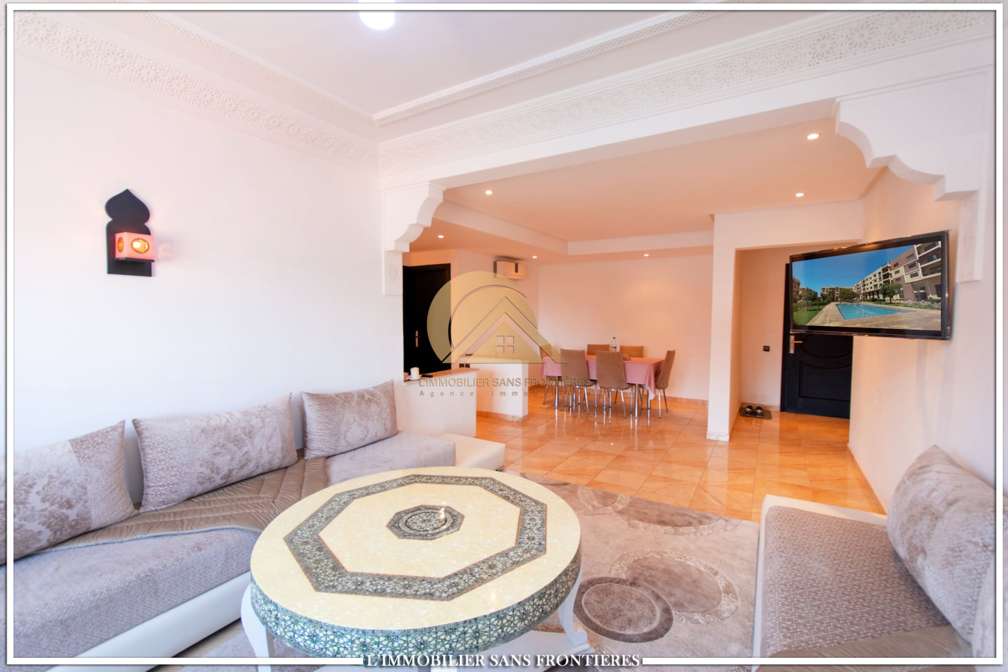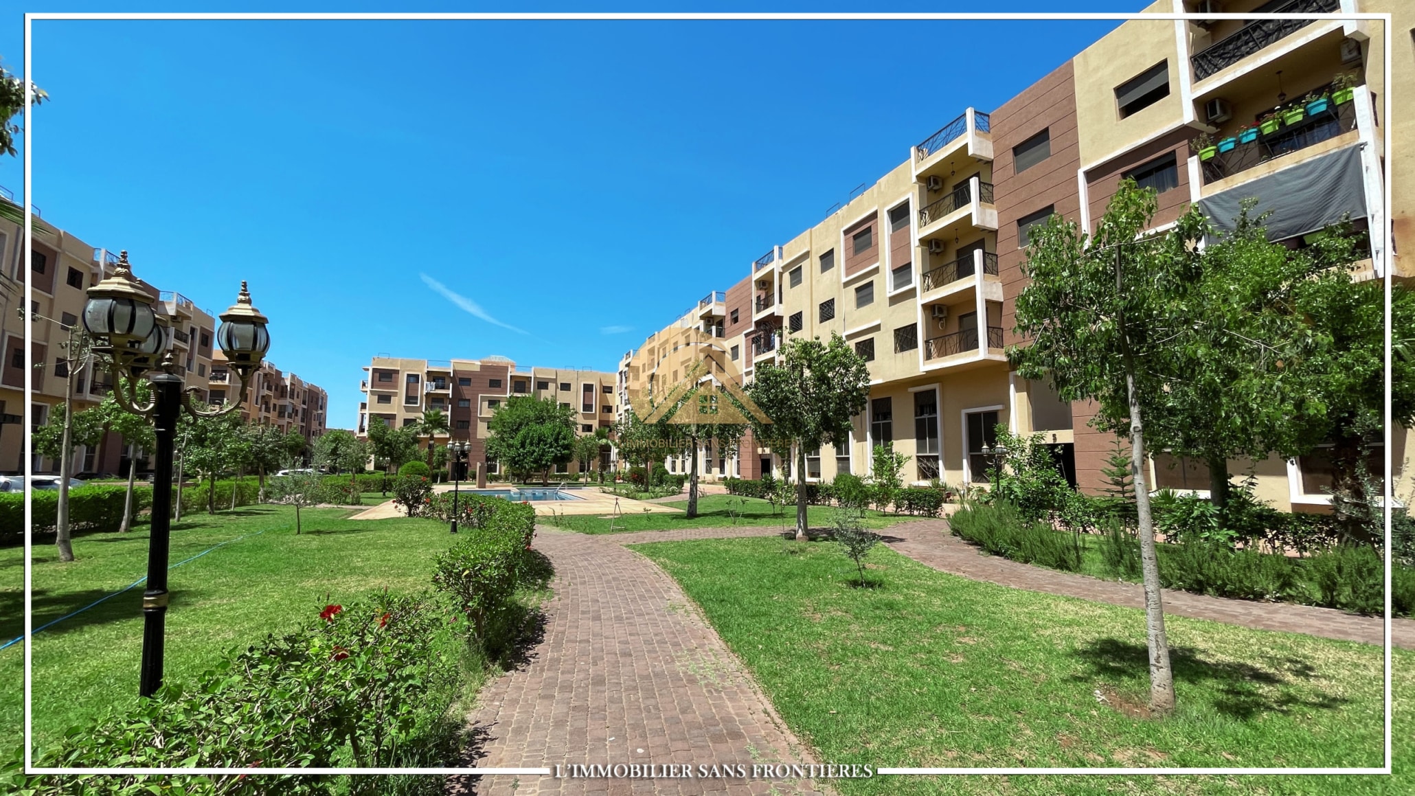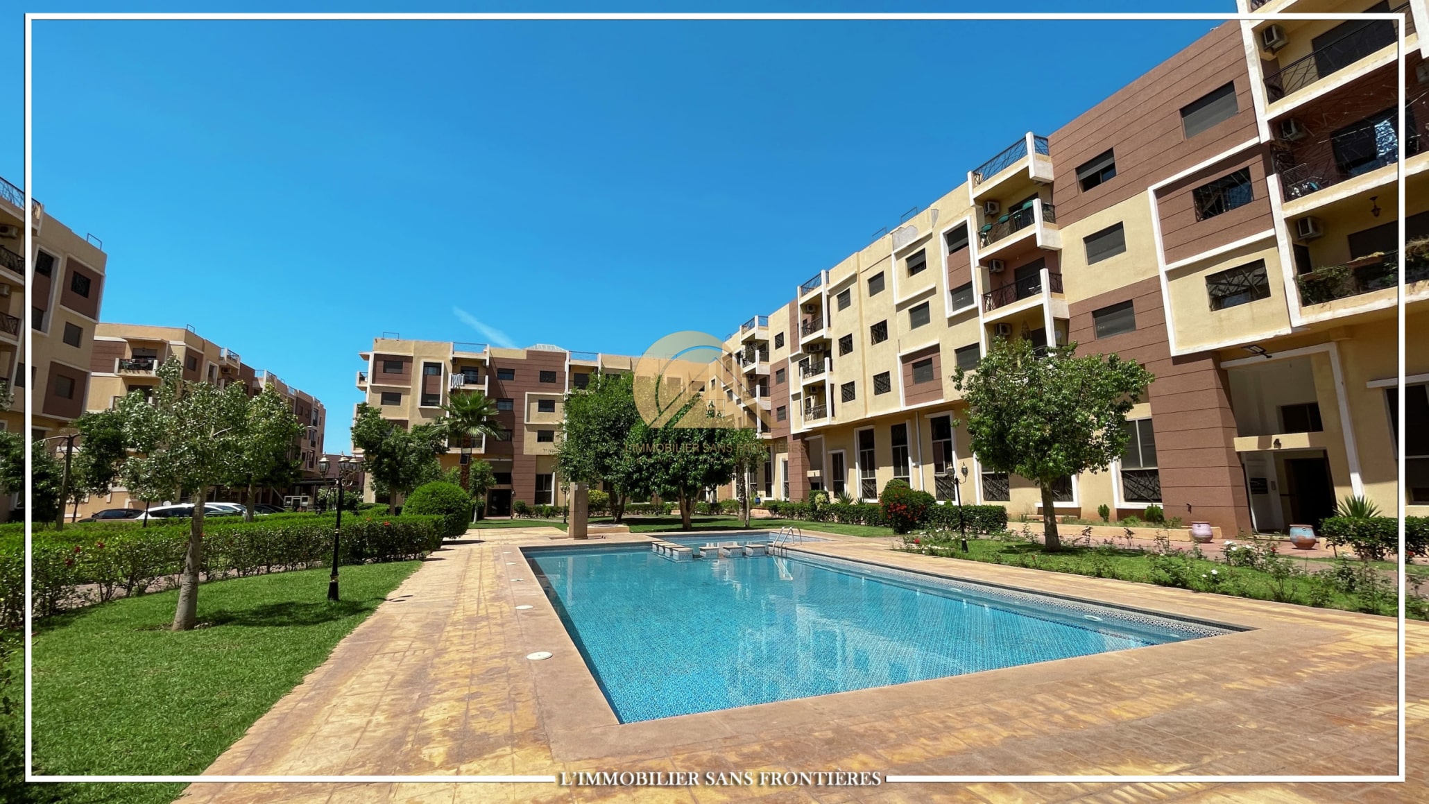 Real Estate Without Borders offers this apartment for rent on Route d’Agadir in Marrakech, within a secure residence with pool and shared garden. The setting is described as calm and close to the Agafay desert.