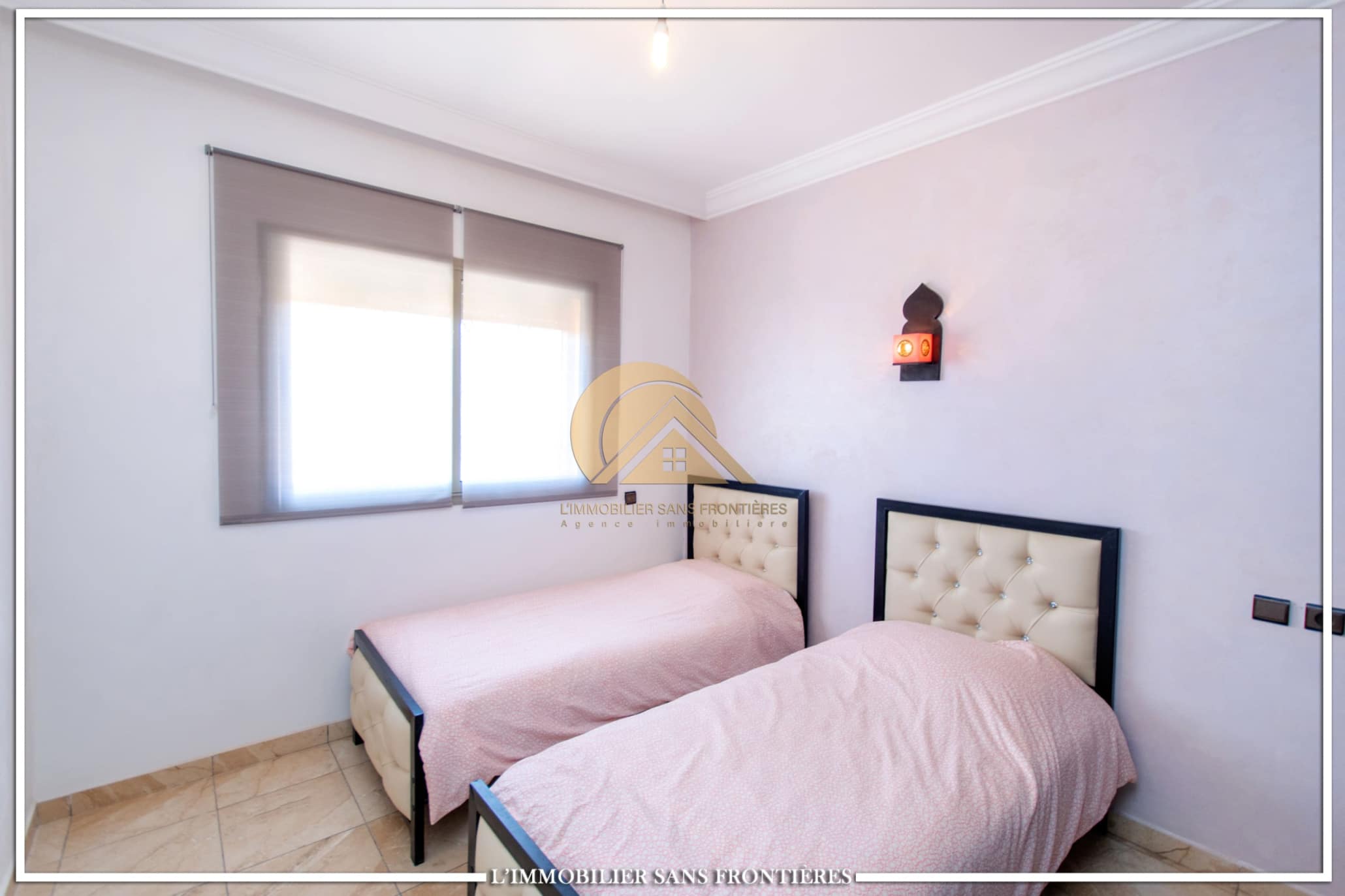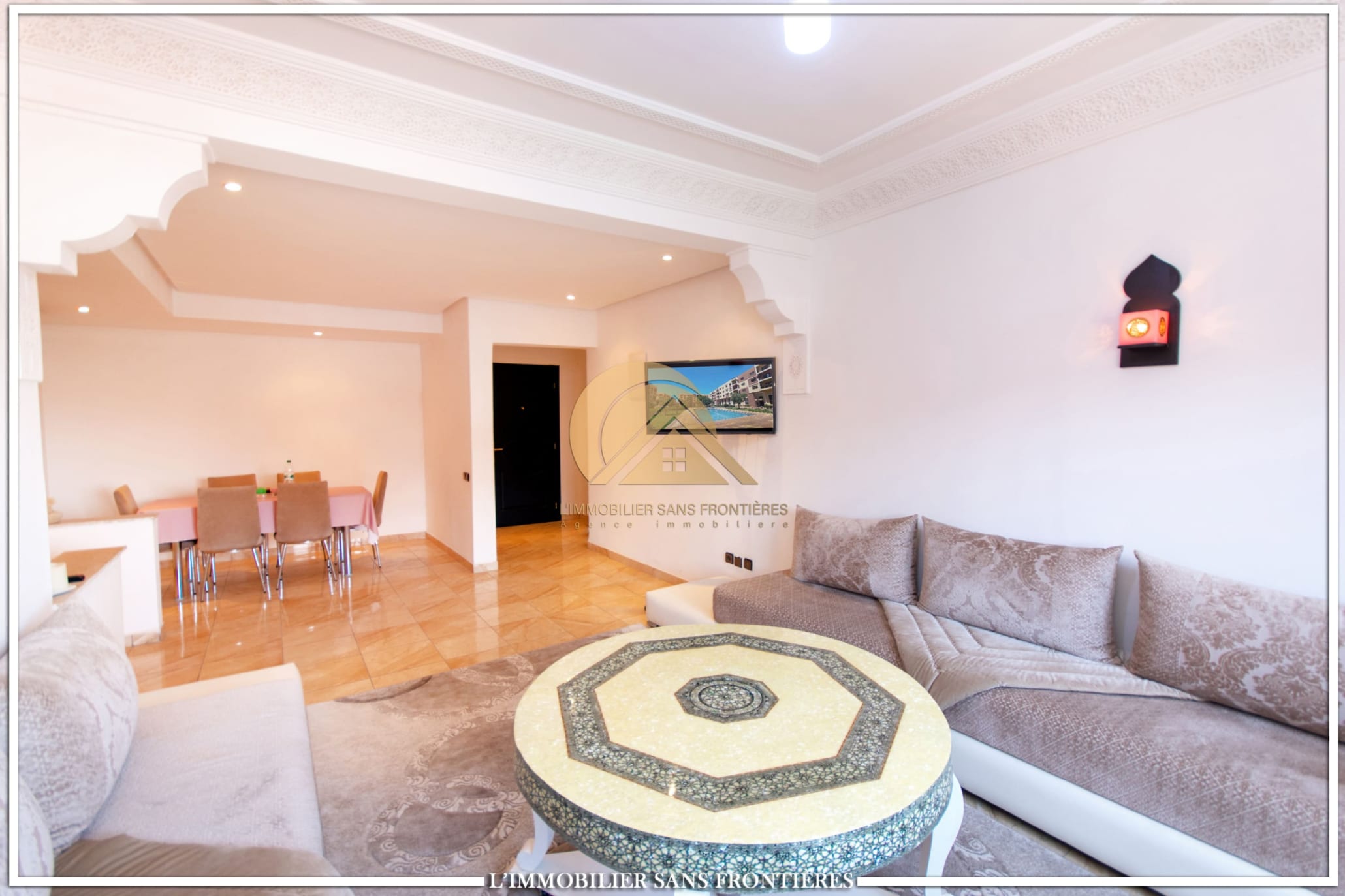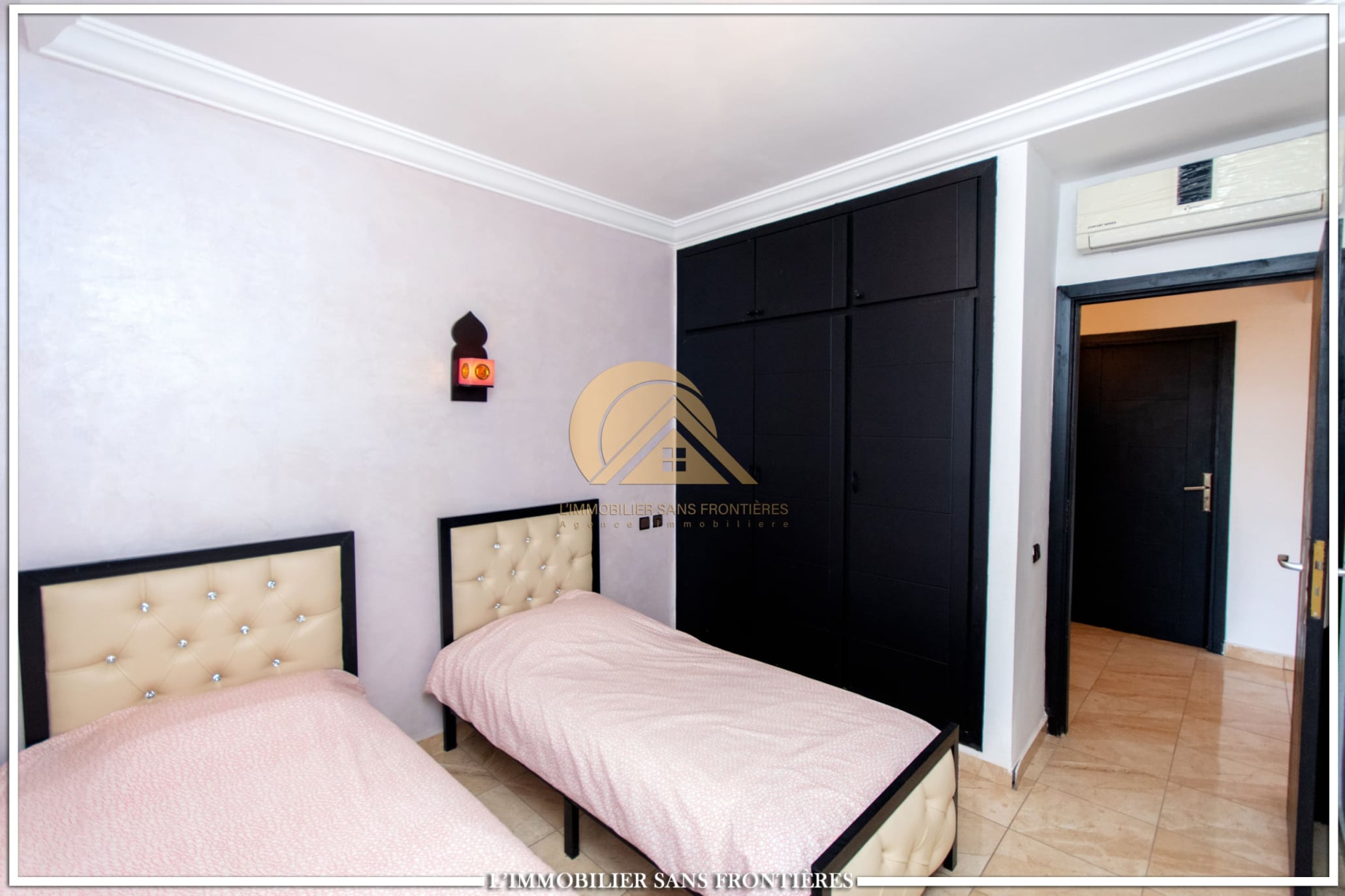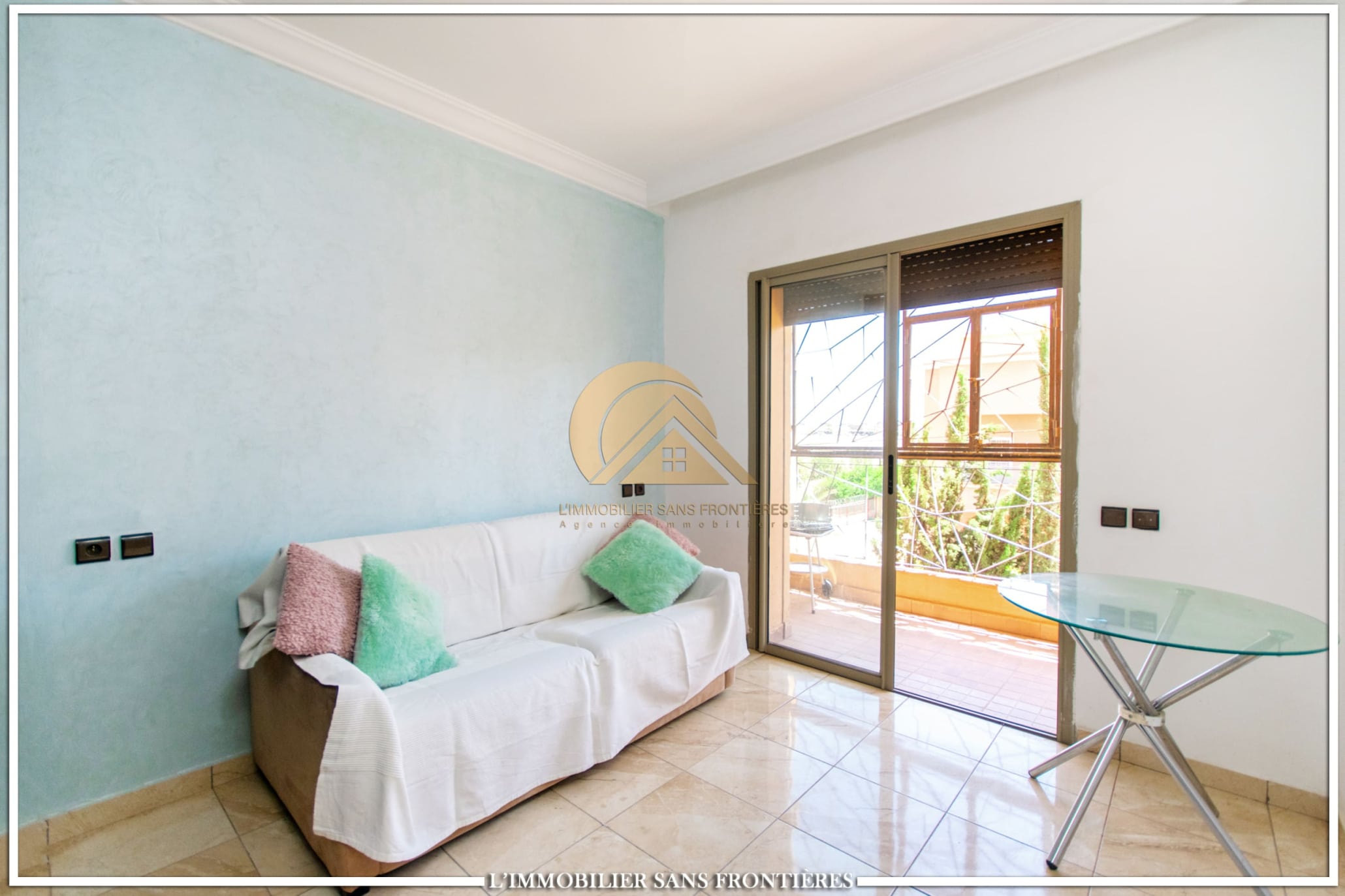Real Estate Without Borders offers this apartment for rent on Route d’Agadir in Marrakech, within a secure residence with pool and shared garden. The setting is described as calm and close to the Agafay desert.