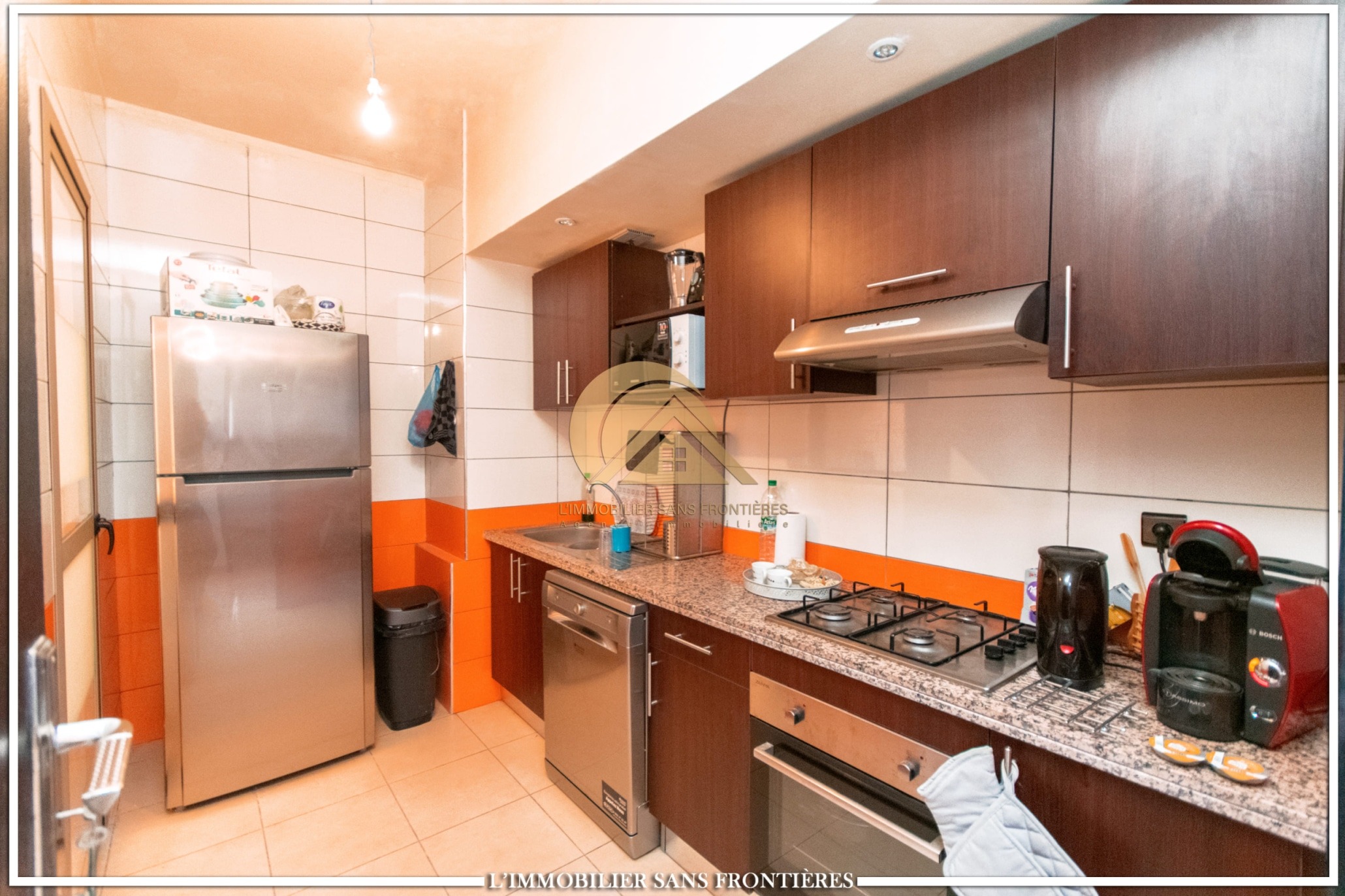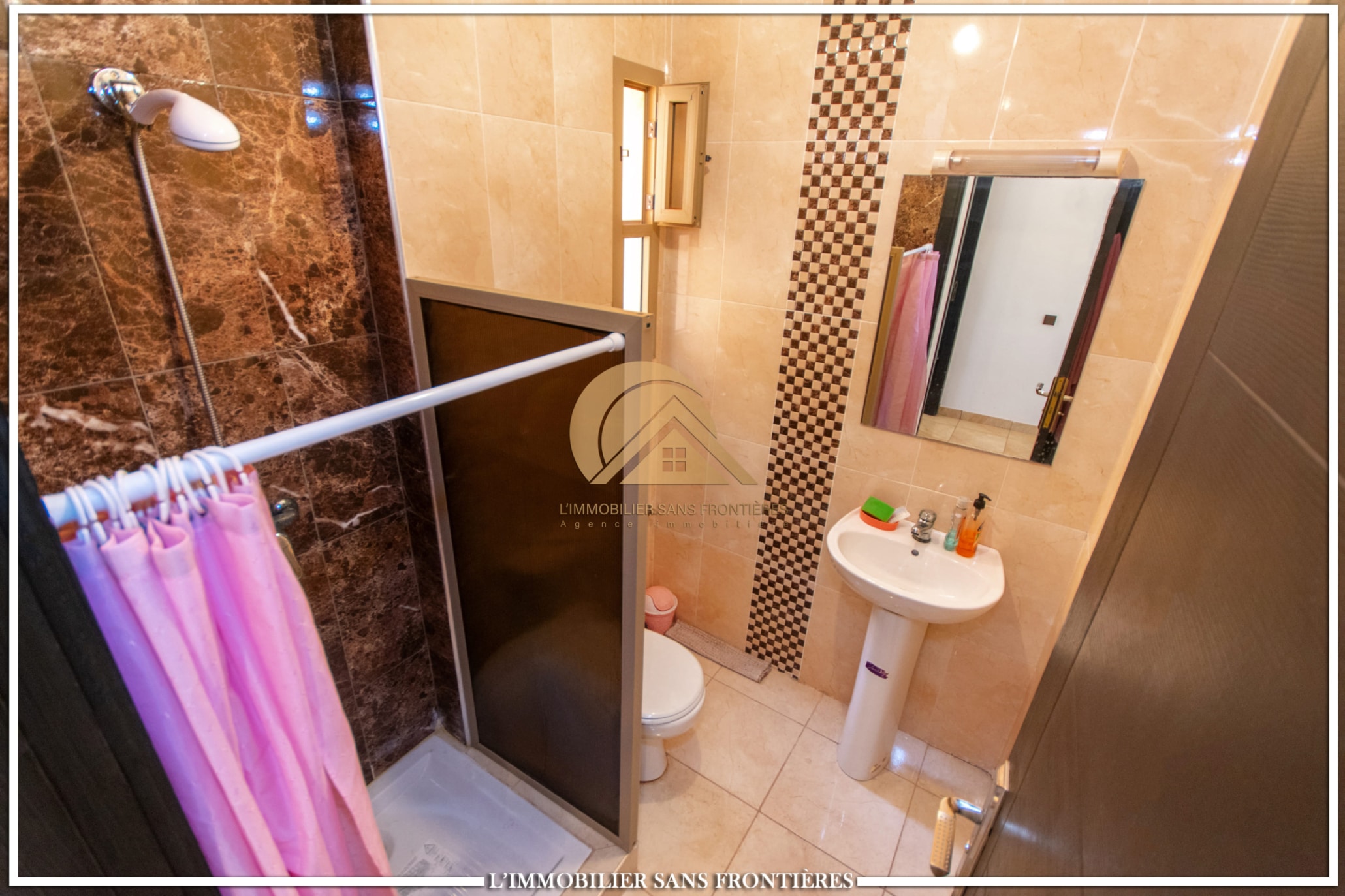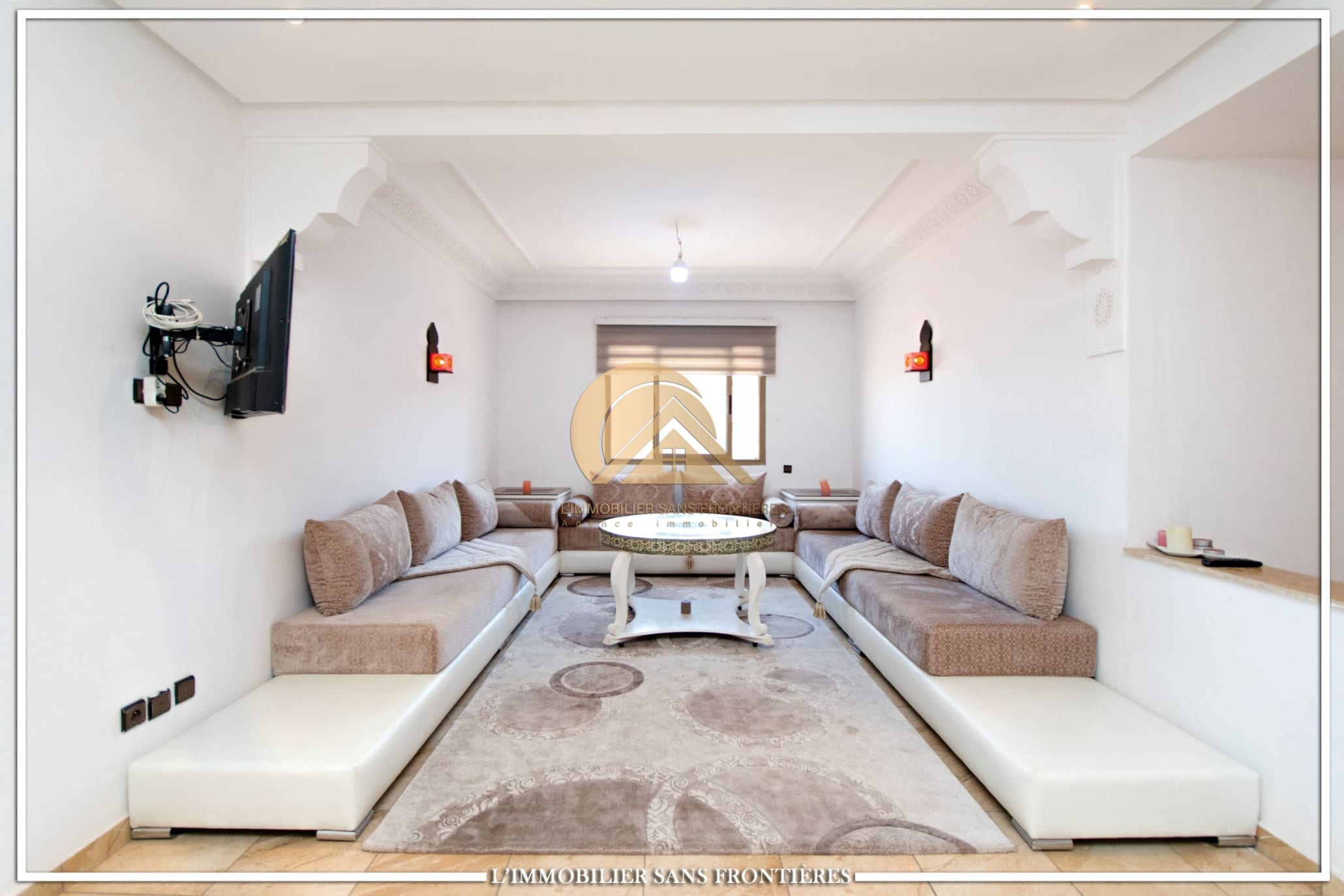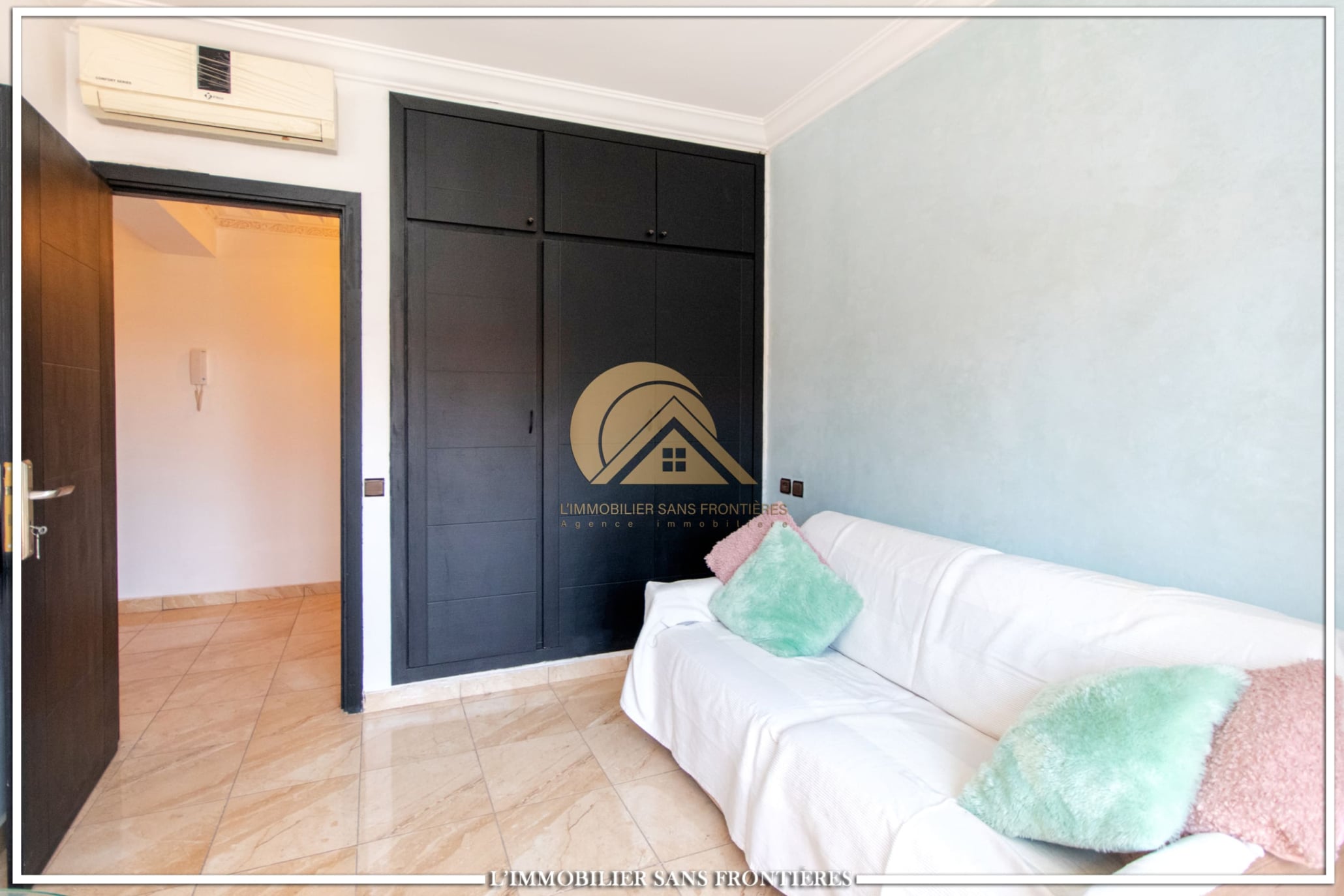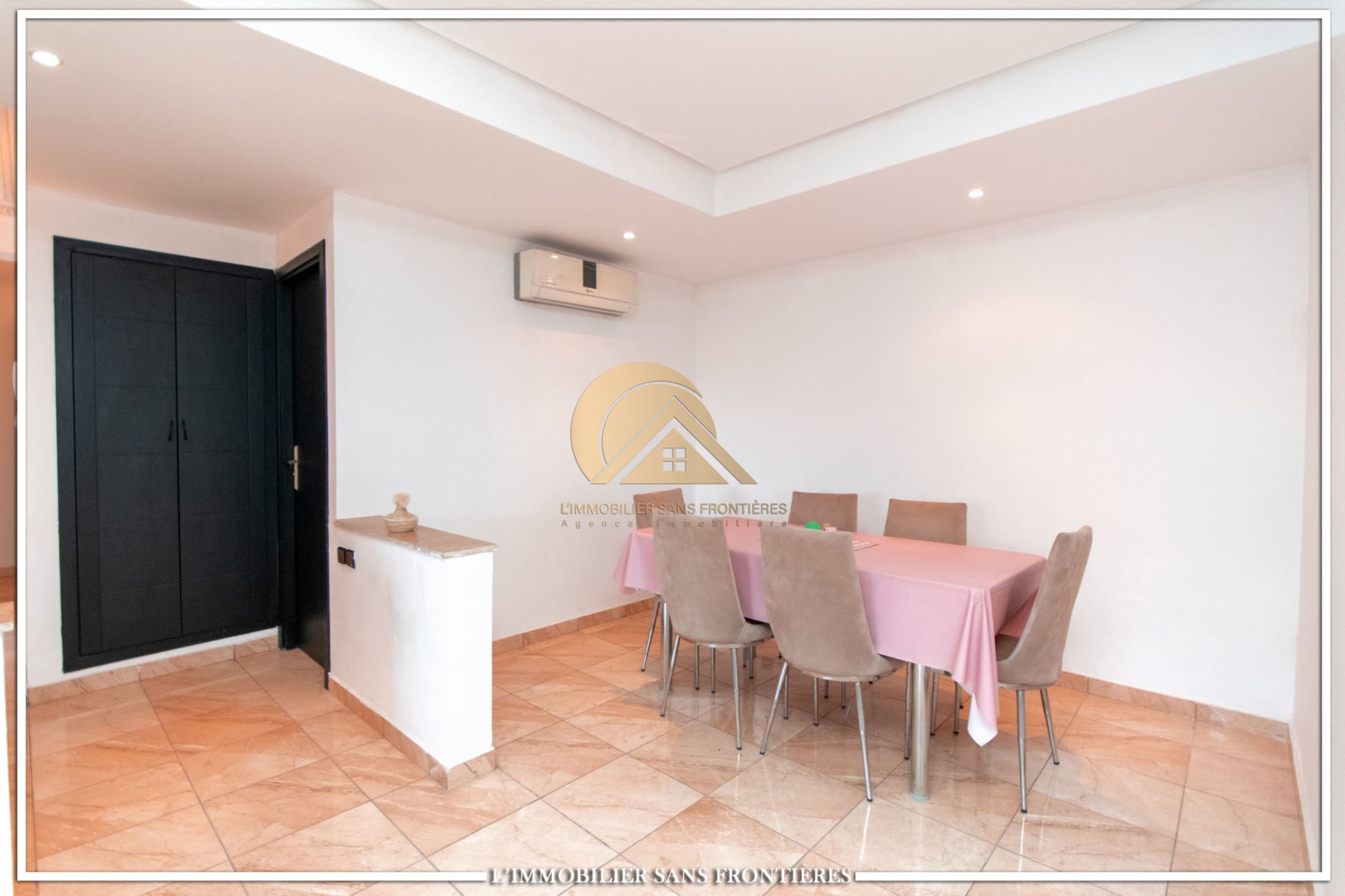 Real Estate Without Borders offers this apartment for rent on Route d’Agadir in Marrakech, within a secure residence with pool and shared garden. The setting is described as calm and close to the Agafay desert.