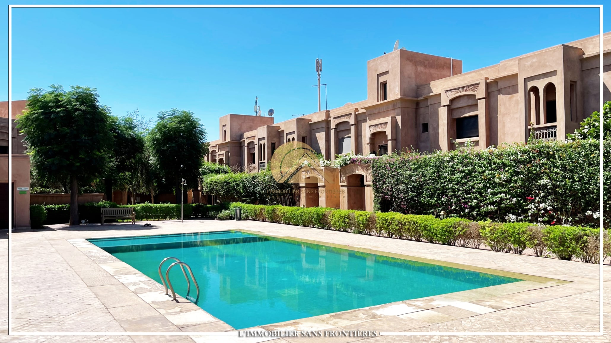 Real Estate Without Borders offers for rent this semi-furnished apartment in Targa, Marrakech, within a secure residence with shared pool and garden. Semi-furnished apartment of 134m on the 2nd floor; availability stated from February 1, 2025.