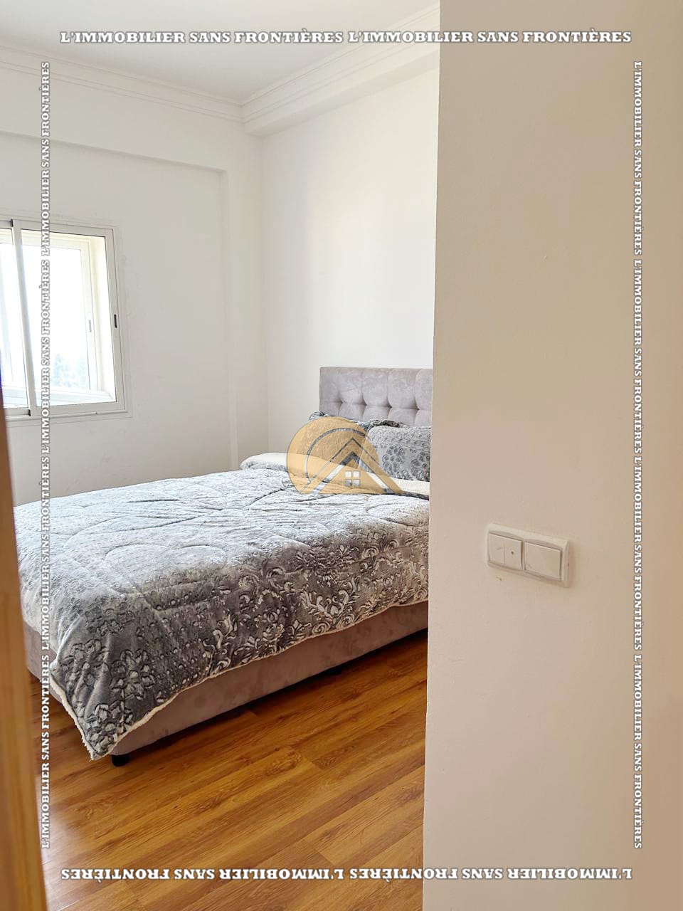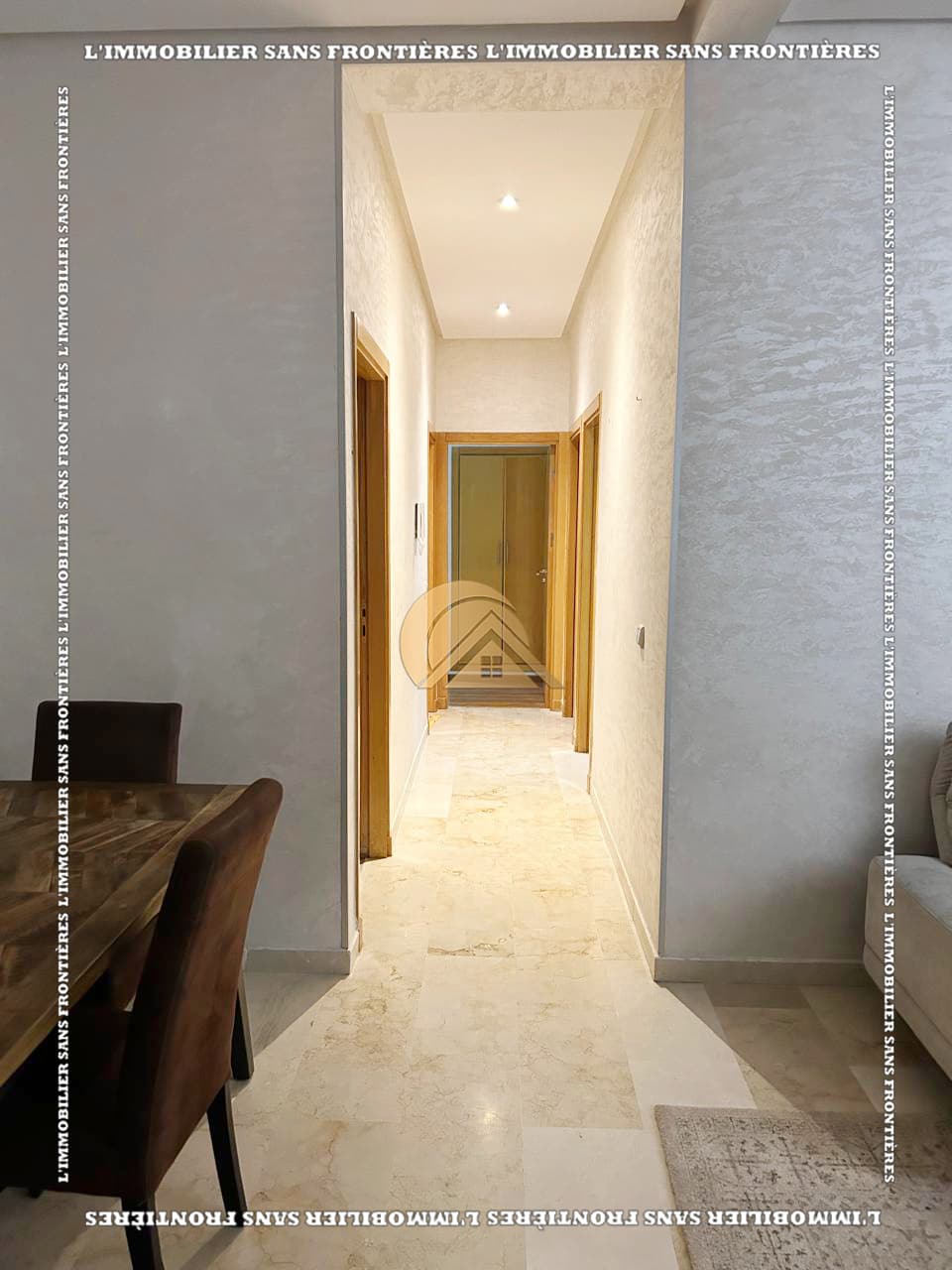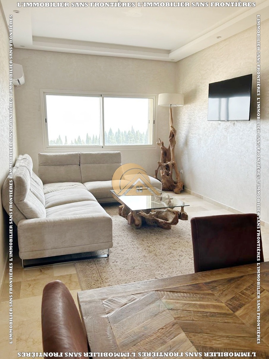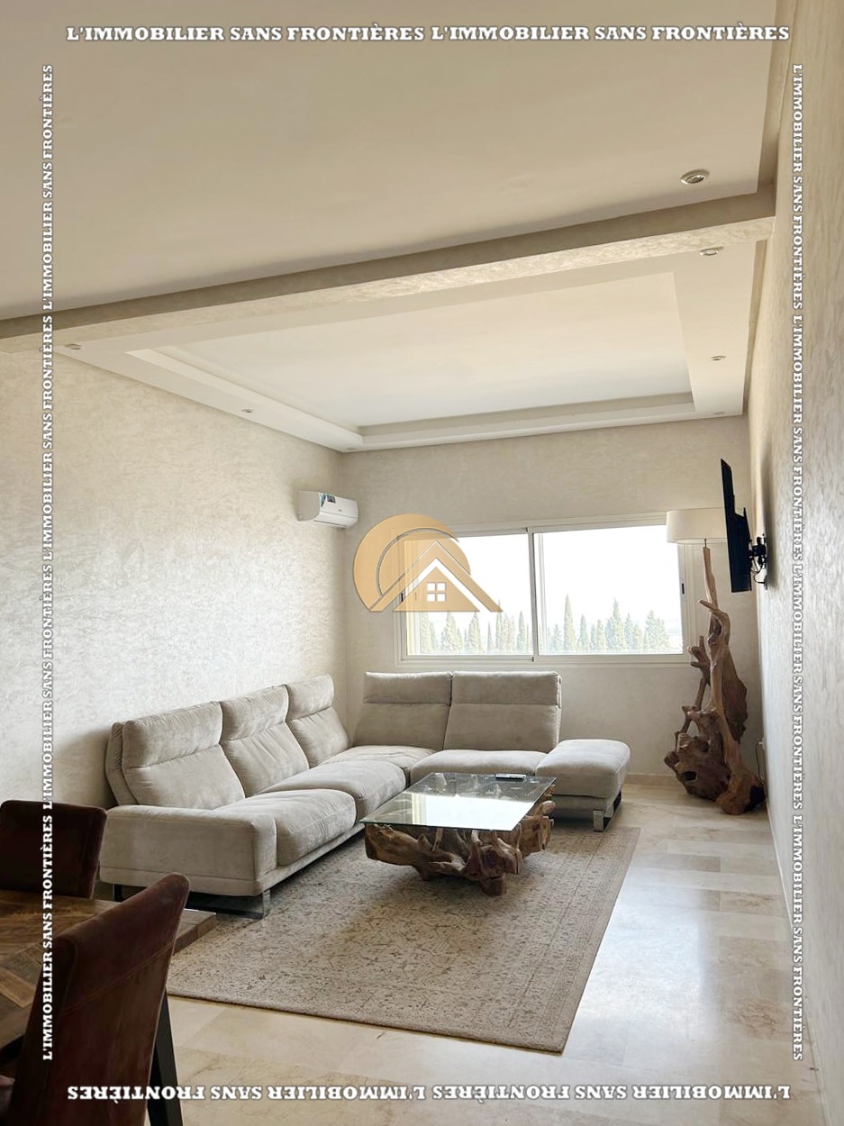 Real Estate Without Borders offers this new furnished 100 m² apartment for sale in Hamria, Meknès, located on the 3rd floor of a residential building. The area is described as calm and secure, and the building is presented with several facilities. Floors are stated as marble and parquet.