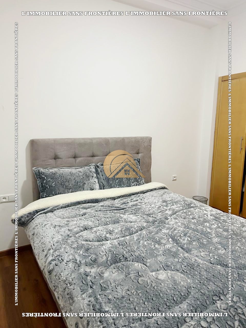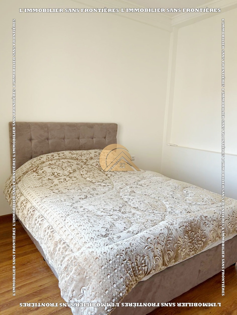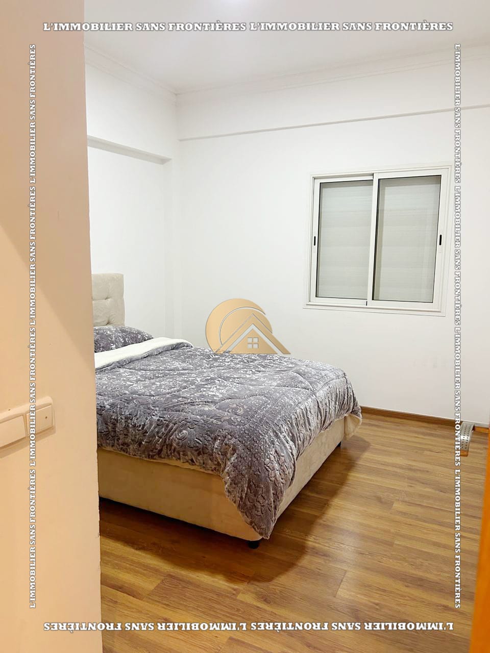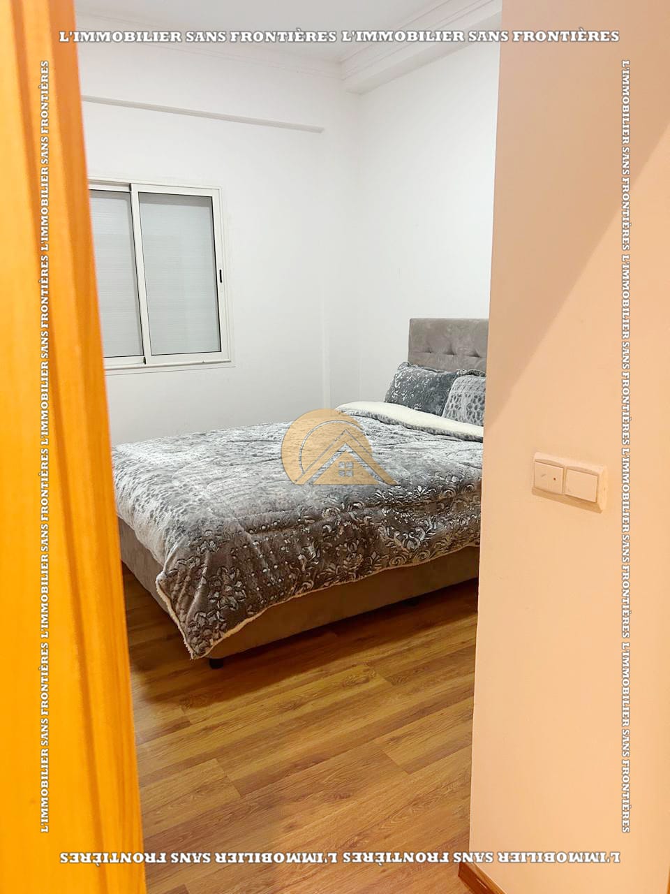 Real Estate Without Borders offers this new furnished 100 m² apartment for sale in Hamria, Meknès, located on the 3rd floor of a residential building. The area is described as calm and secure, and the building is presented with several facilities. Floors are stated as marble and parquet.