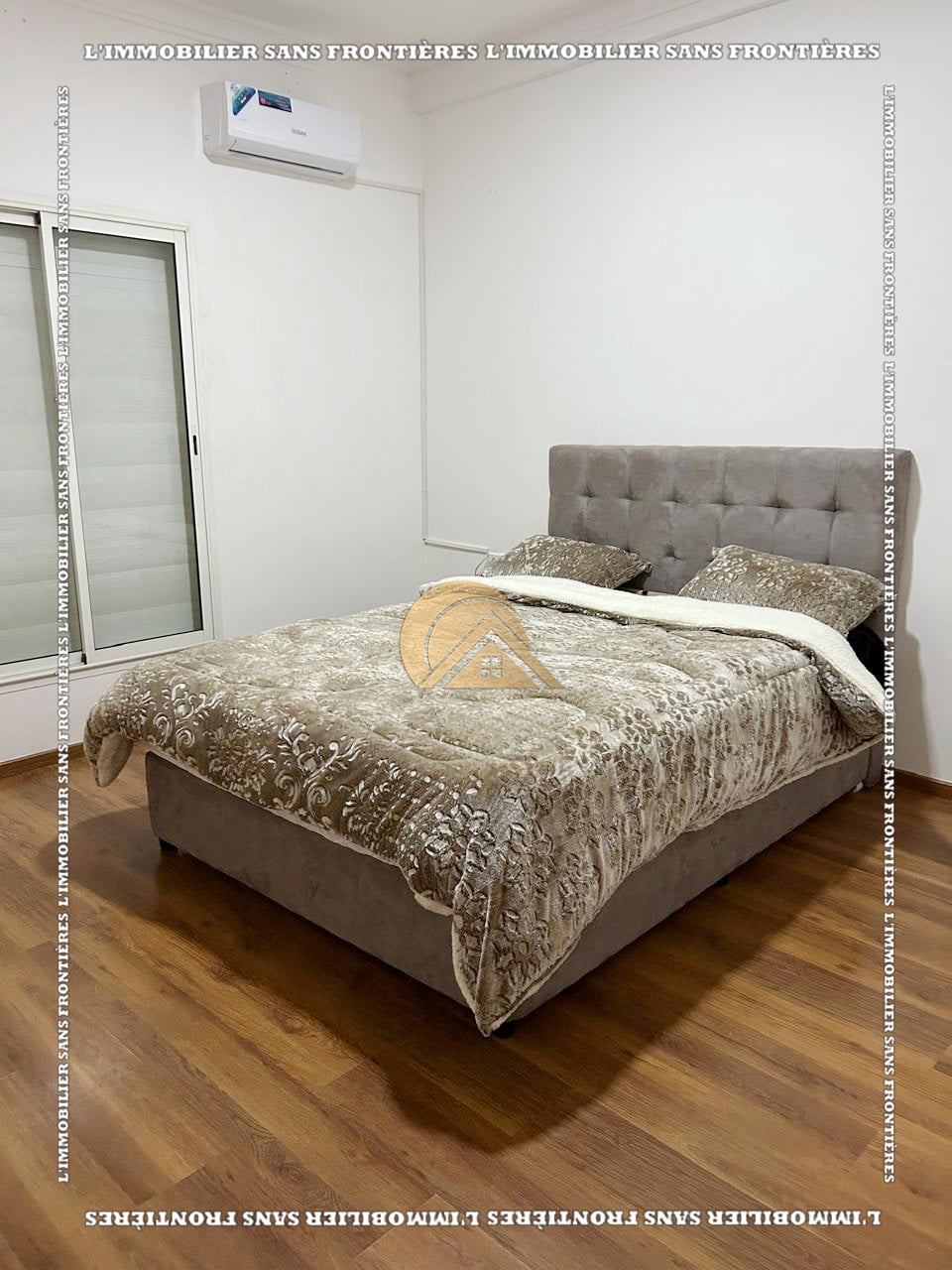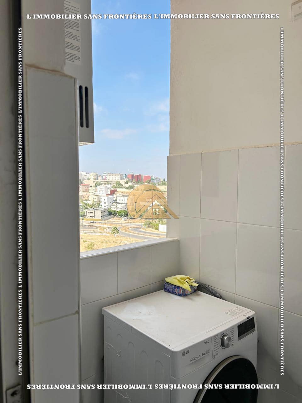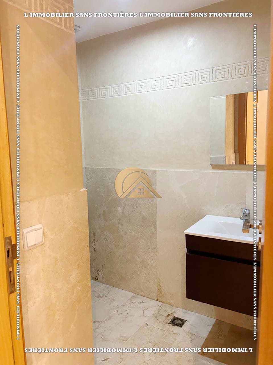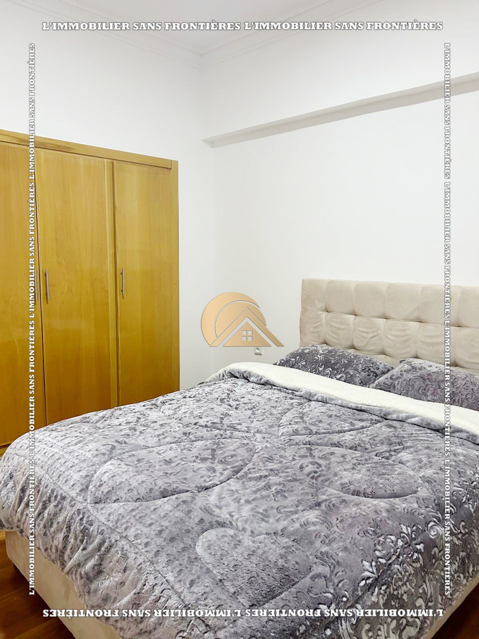 Real Estate Without Borders offers this new furnished 100 m² apartment for sale in Hamria, Meknès, located on the 3rd floor of a residential building. The area is described as calm and secure, and the building is presented with several facilities. Floors are stated as marble and parquet.