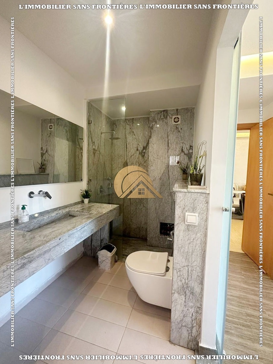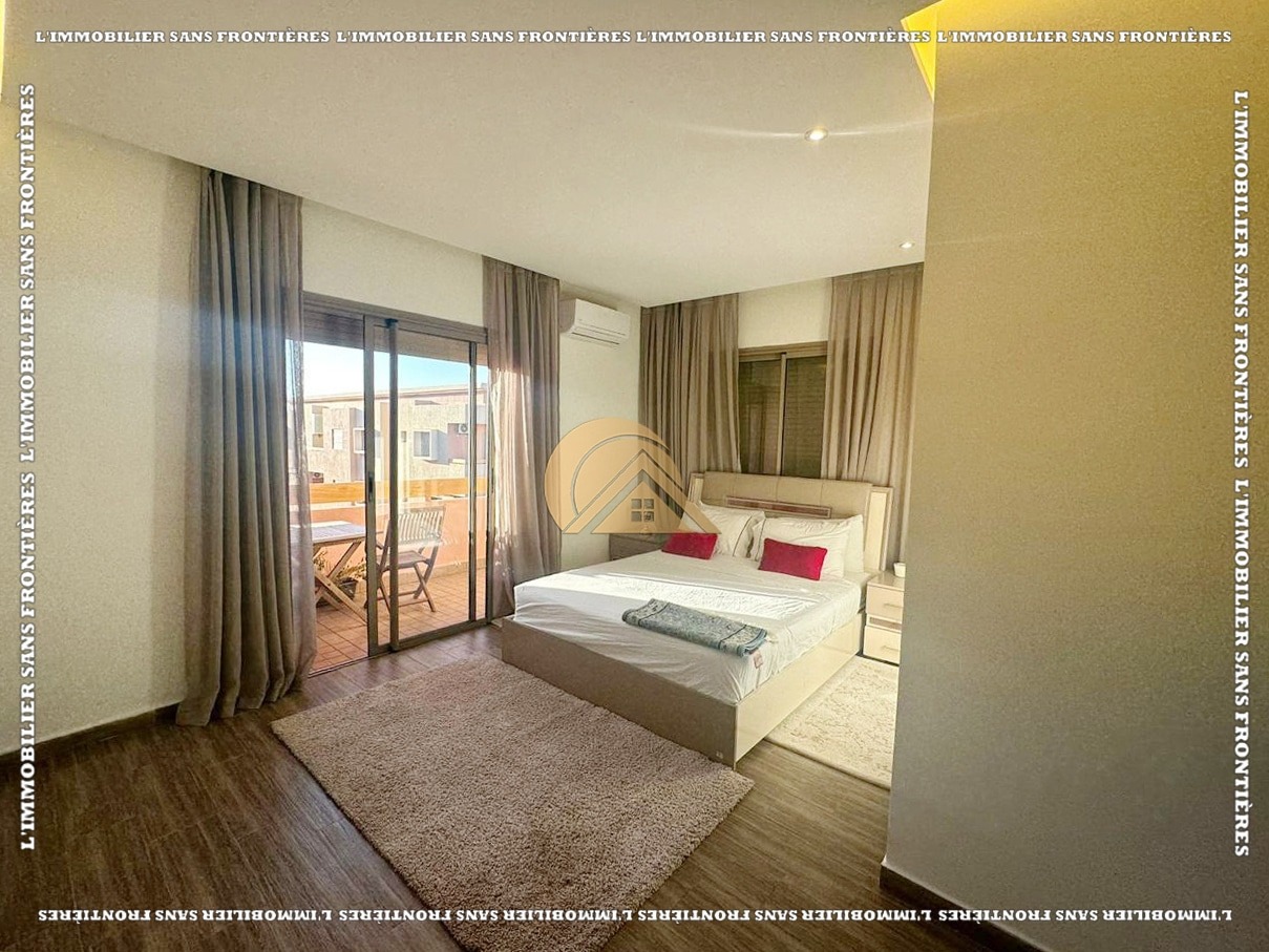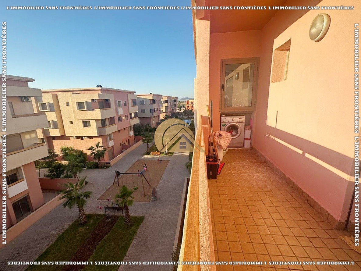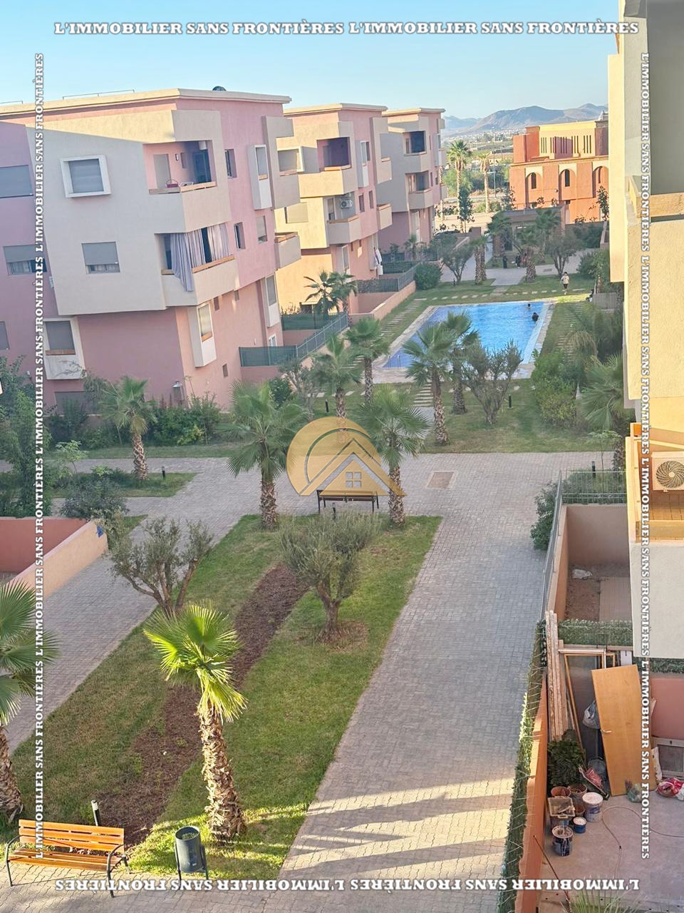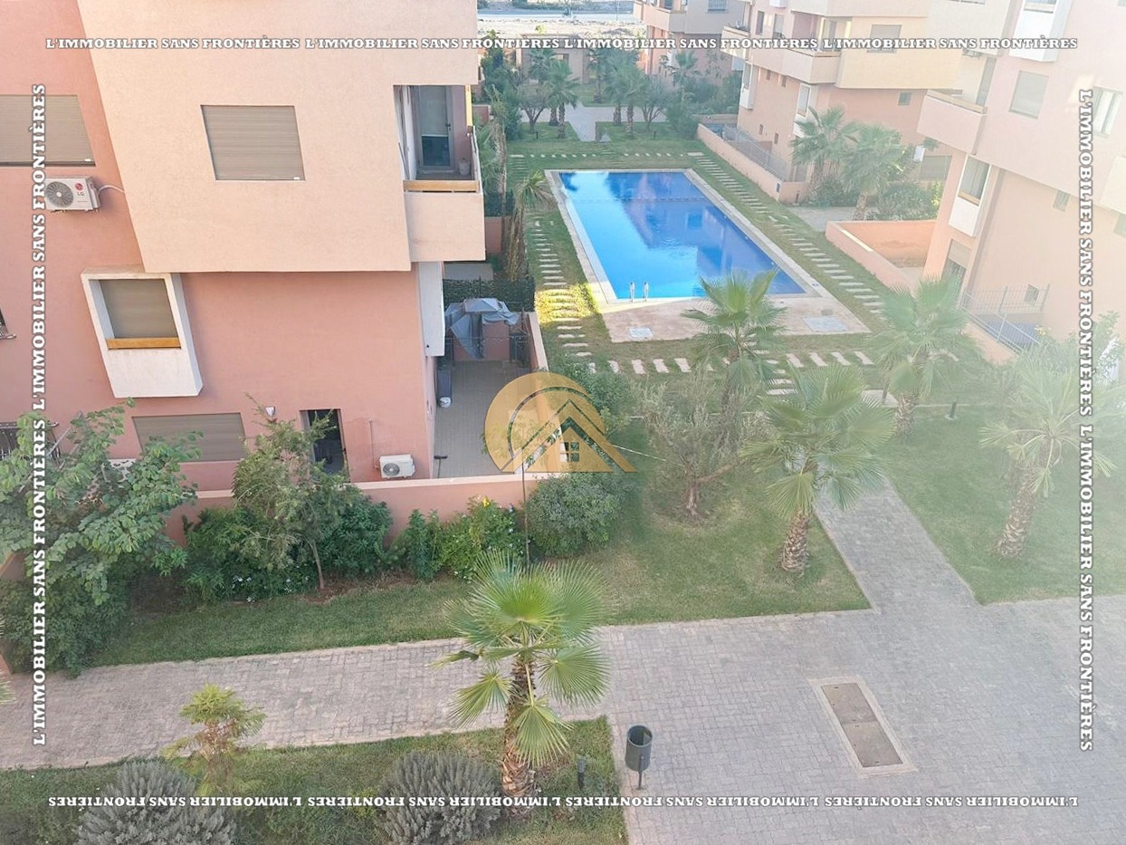 Real Estate Without Borders offers this unfurnished apartment for sale in Targa, Marrakech, on the 2nd floor of a calm, well-maintained residence. 3 façades and open views over two pools and the shared garden.