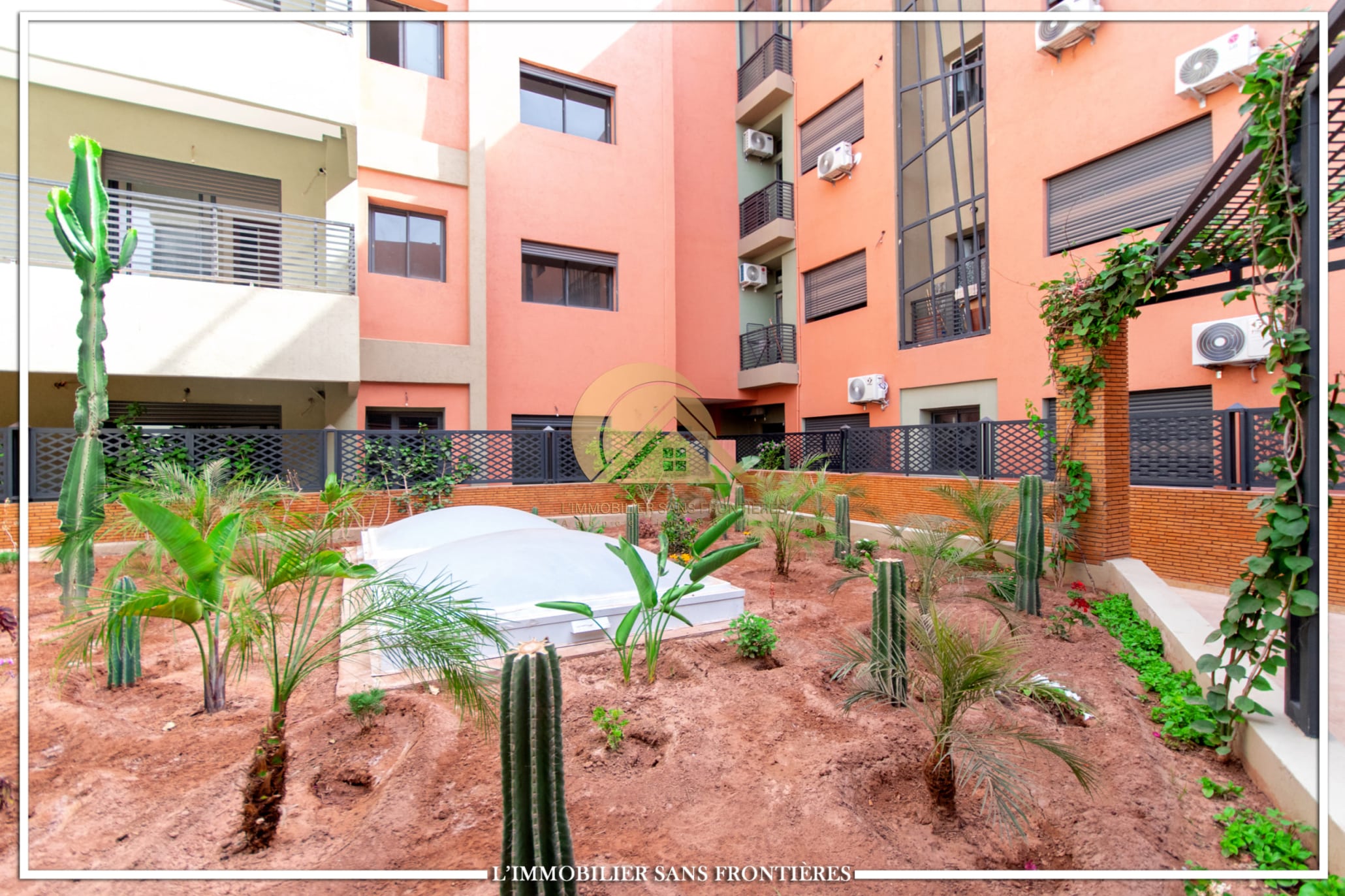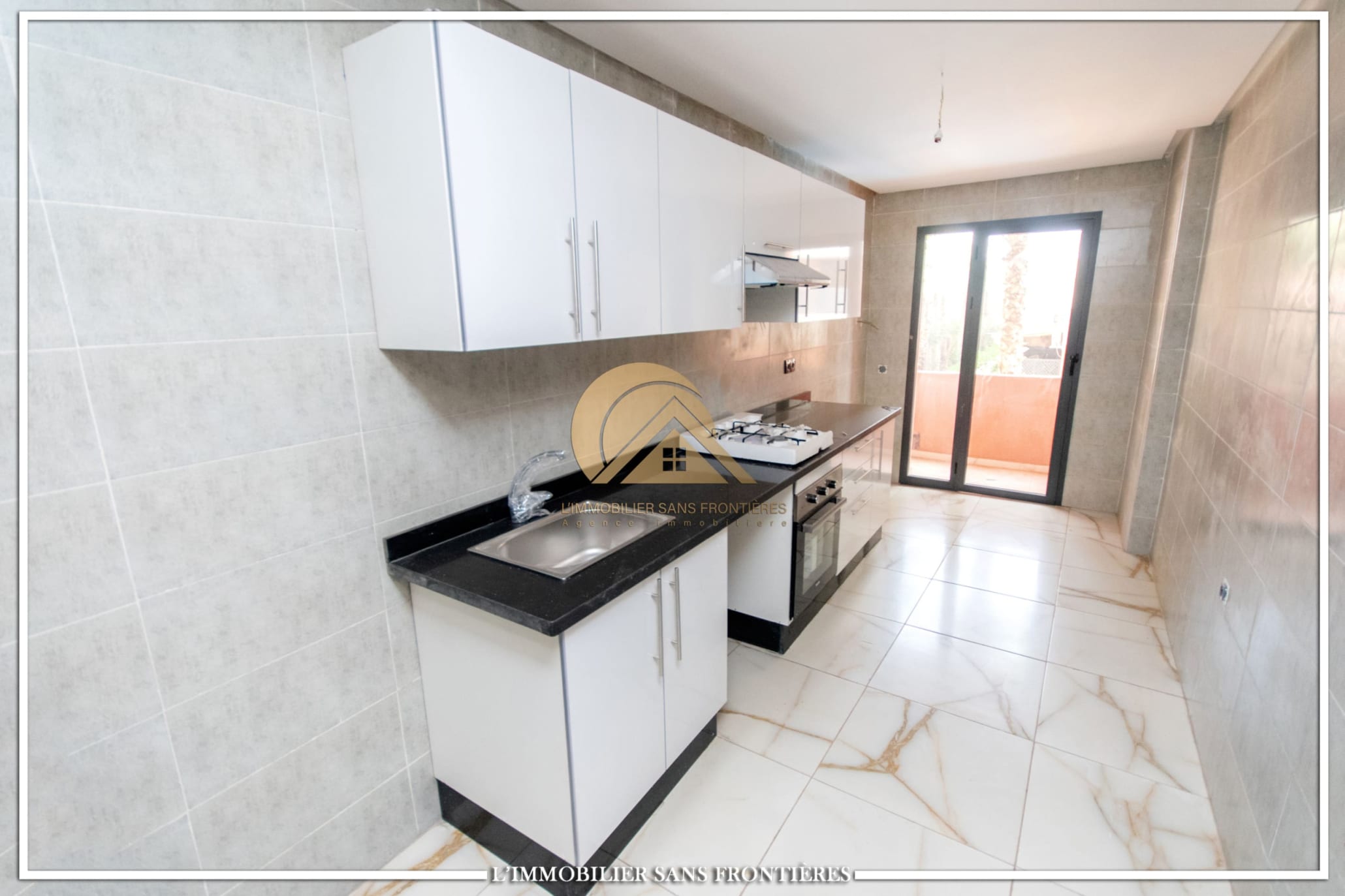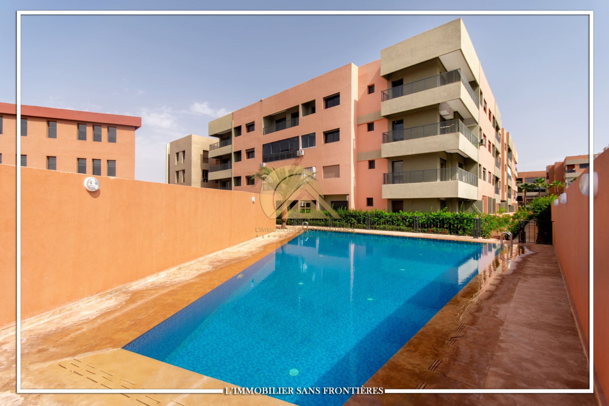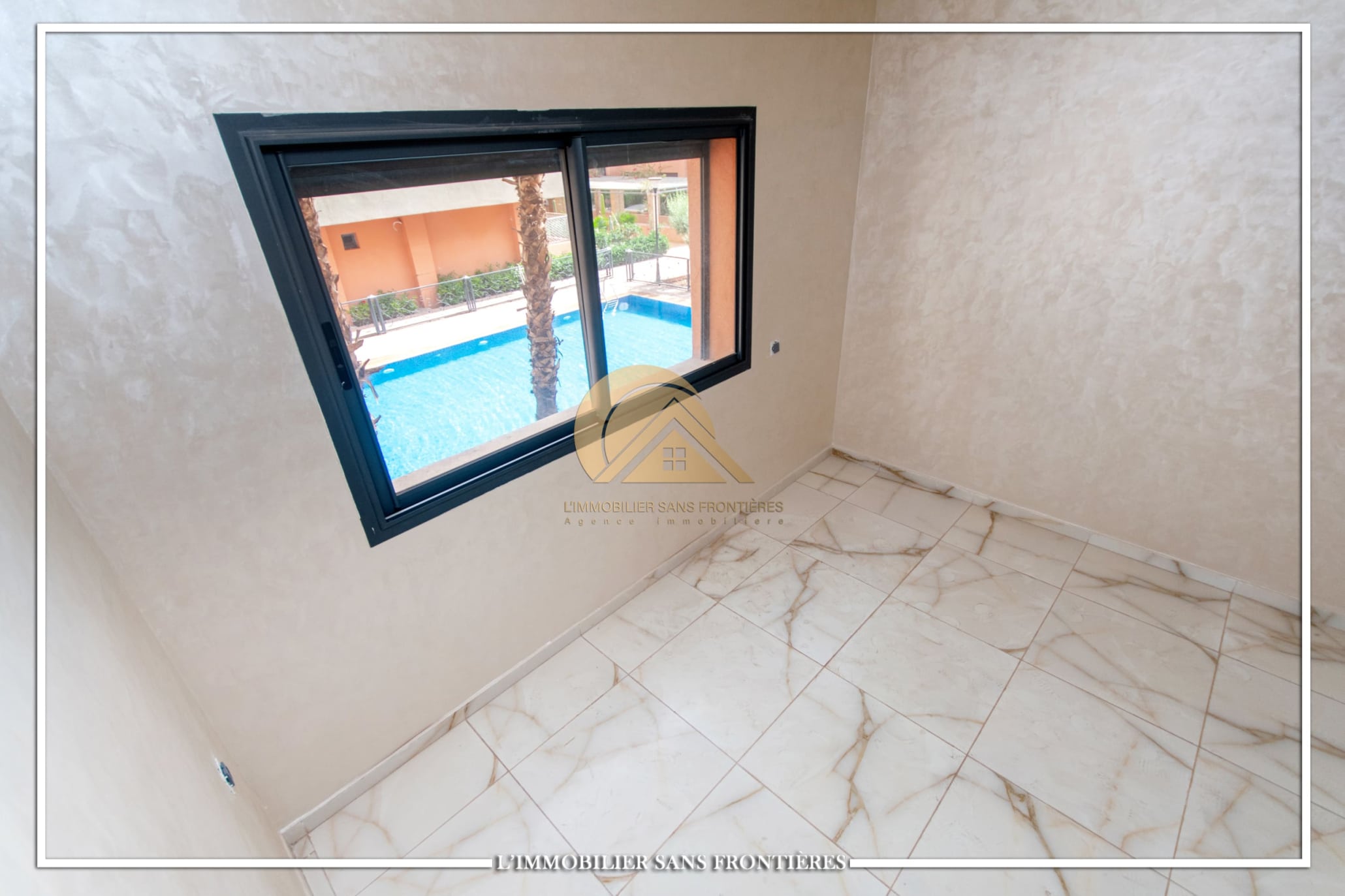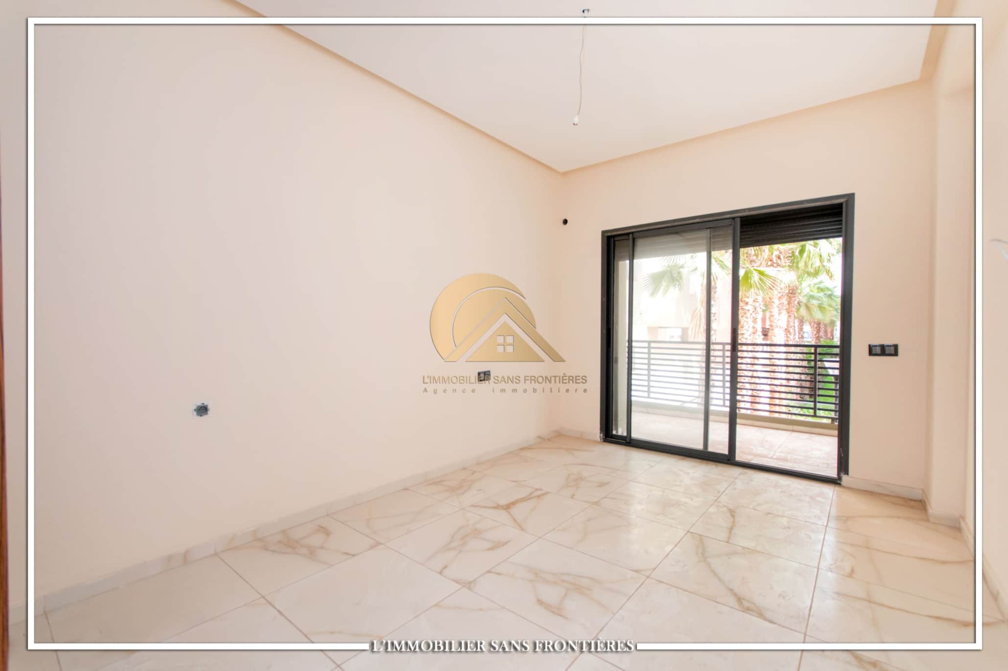 Real Estate Without Borders offers this new unfurnished apartment for sale in Targa, Marrakech, stated on the ground floor. The R3 residence is described with a pool, garden area, titled basement parking and an elevator. Note: Photo mentioned in the listing. Apartment on the 1st floor.