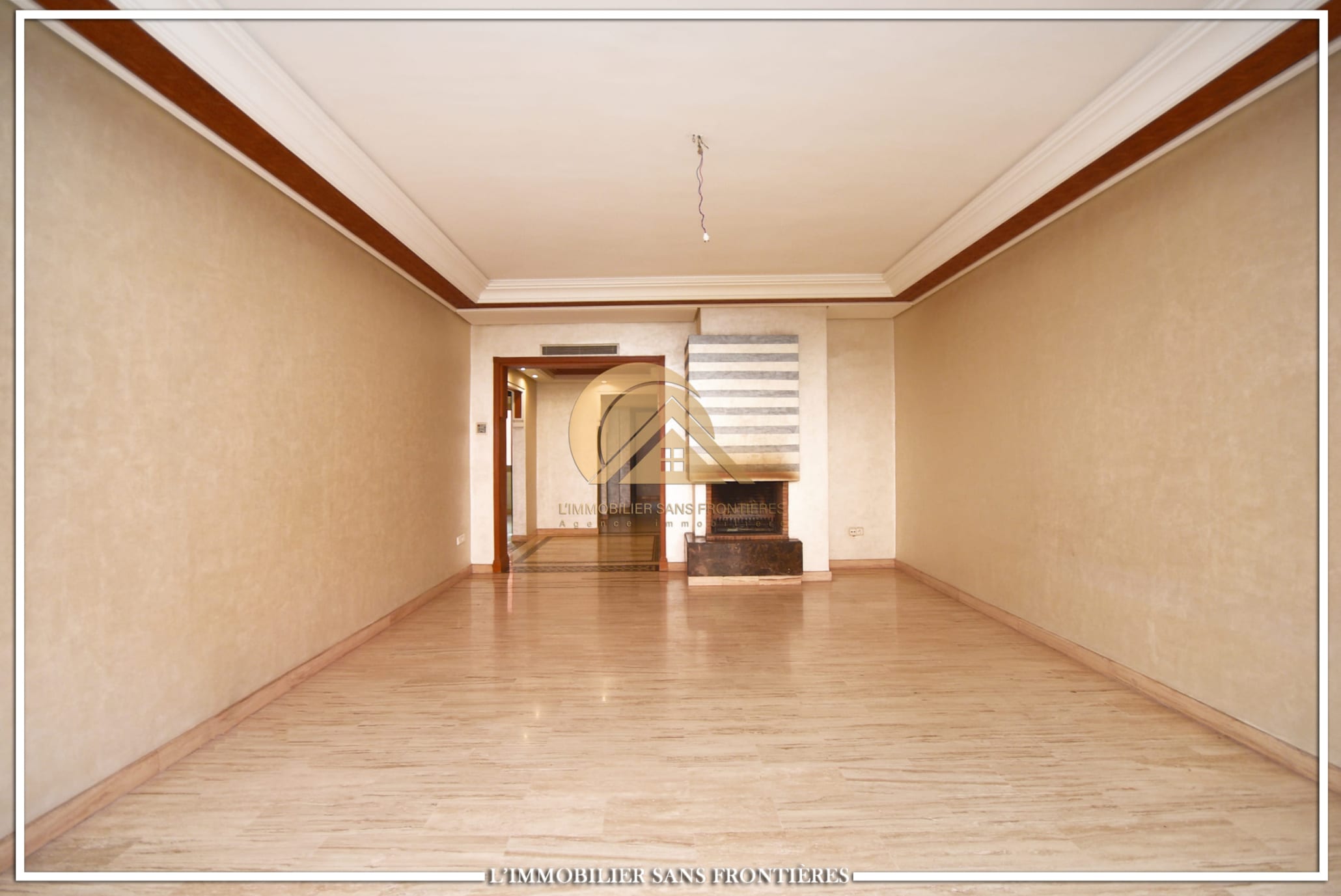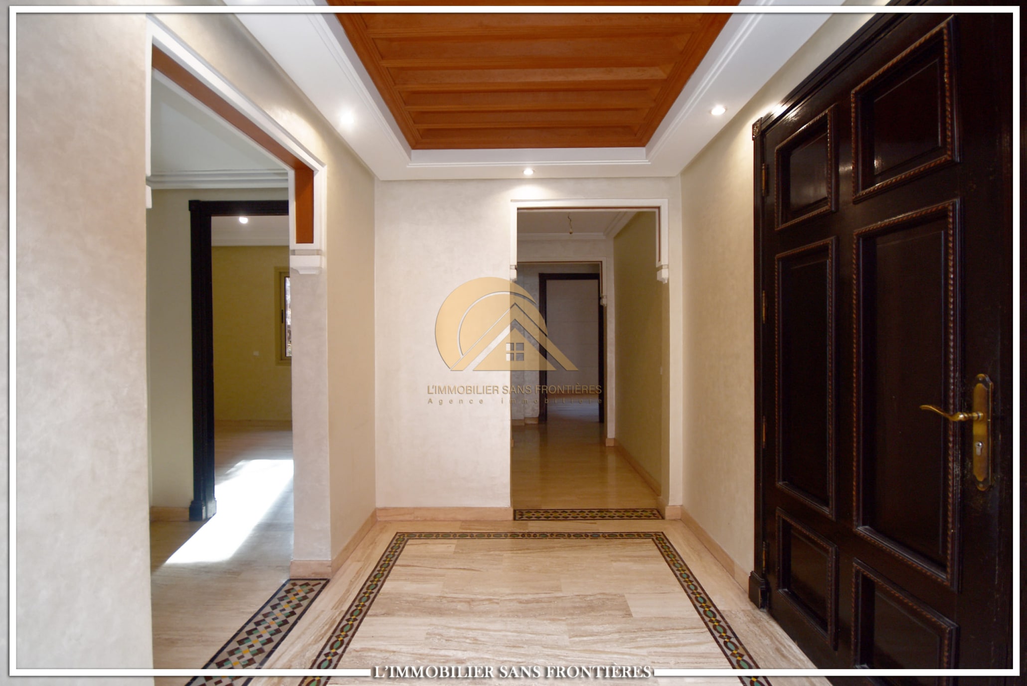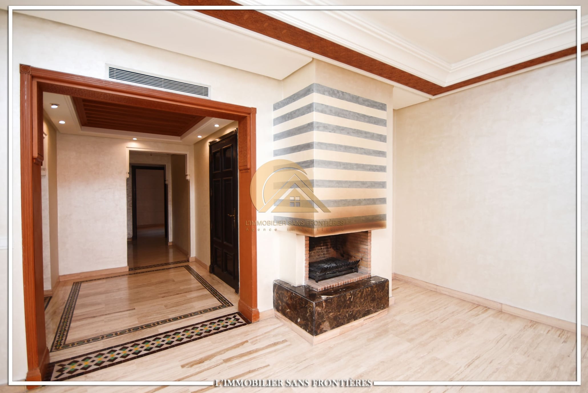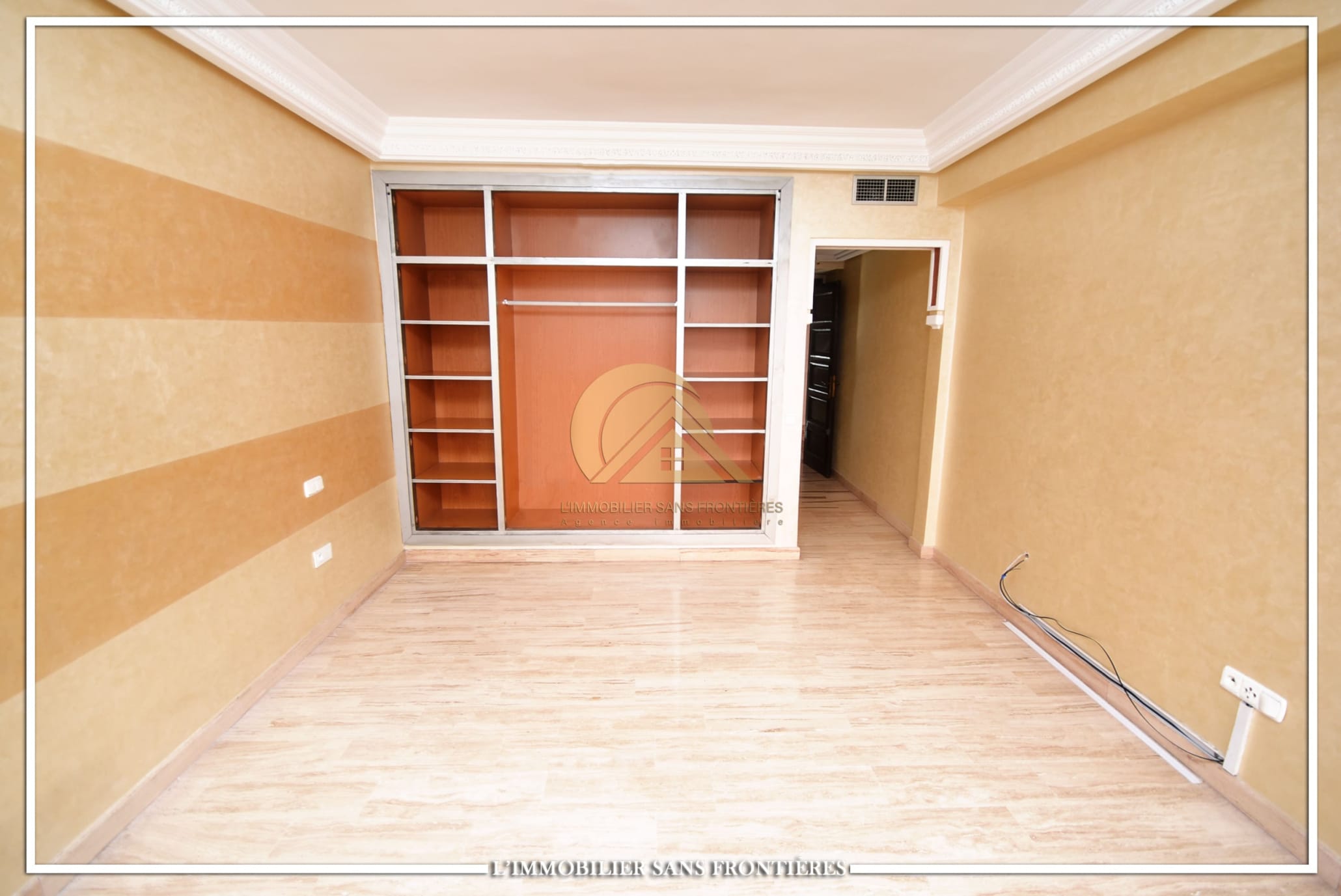 Real Estate Without Borders offers this unfurnished apartment for rent in Gueliz, Marrakech, stated close to amenities. The listing states a calm residence, a unit on the 2nd floor, and 147 m². Central A/C and basement parking are mentioned.