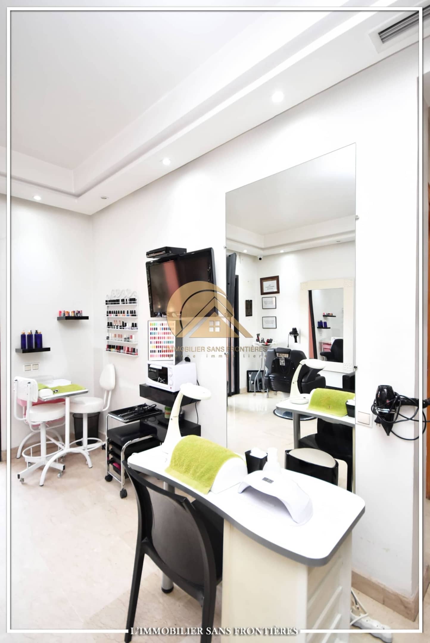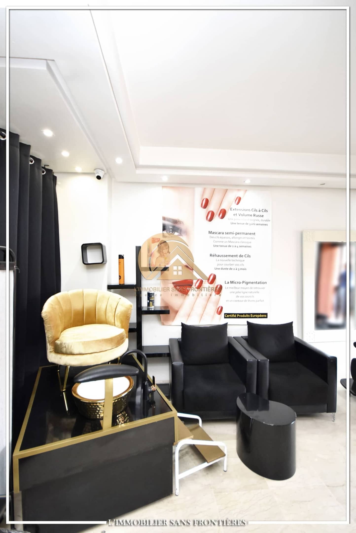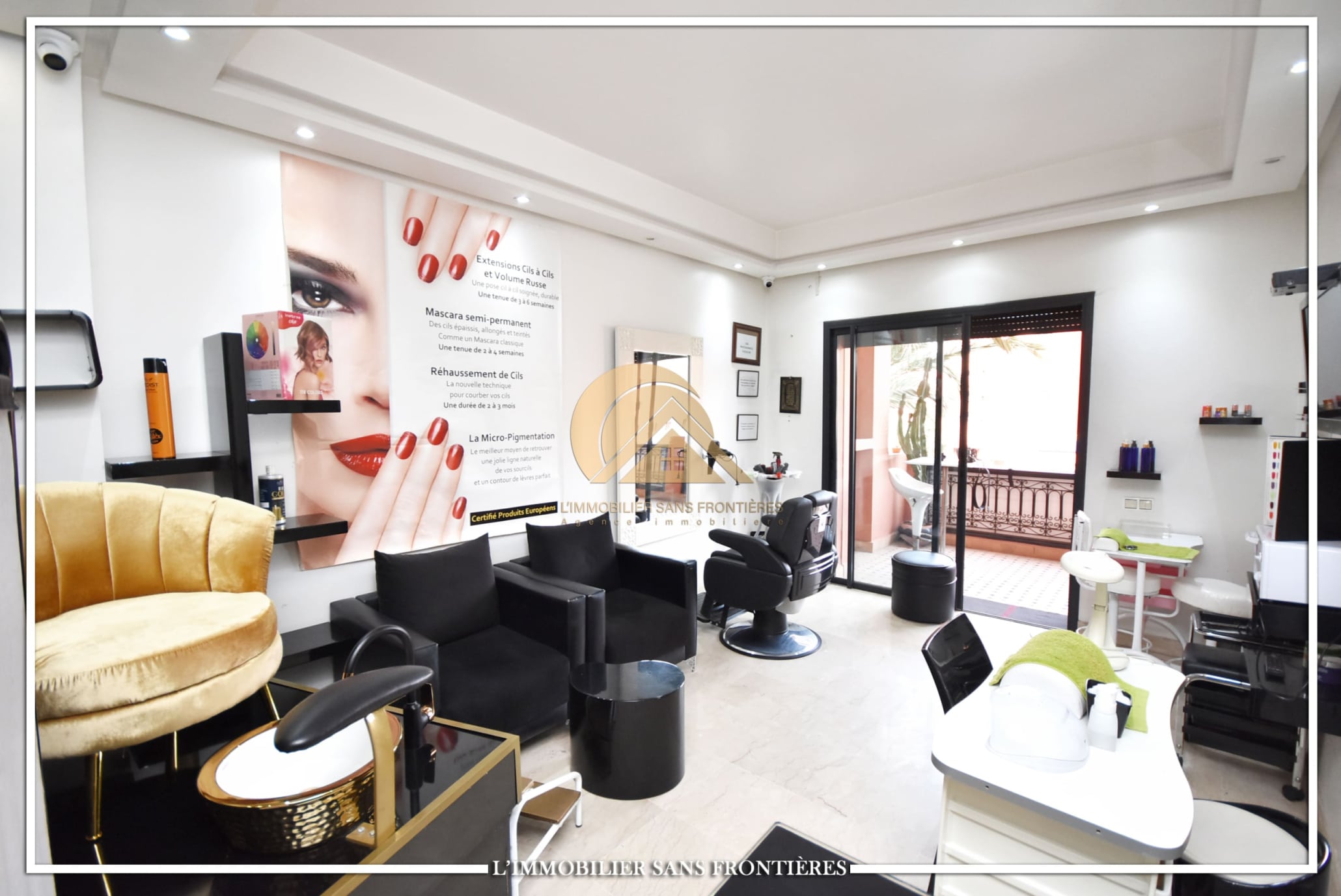 Real Estate Without Borders offers this beauty salon business lease for sale in Gueliz, Marrakech. The premises are stated in a peaceful setting, with a list of services (hairdressing, nails, facial care, hair care, massage) and an existing team. A regular and loyal client base is stated.
