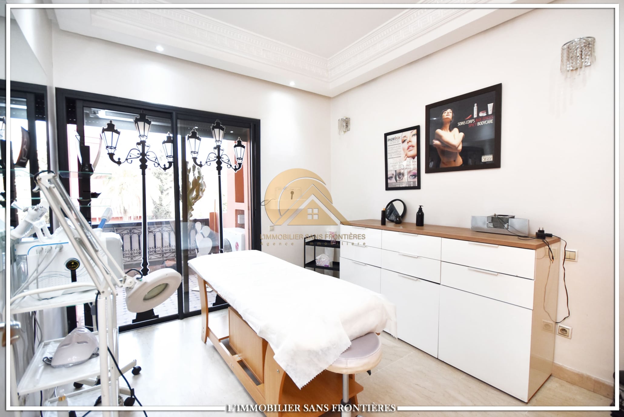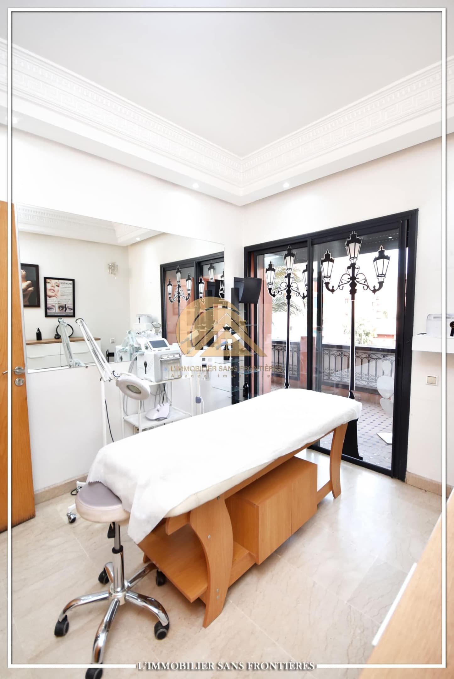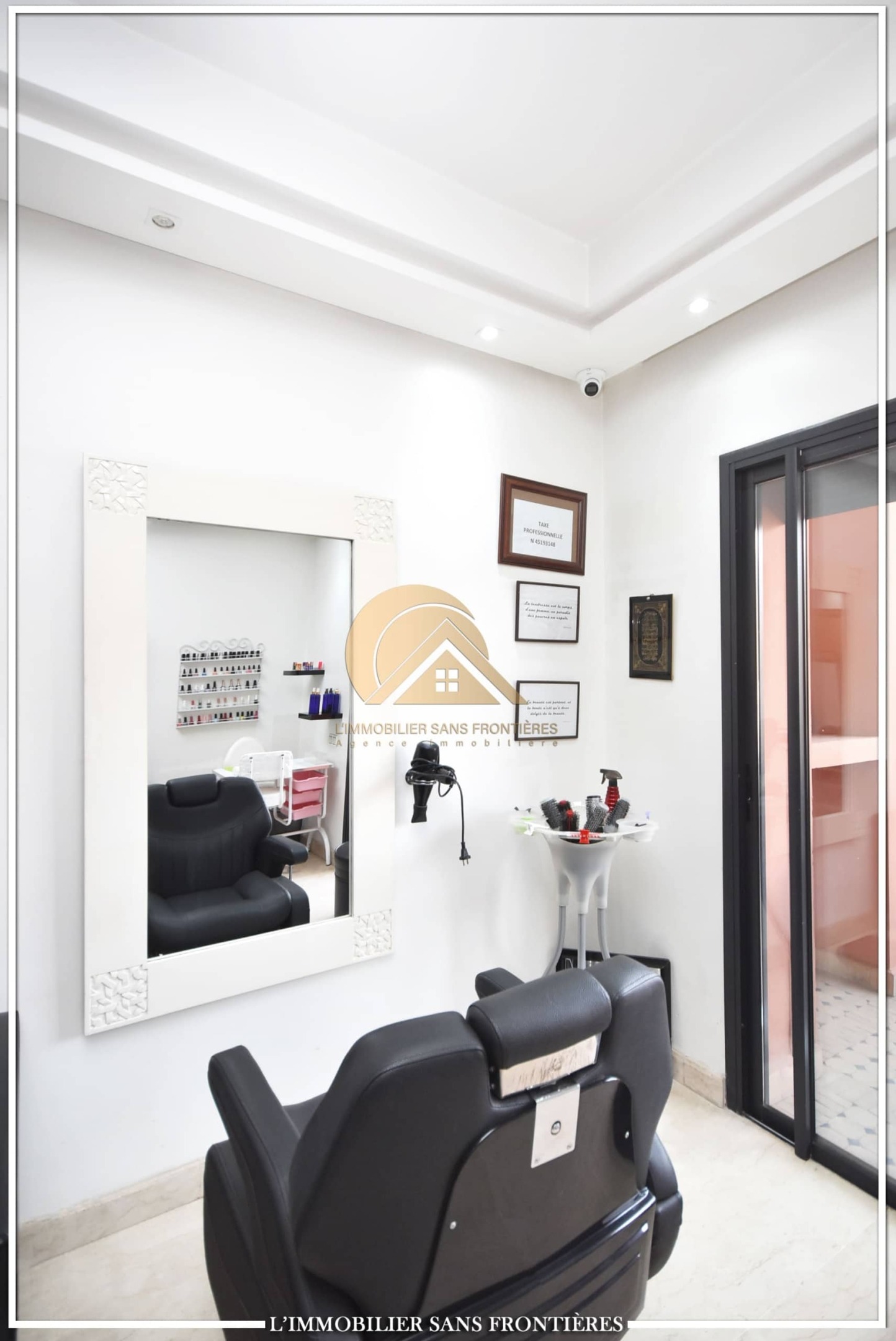 Real Estate Without Borders offers this beauty salon business lease for sale in Gueliz, Marrakech. The premises are stated in a peaceful setting, with a list of services (hairdressing, nails, facial care, hair care, massage) and an existing team. A regular and loyal client base is stated.