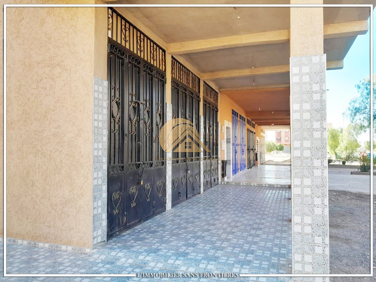 Real Estate Without Borders offers this R2 commercial house for sale in Tamansourt. The text mentions two facades and parking available. Stated area: 80 m².