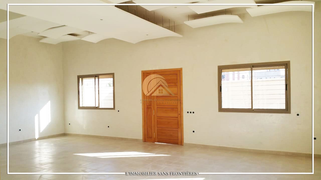 Real Estate Without Borders offers this commercial villa for rent in Les Portes de Marrakech, Marrakech. The property totals 390 m², including 324 m² of usable space, with no overlooking on three sides and a garden. It is currently set up as 5 areas and can be adjusted up to 7 areas by adding partitions.