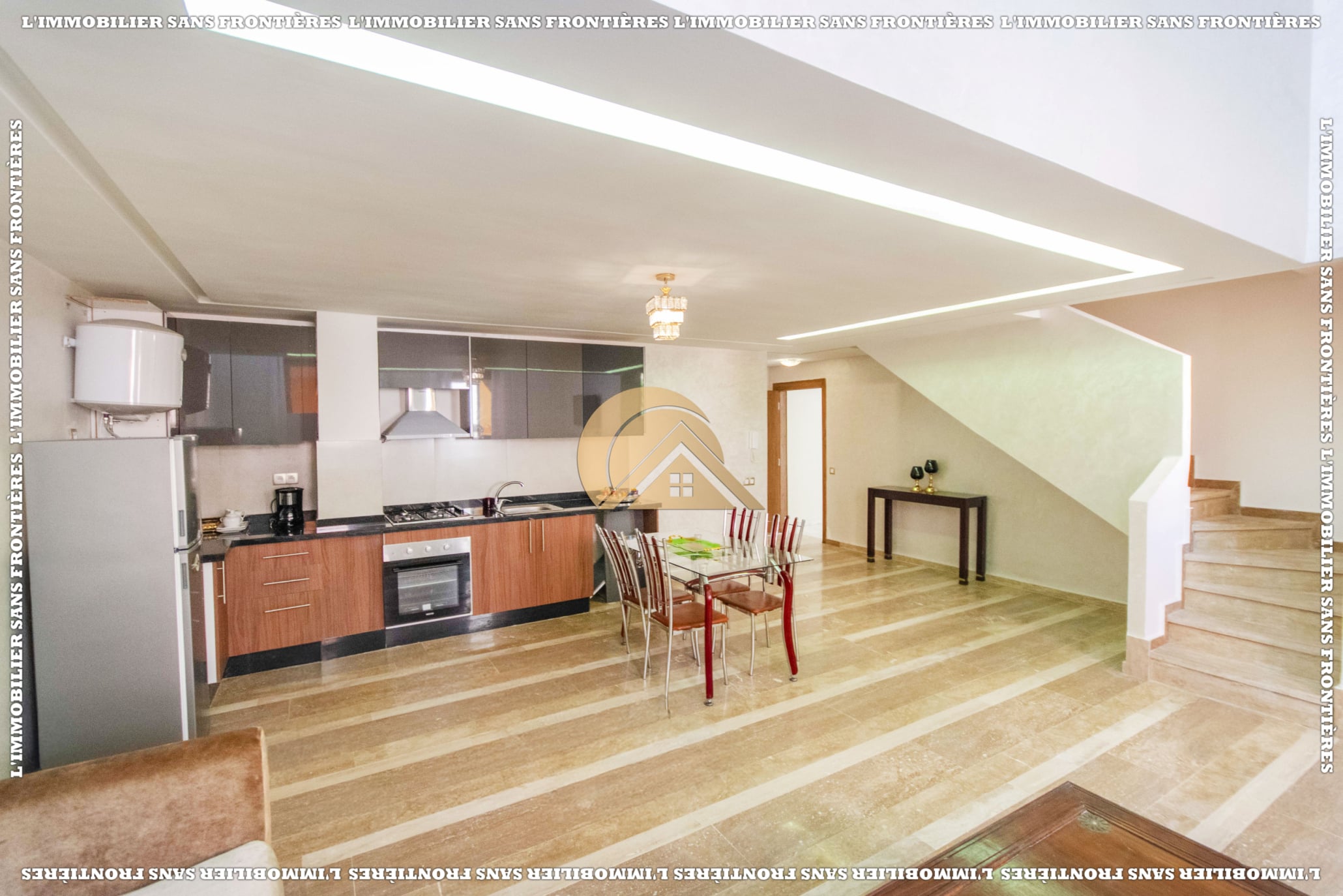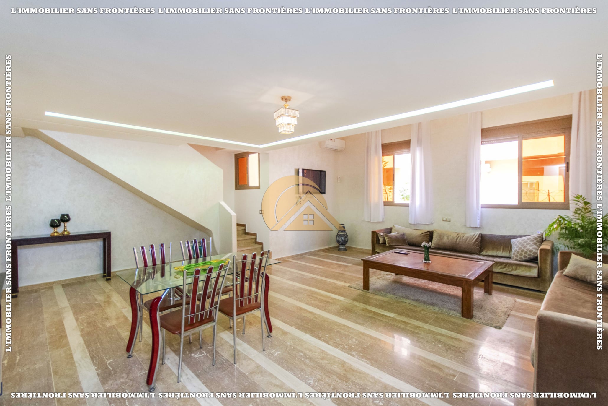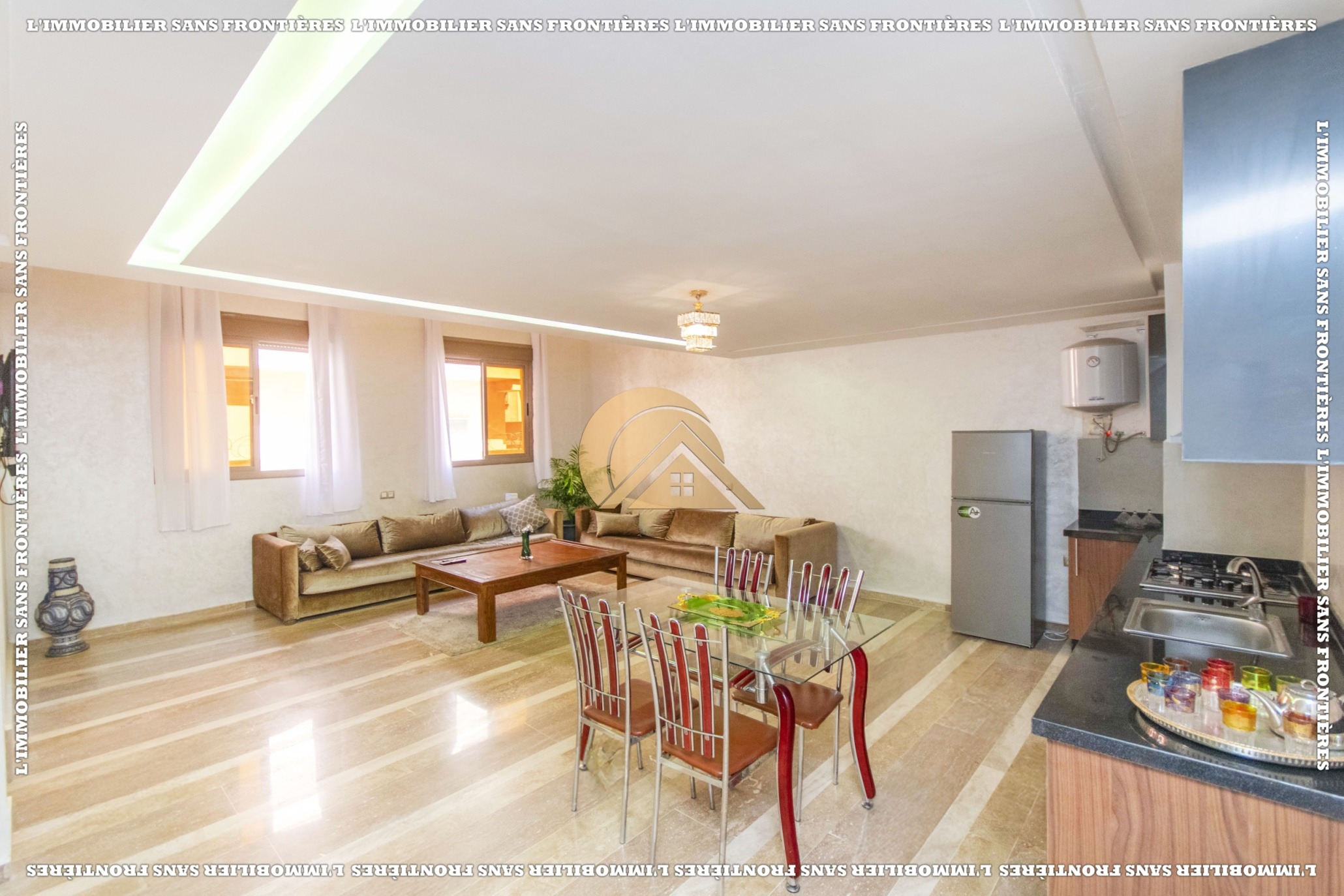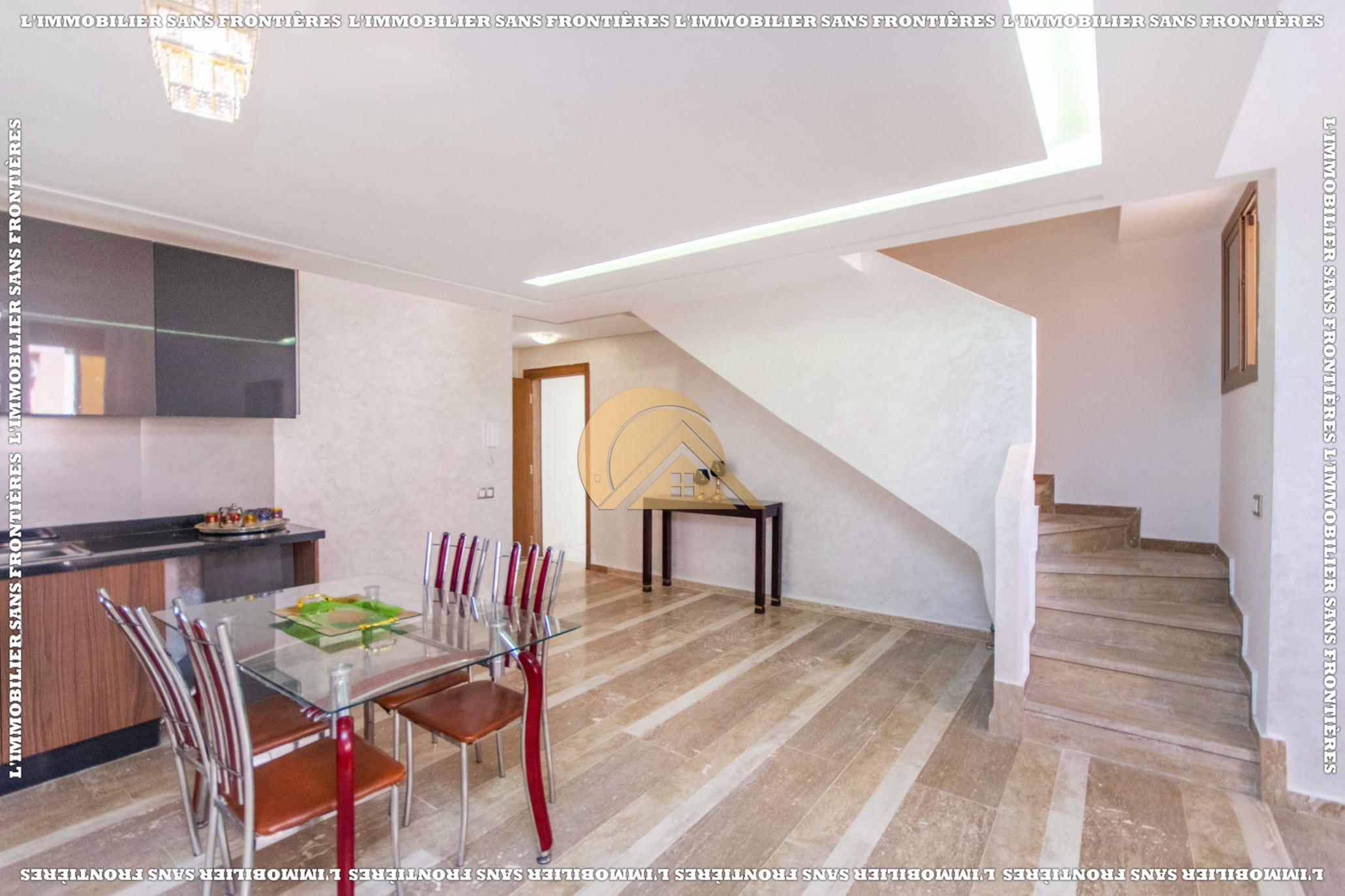 Real Estate Without Borders offers this furnished duplex for sale in Mabrouka, Marrakech, on the ground floor of a secured residence, close to shops and amenities. Size: 83 m².