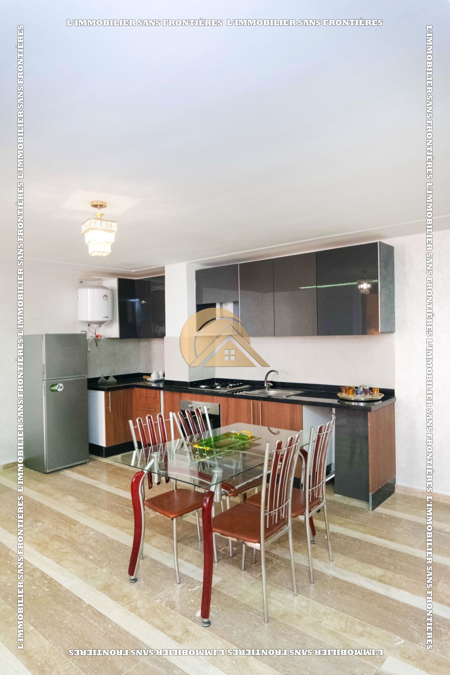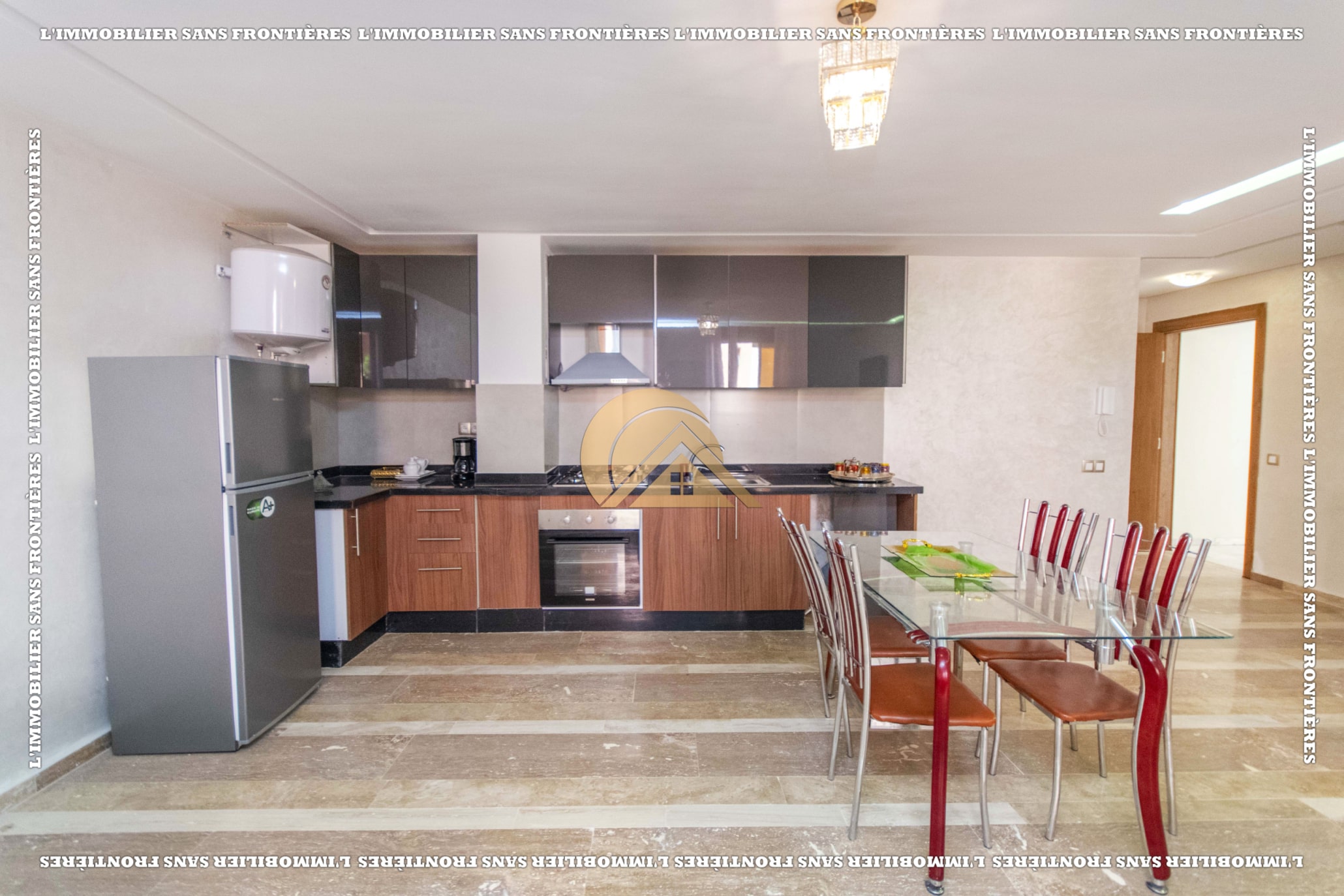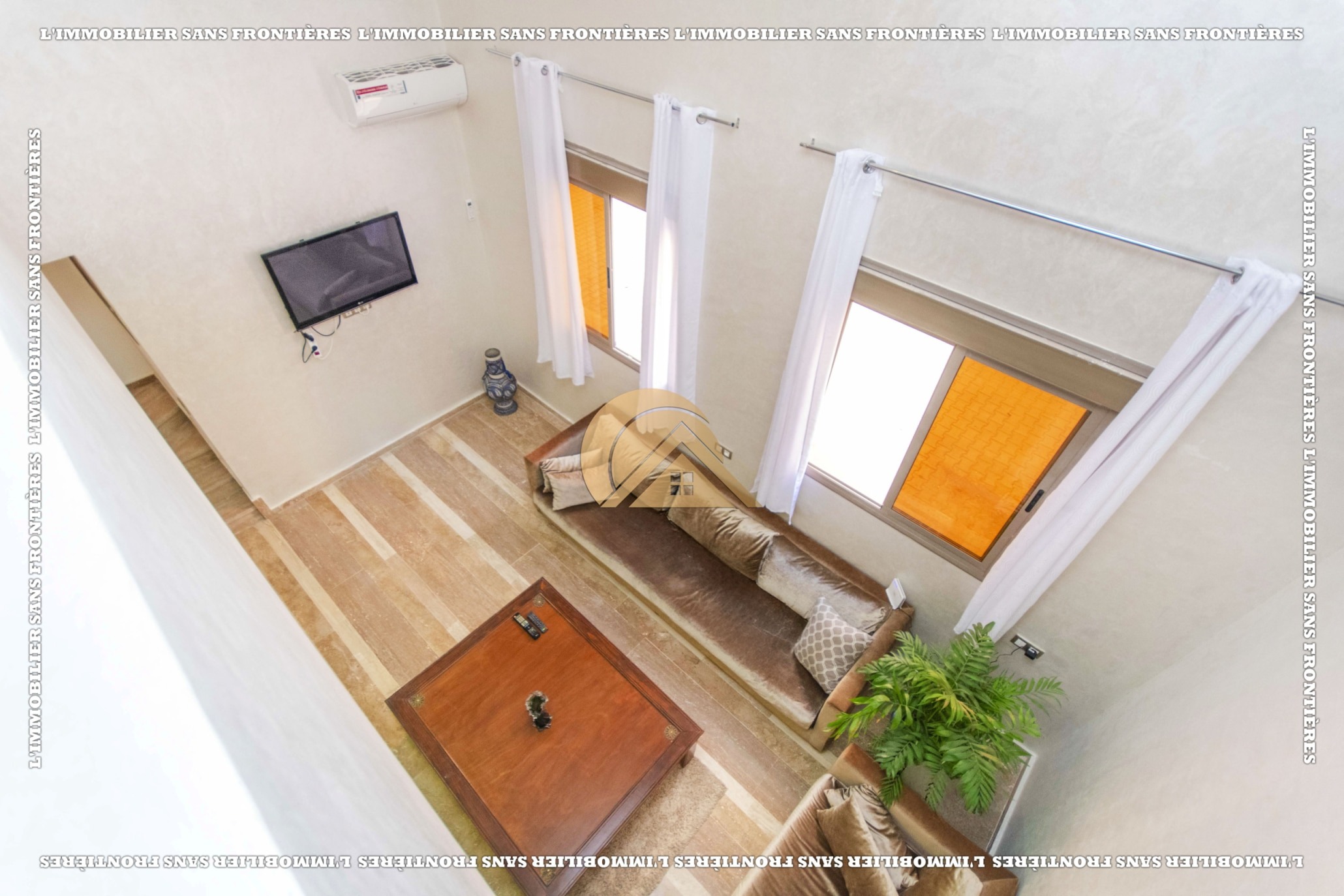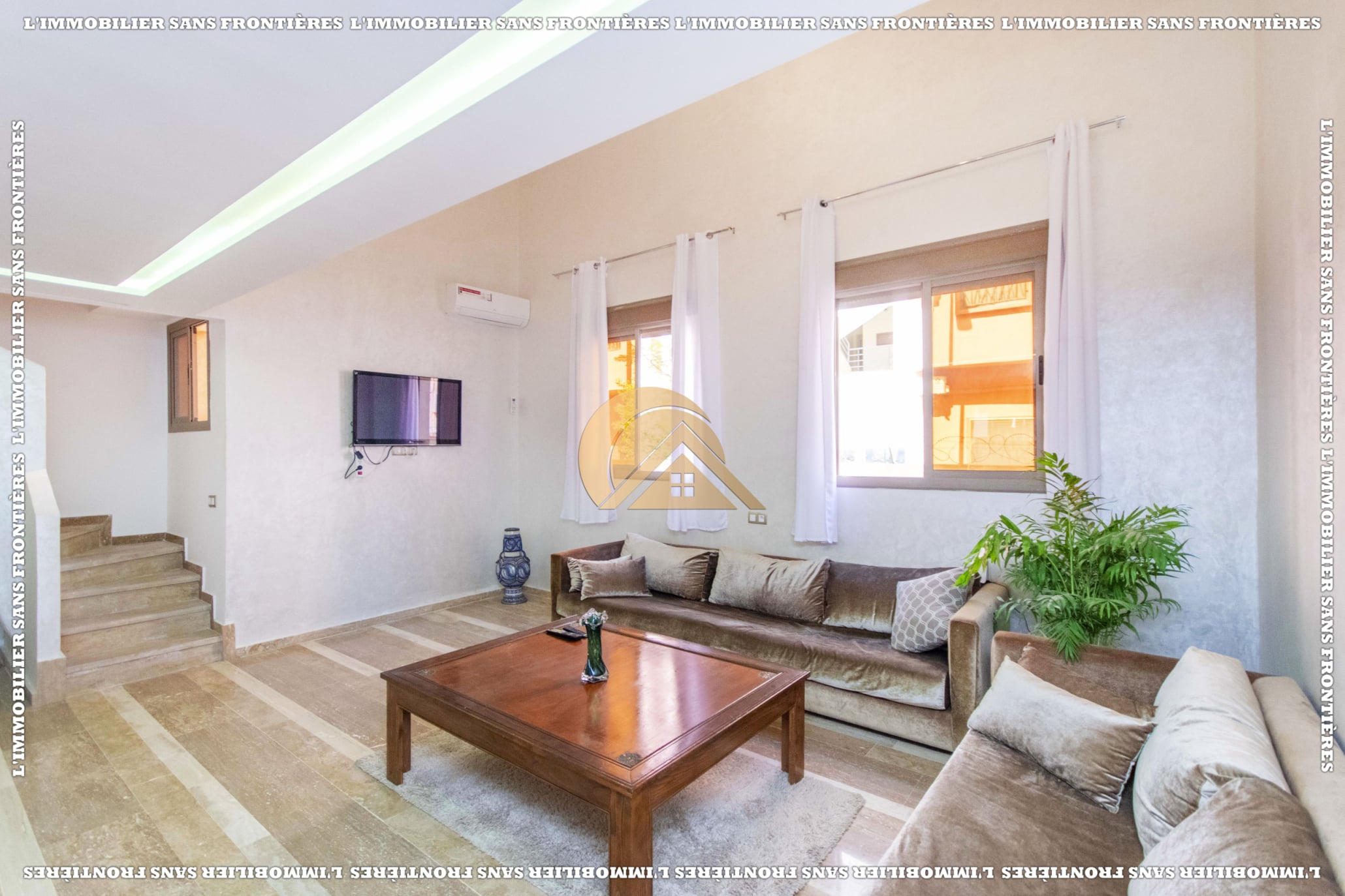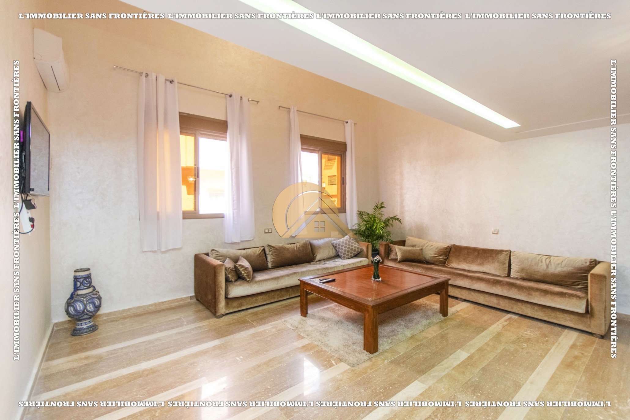 Real Estate Without Borders offers this furnished duplex for sale in Mabrouka, Marrakech, on the ground floor of a secured residence, close to shops and amenities. Size: 83 m².