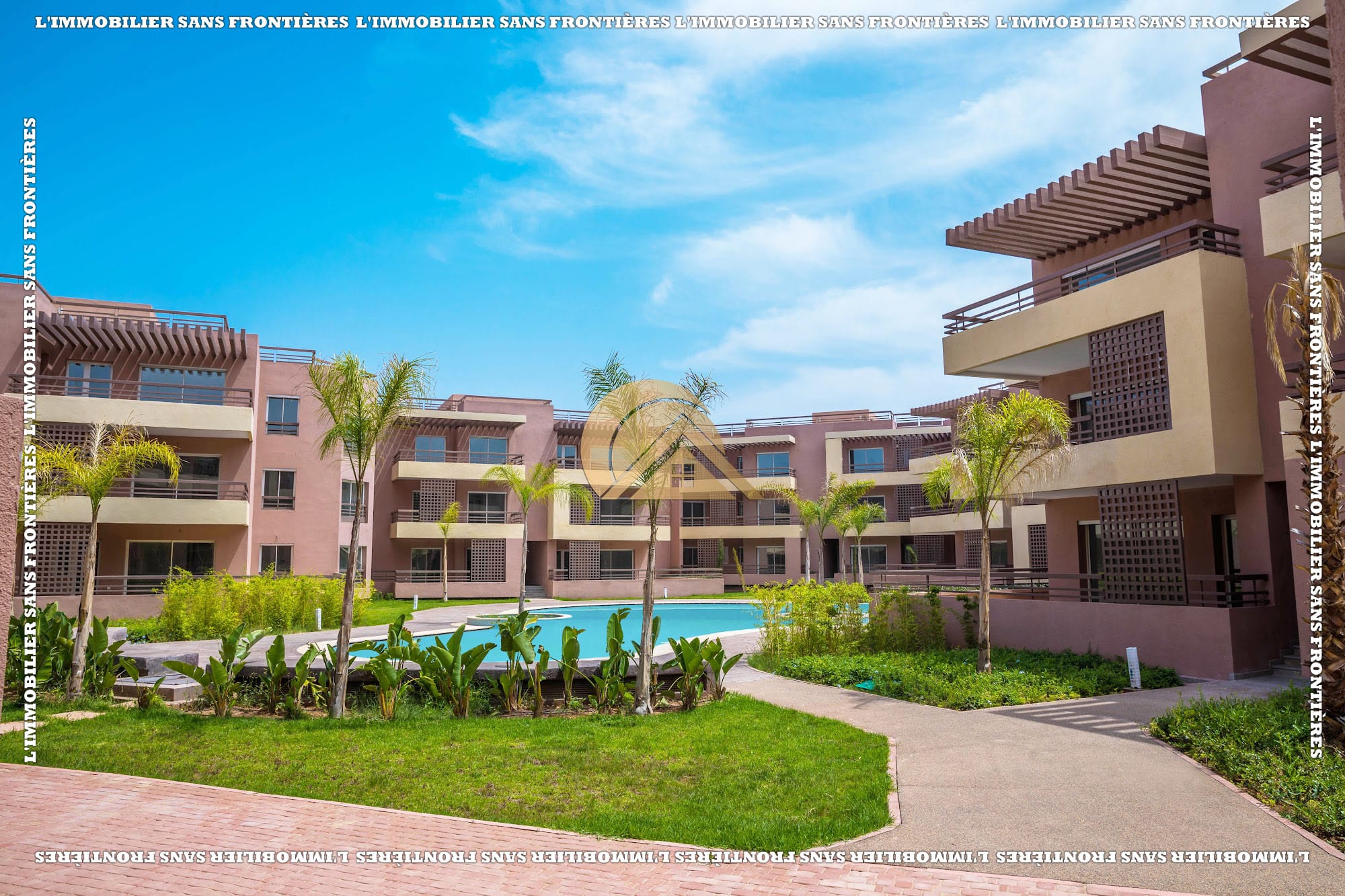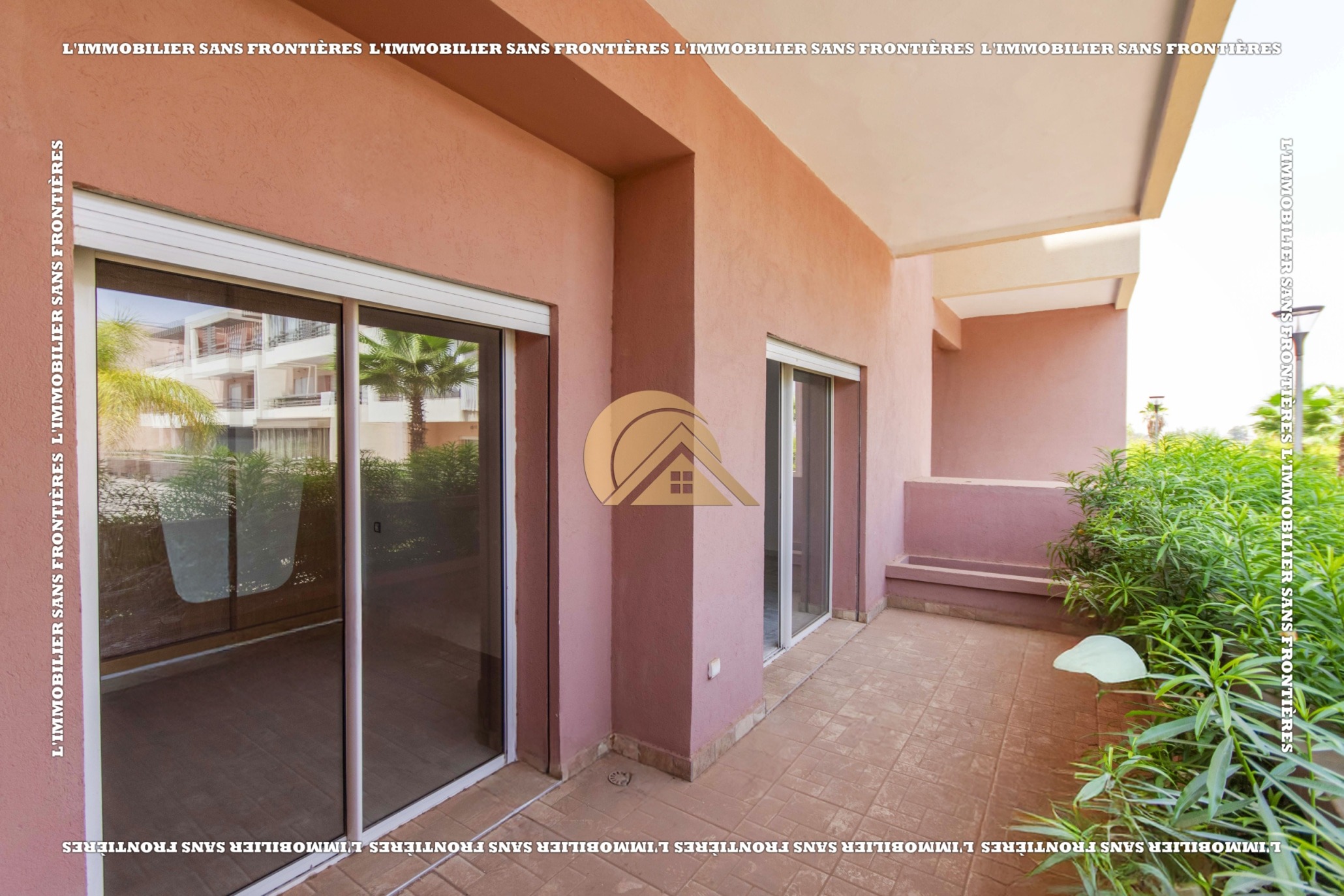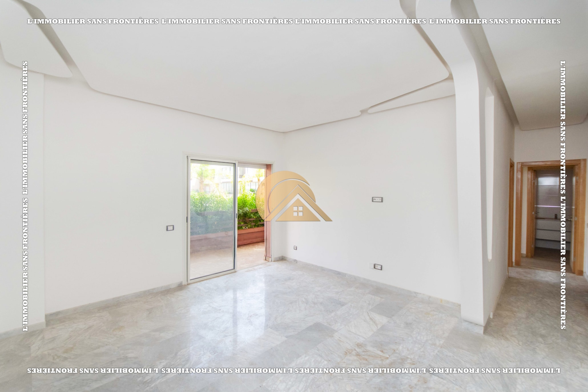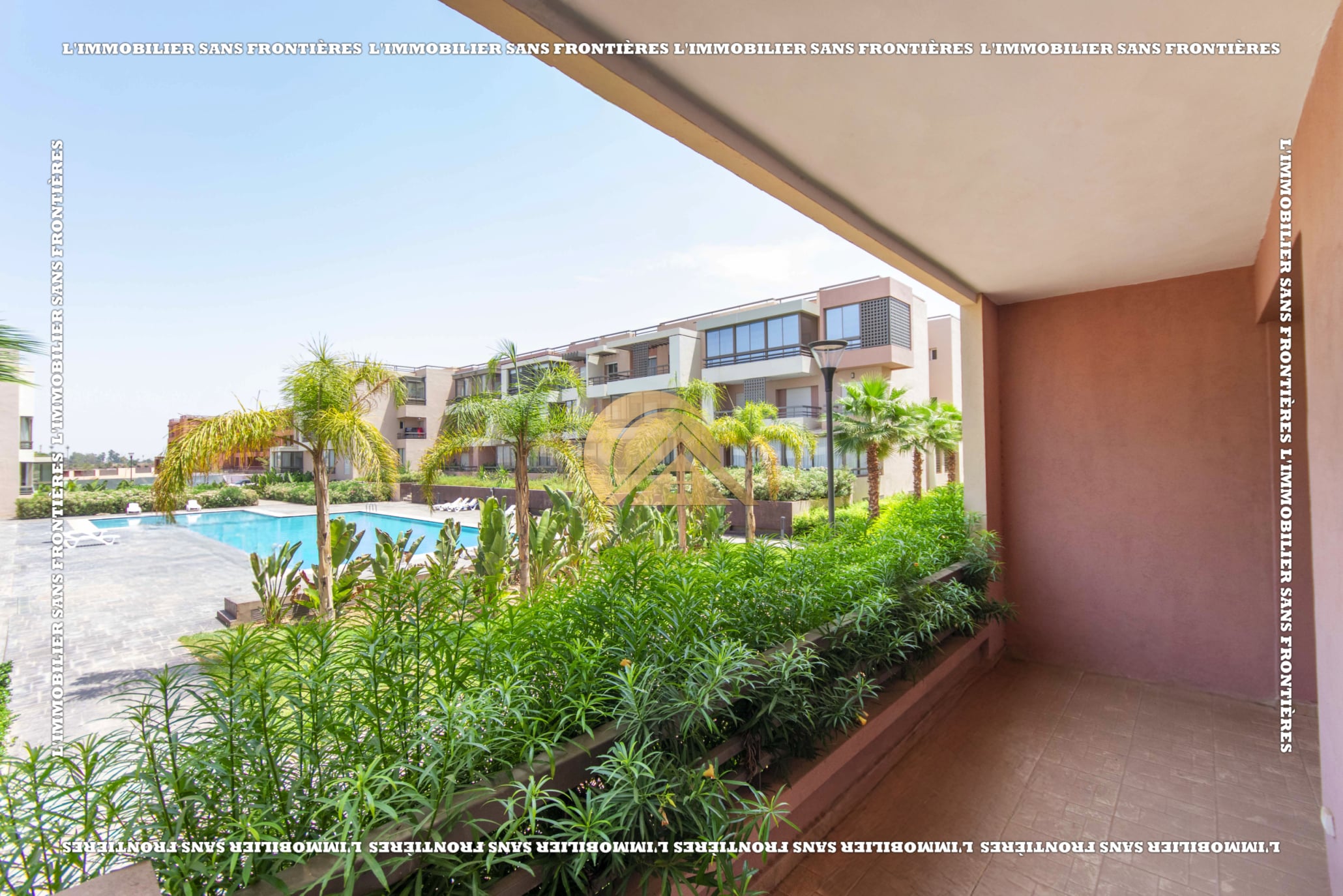 Real Estate Without Borders offers this empty apartment for sale in Agdal, Marrakech, on the ground floor of a secured residence. The residence includes a lift, shared garden, shared pool, and parking, close to amenities.