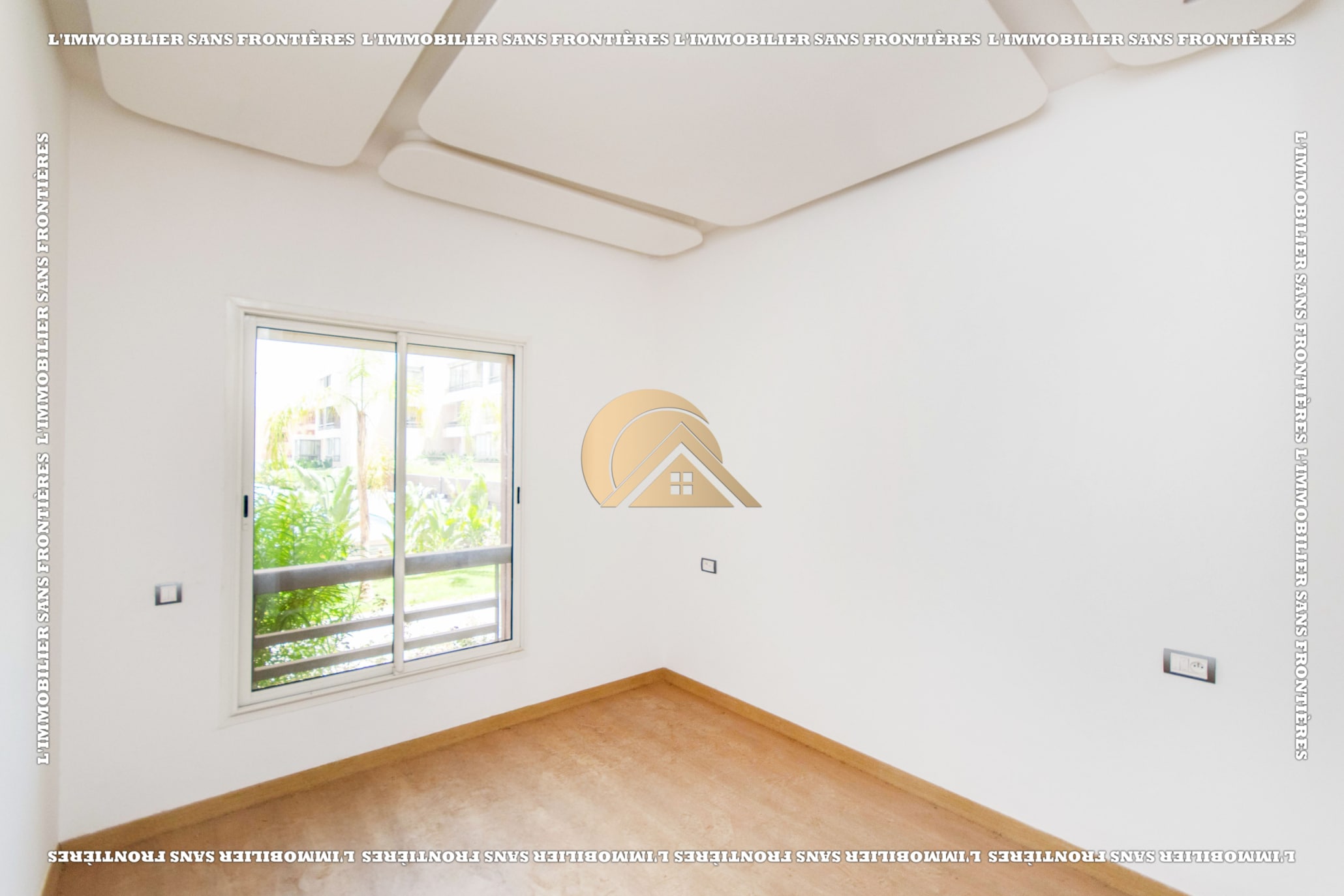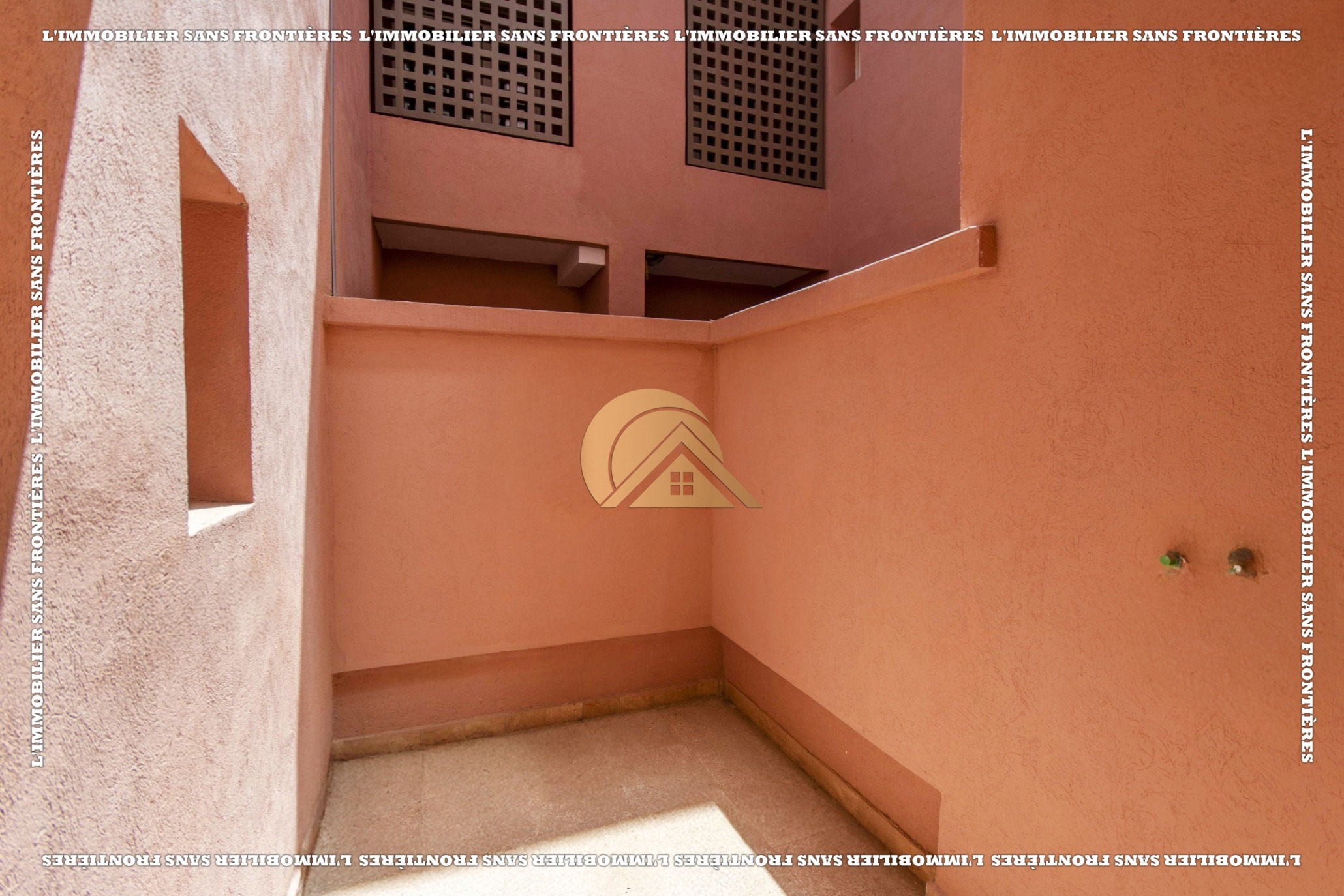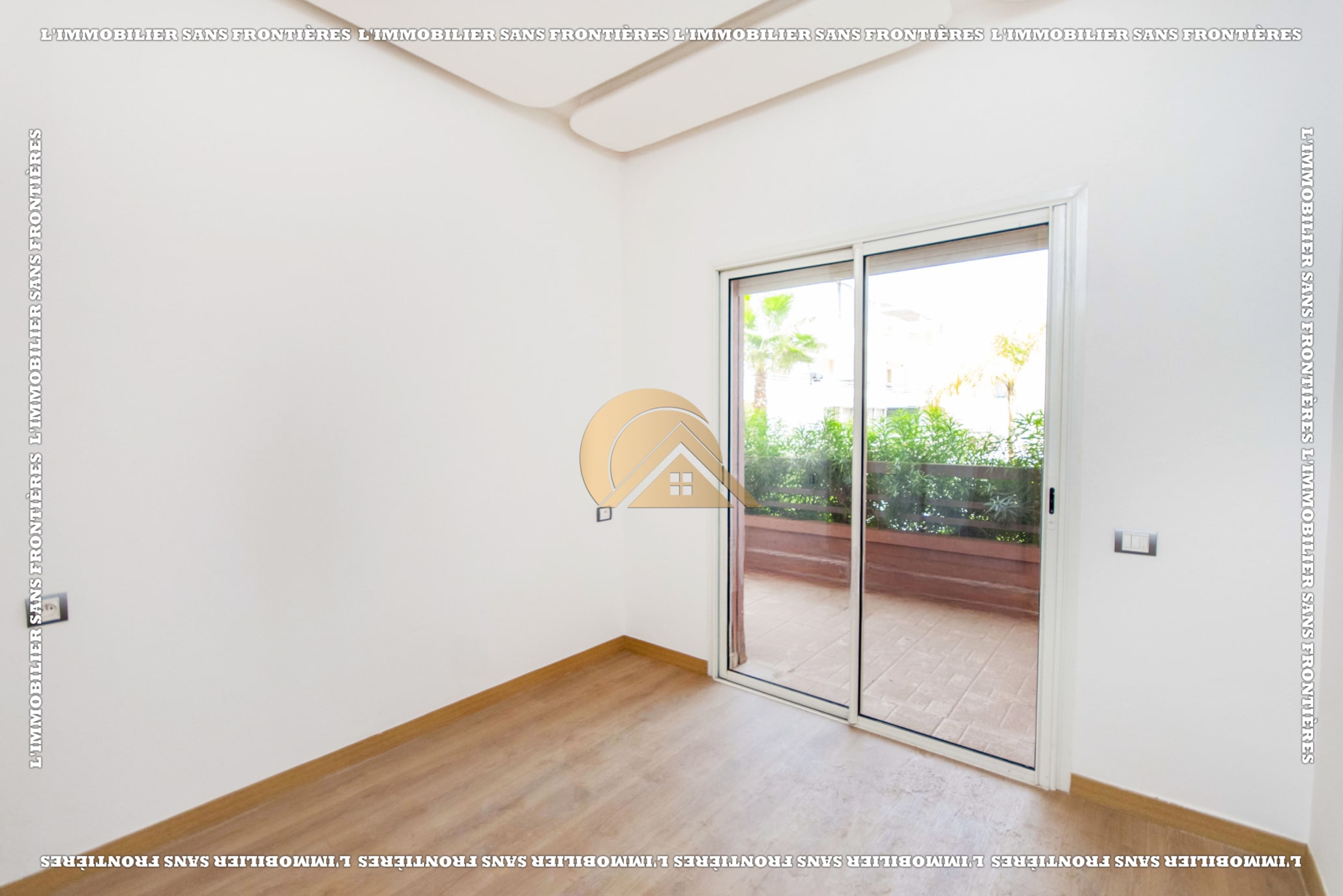 Real Estate Without Borders offers this empty apartment for sale in Agdal, Marrakech, on the ground floor of a secured residence. The residence includes a lift, shared garden, shared pool, and parking, close to amenities.