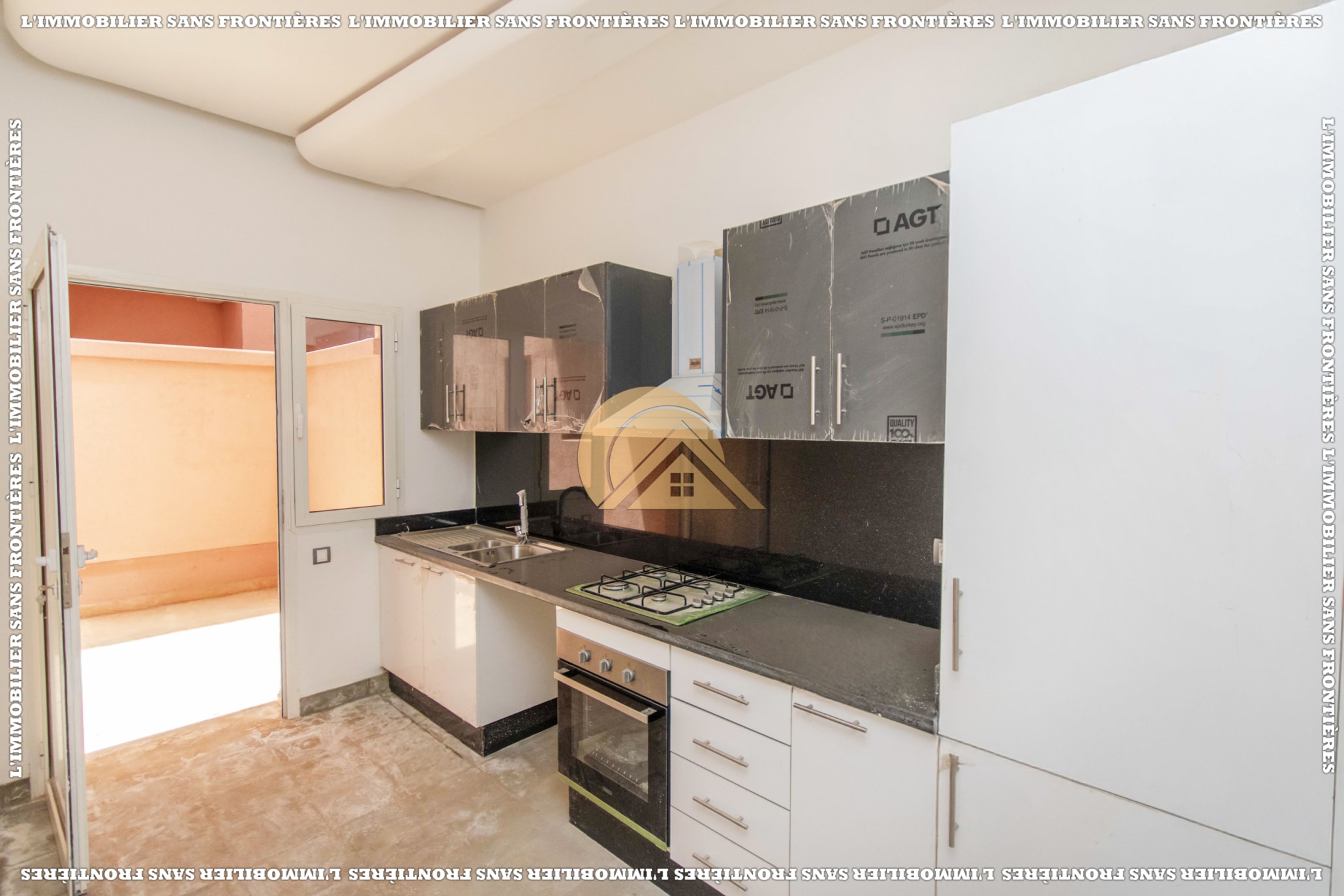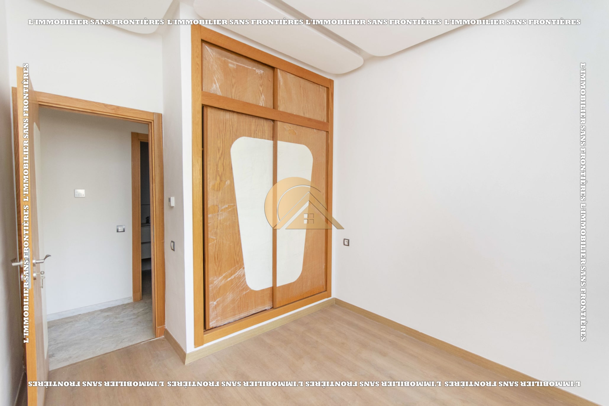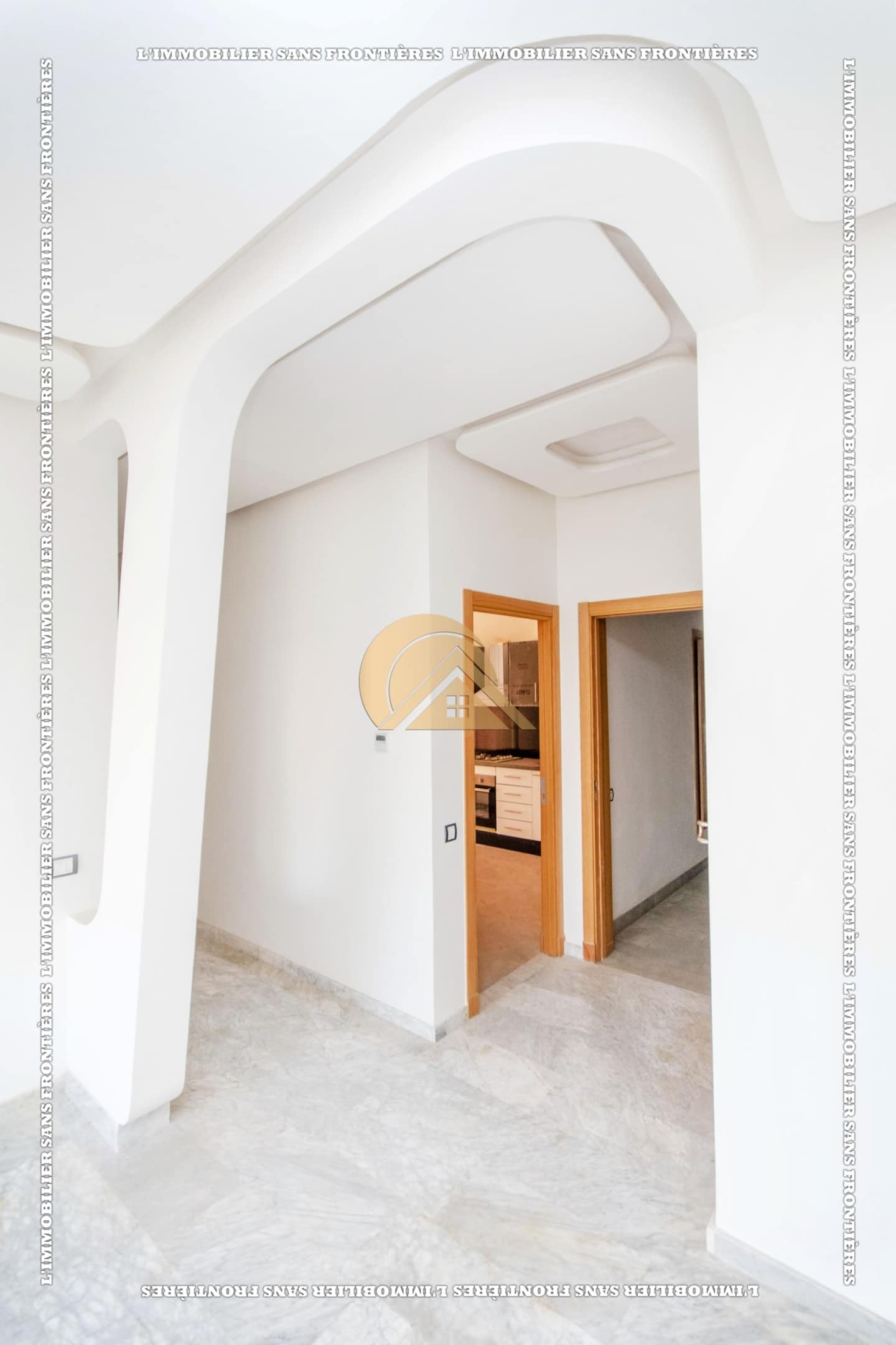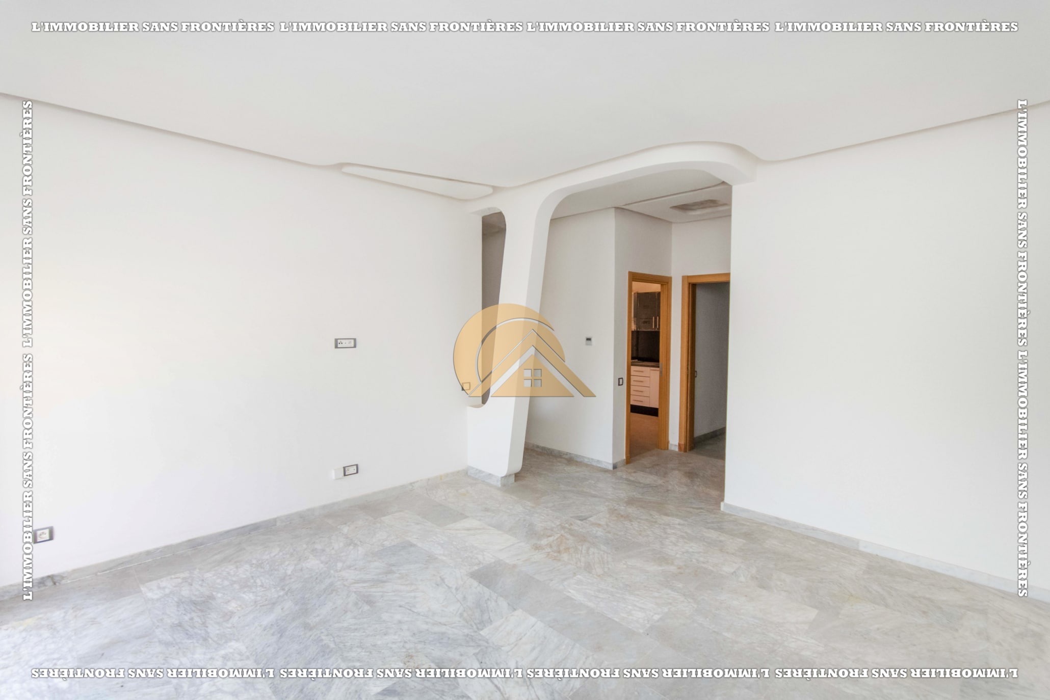 Real Estate Without Borders offers this empty apartment for sale in Agdal, Marrakech, on the ground floor of a secured residence. The residence includes a lift, shared garden, shared pool, and parking, close to amenities.