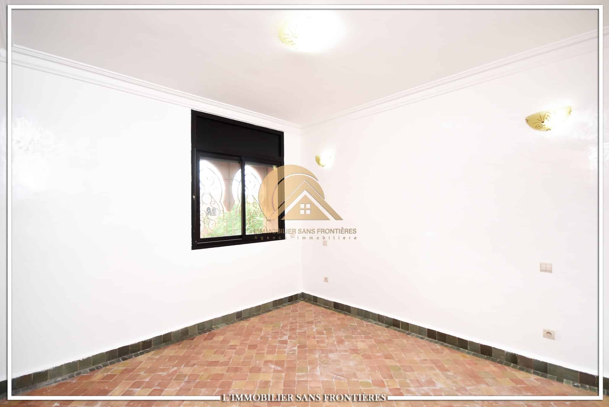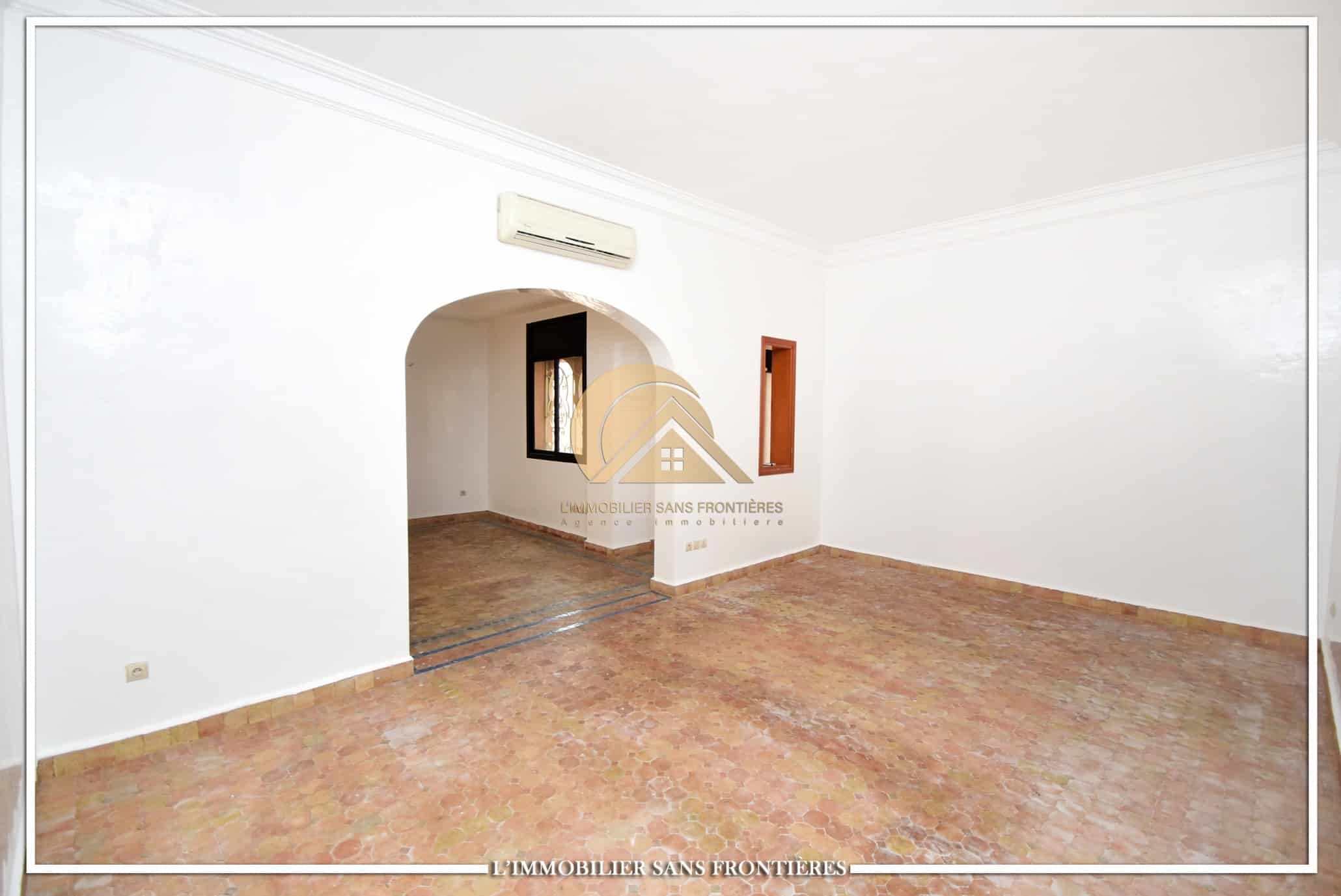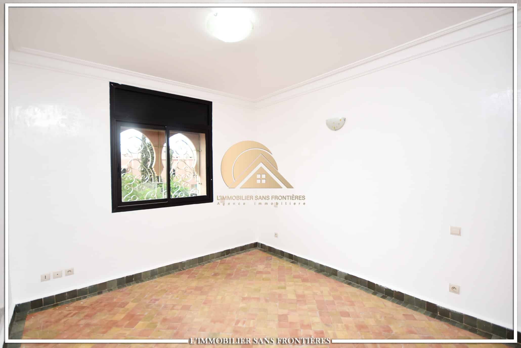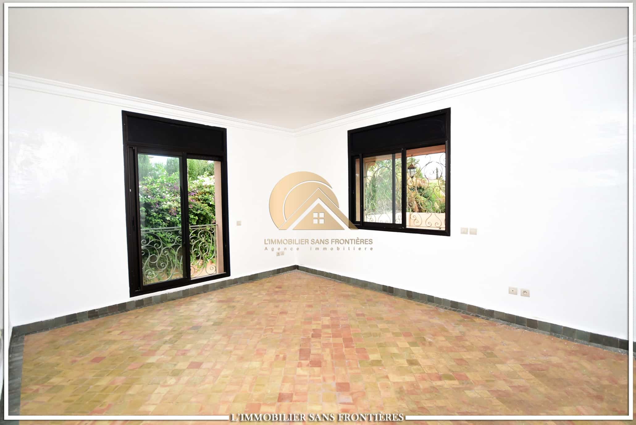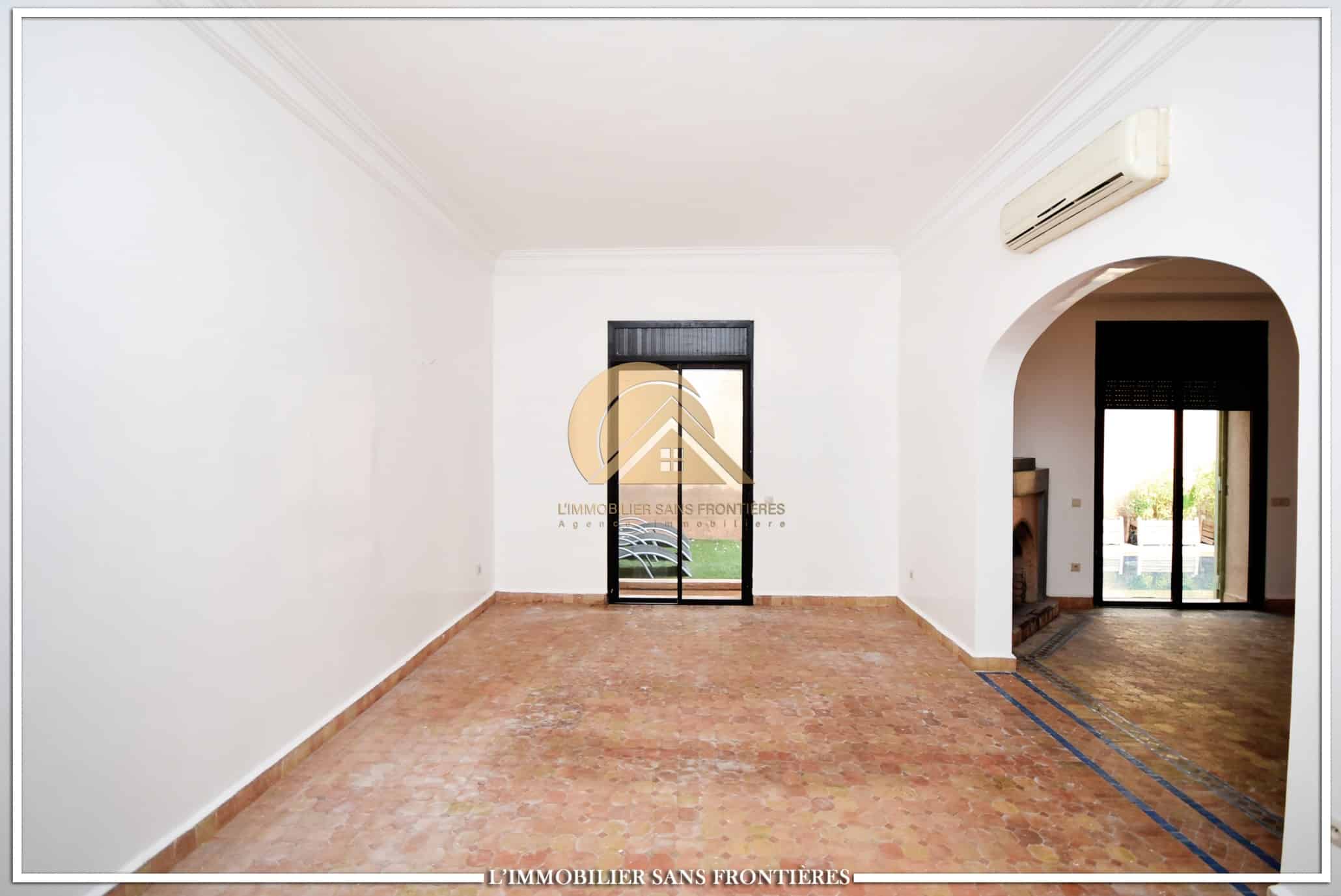 Real Estate Without Borders offers this empty villa for rent within a secure residence in Targa, Marrakech, in a calm residential setting. Built on a 350 m² plot with 260 m² of living space, it includes a private garden and a pool.