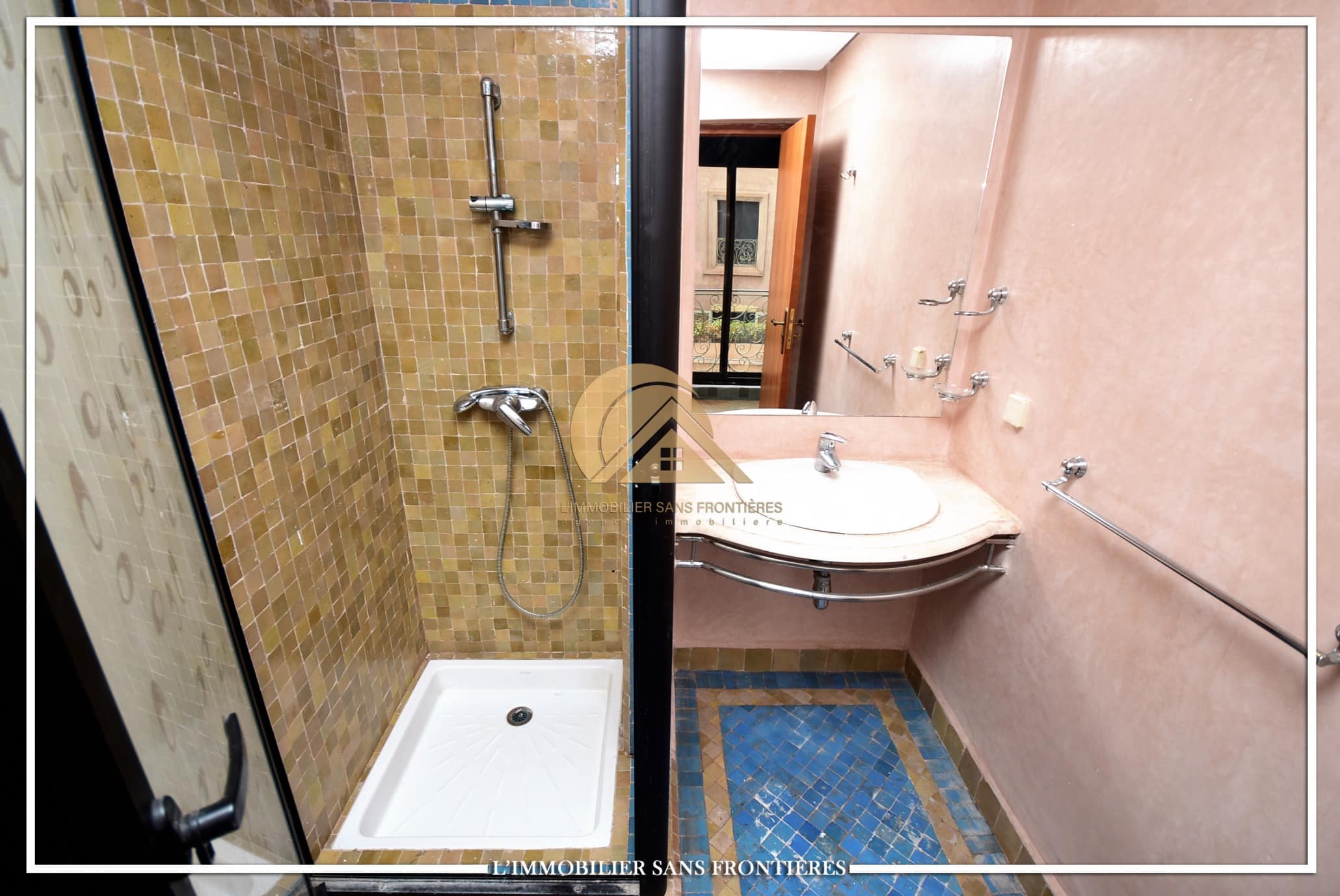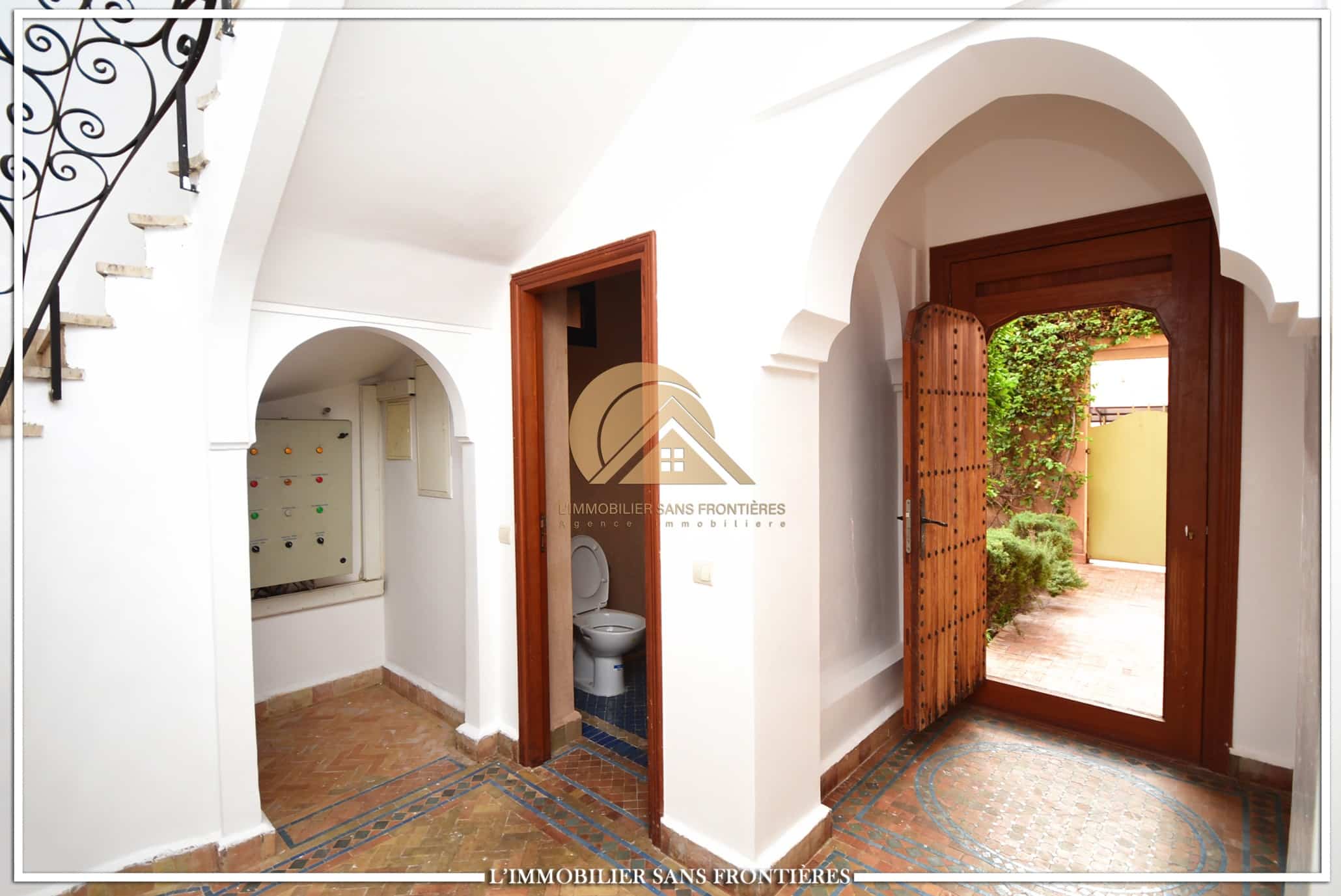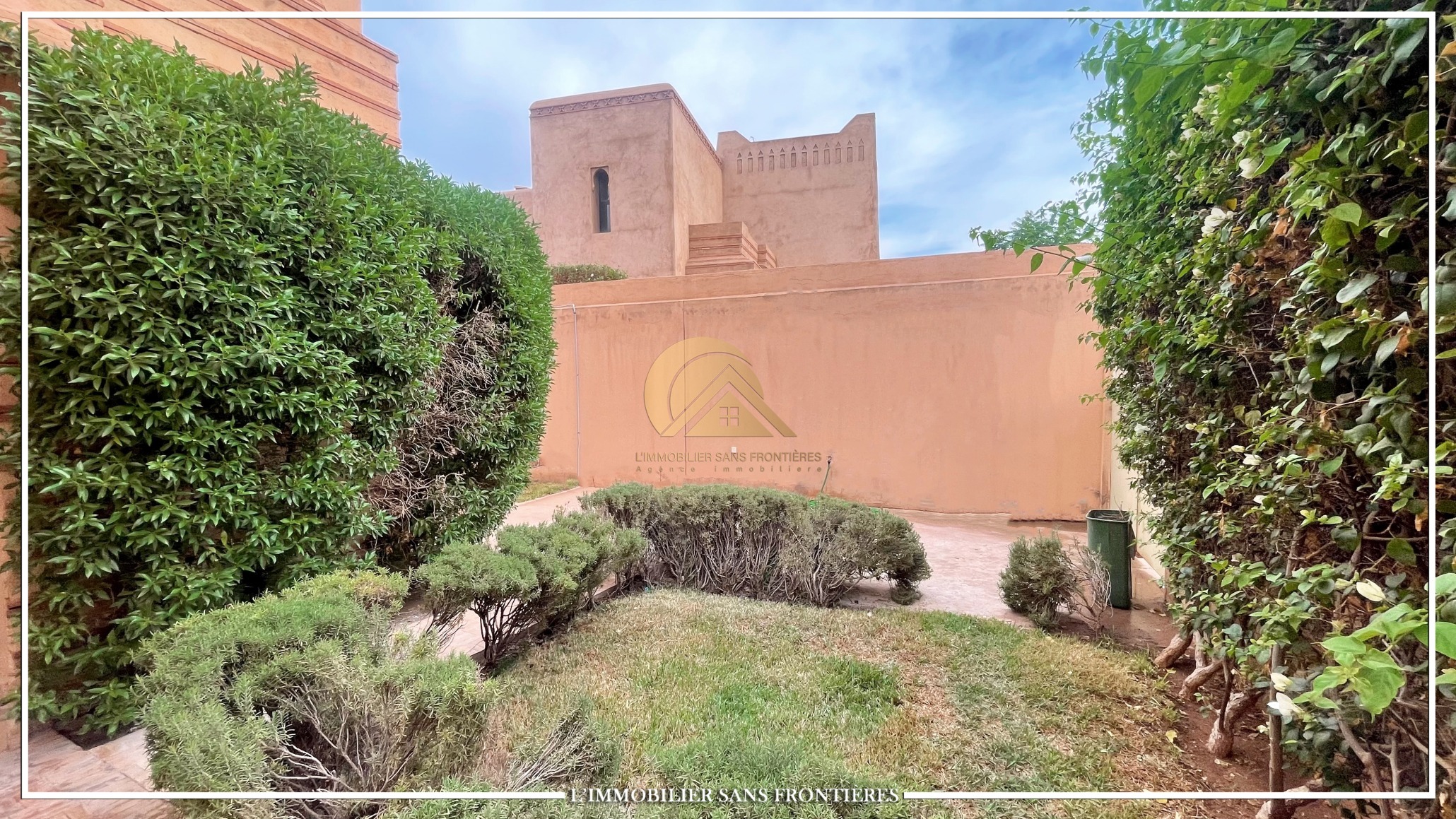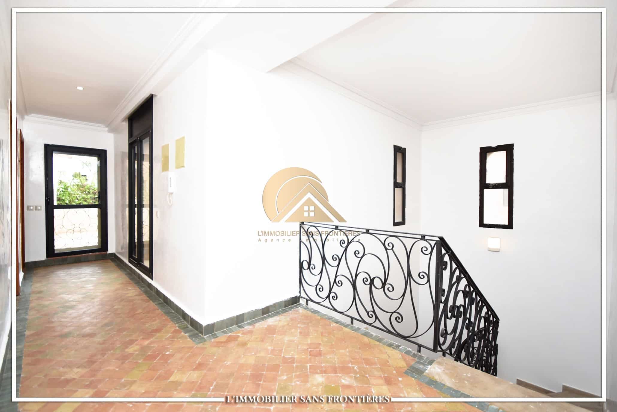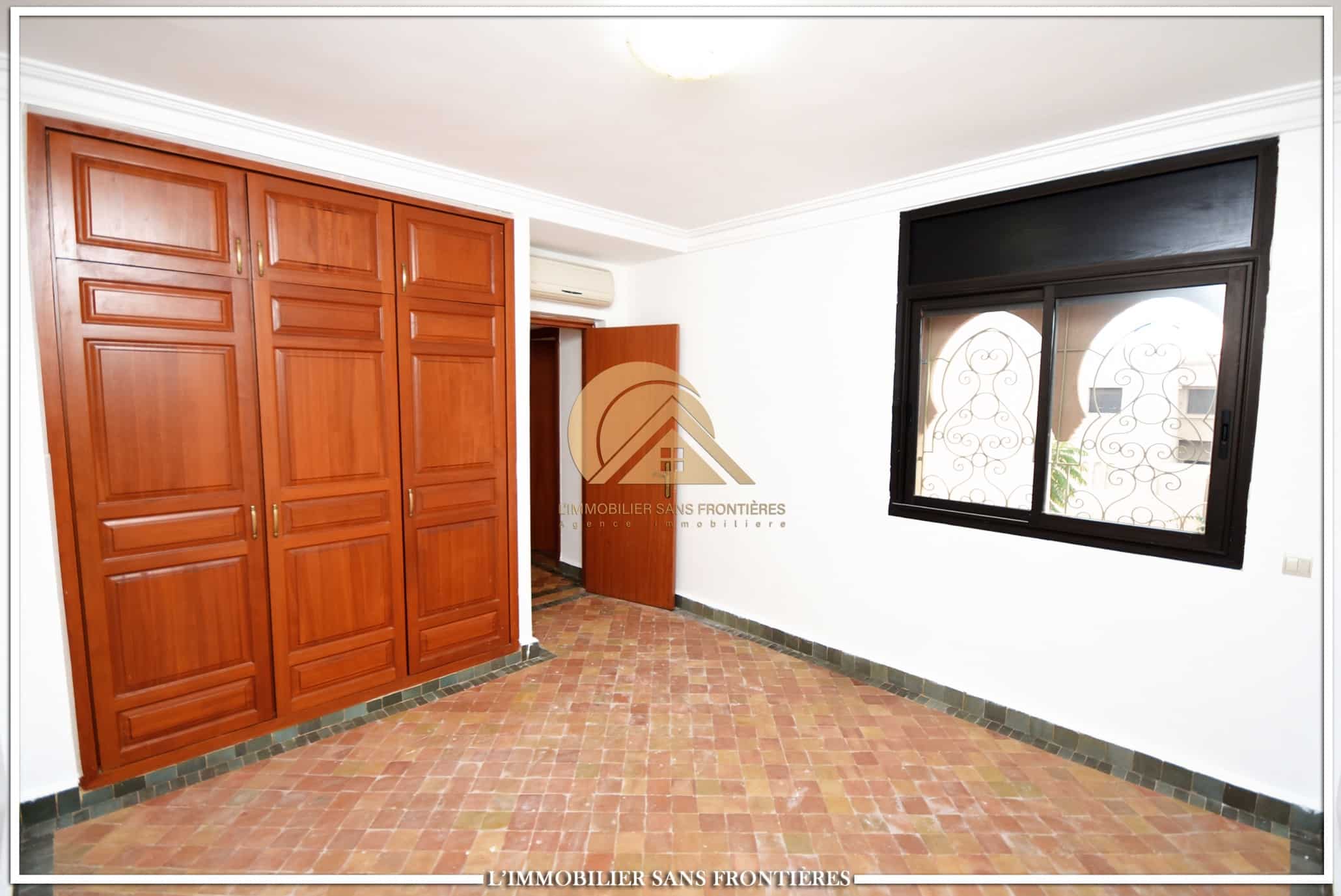 Real Estate Without Borders offers this empty villa for rent within a secure residence in Targa, Marrakech, in a calm residential setting. Built on a 350 m² plot with 260 m² of living space, it includes a private garden and a pool.