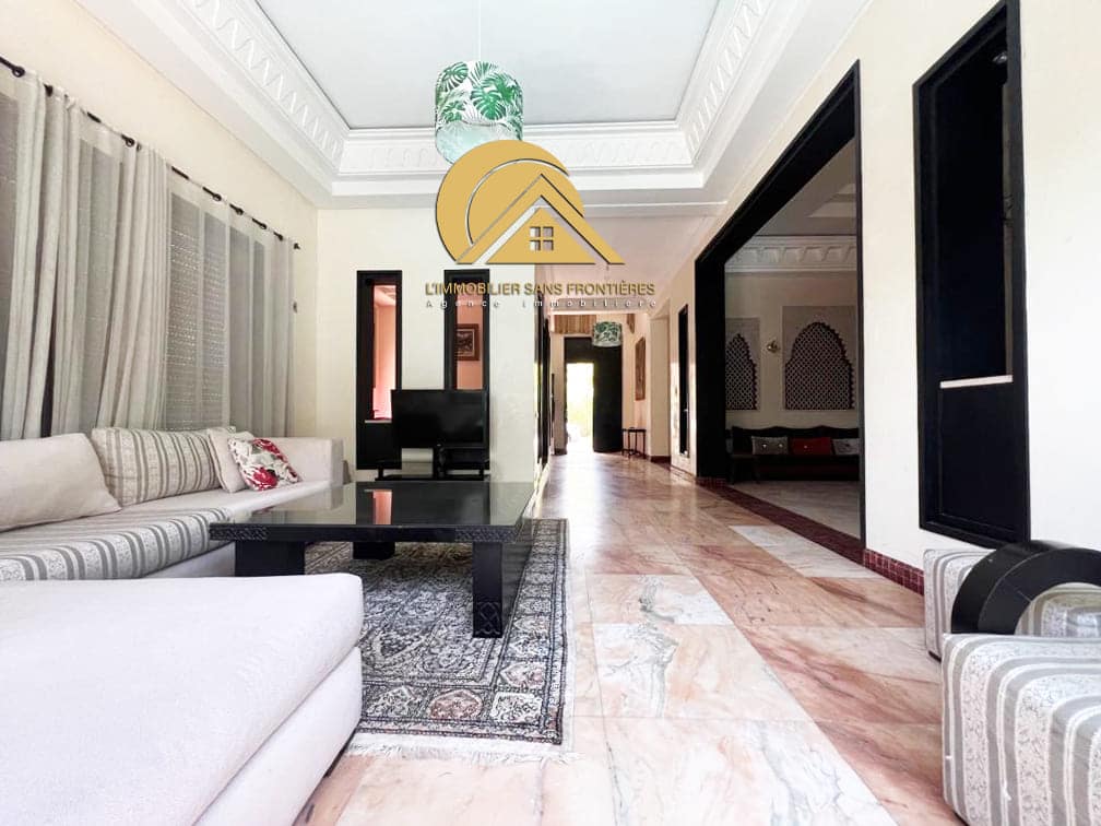 Real Estate Without Borders offers this empty villa for rent in Targa, Marrakech. It includes a large garden and a private pool, with access to a shared garden and a communal pool.