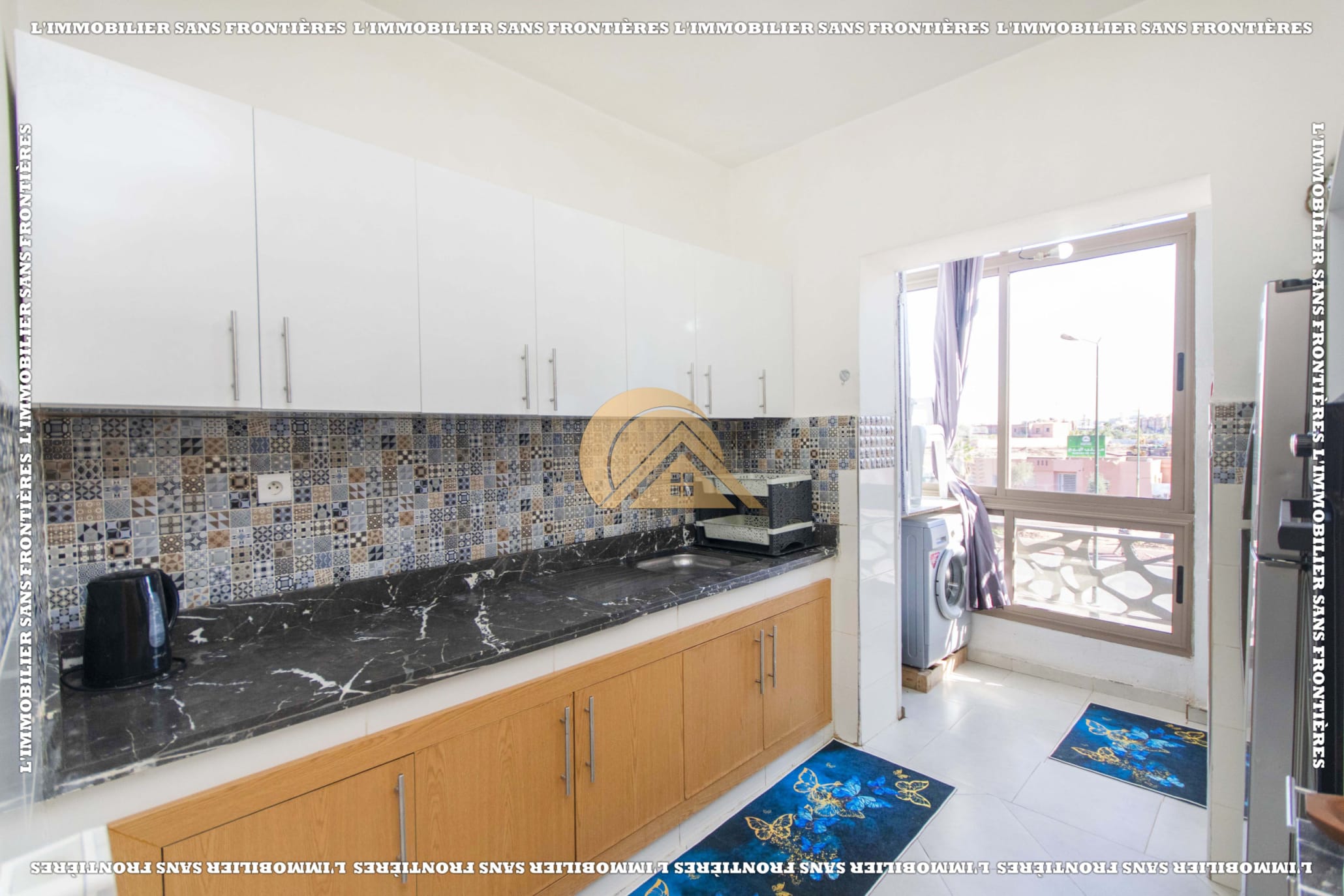 Real Estate Without Borders offers this furnished apartment for rent in Targa, Marrakech. Located on the 1st floor, it provides 60 m² with a functional layout, close to neighborhood amenities.
