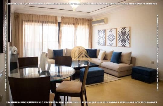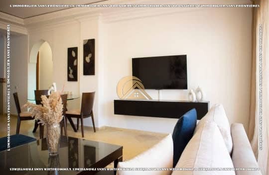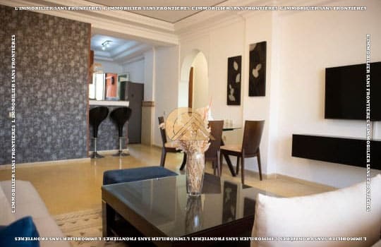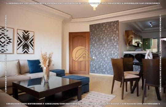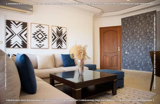 Real Estate Without Borders offers for rent this furnished apartment in Victor Hugo, Marrakech, on the 1st floor of a well-maintained building with elevator. With a surface area of 90 m², it is presented as close to shops, restaurants, and amenities.