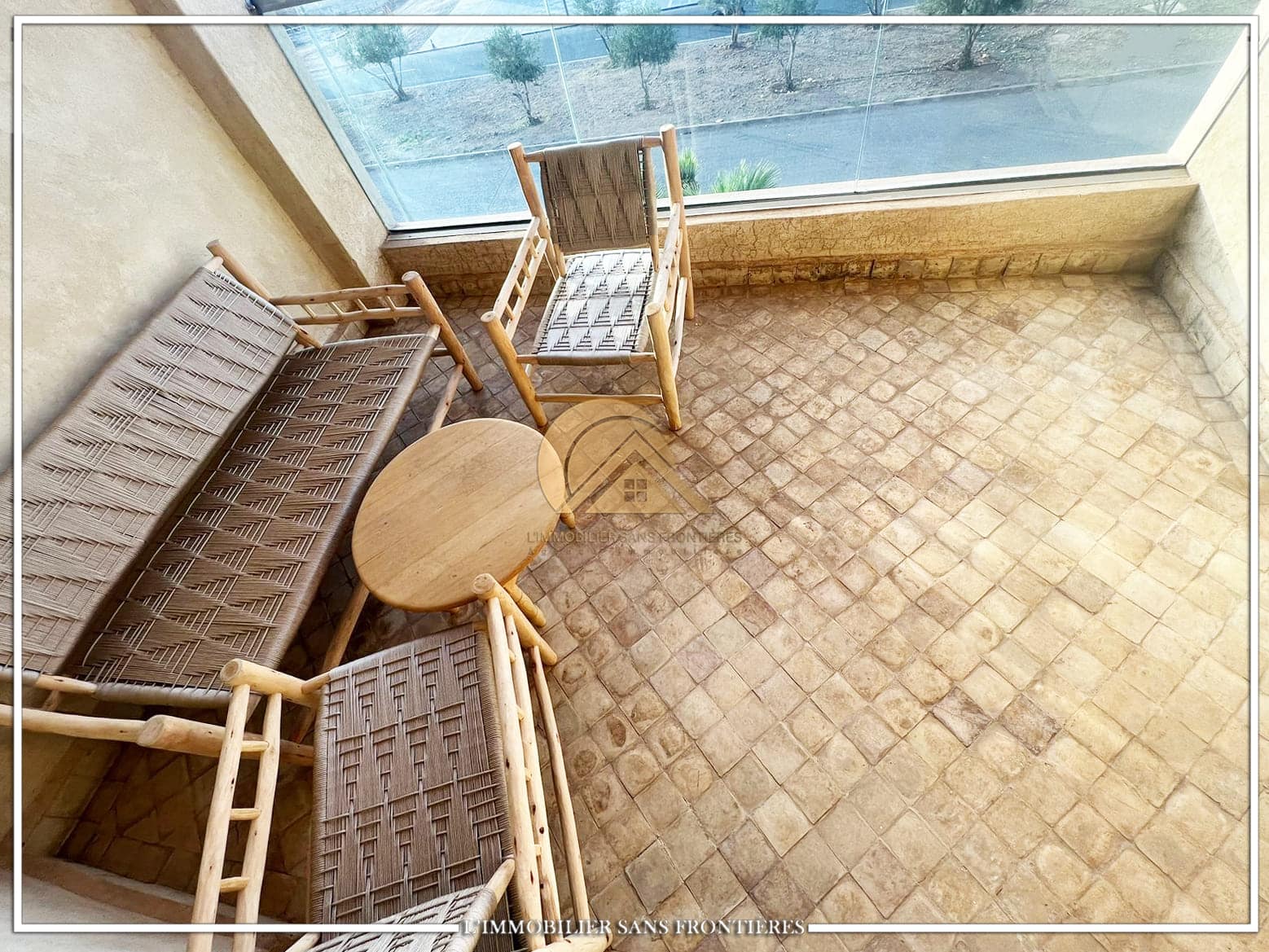 Real Estate Without Borders offers for rent this furnished apartment located in Agdal, Marrakech. The stated area is 100 m², on the 3rd floor. The residence has a shared pool and a garden. Note: the residence does not have an elevator.