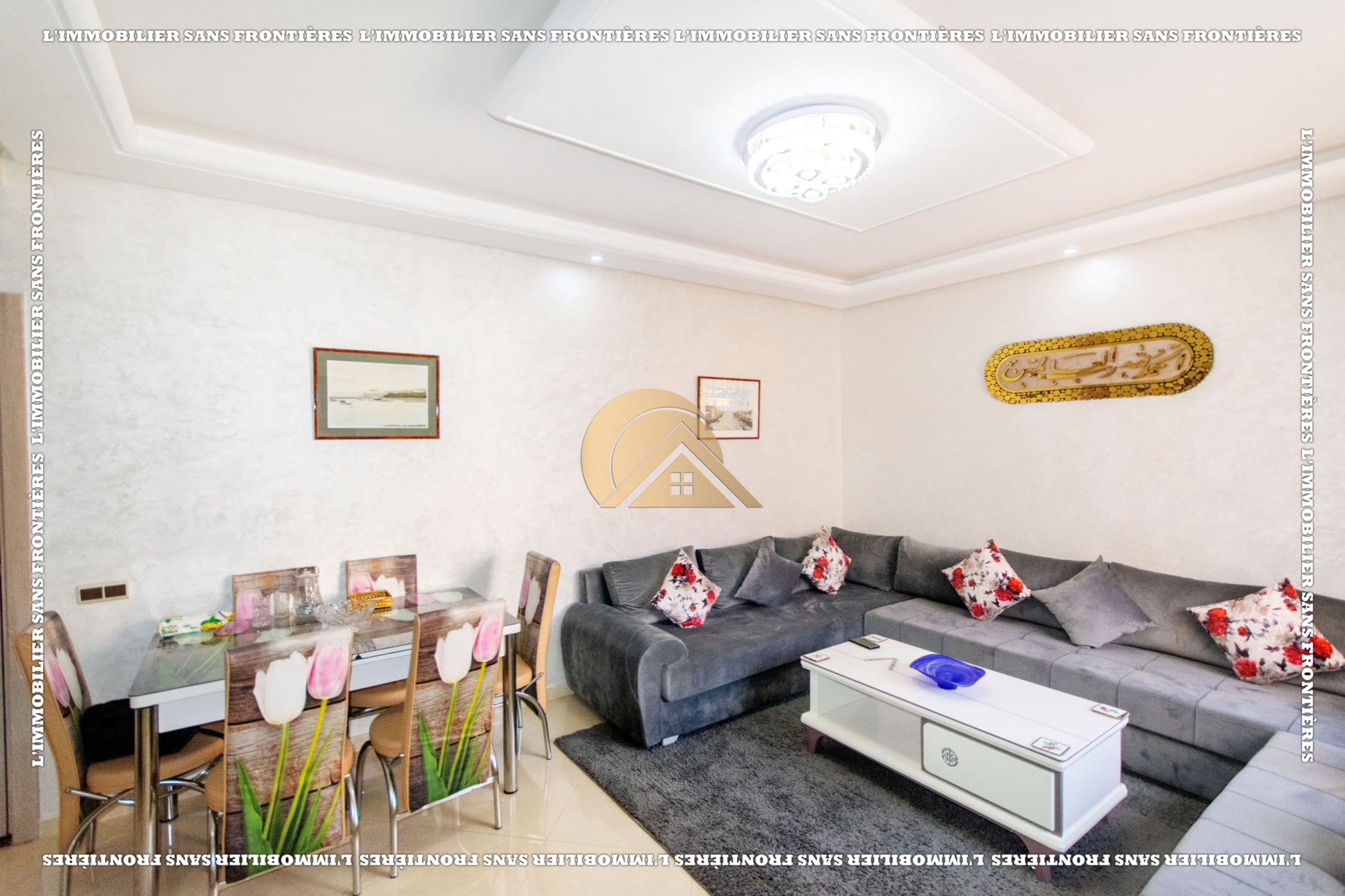 Real Estate Without Borders offers this furnished 71 m² apartment for sale in Mabrouka, Marrakech, on the 5th floor of a well-maintained residence. It has open views and good natural light.