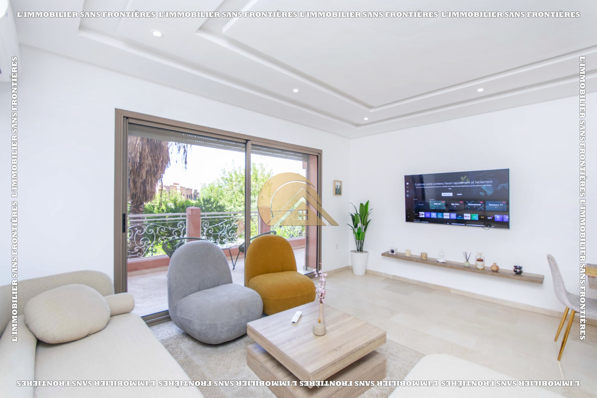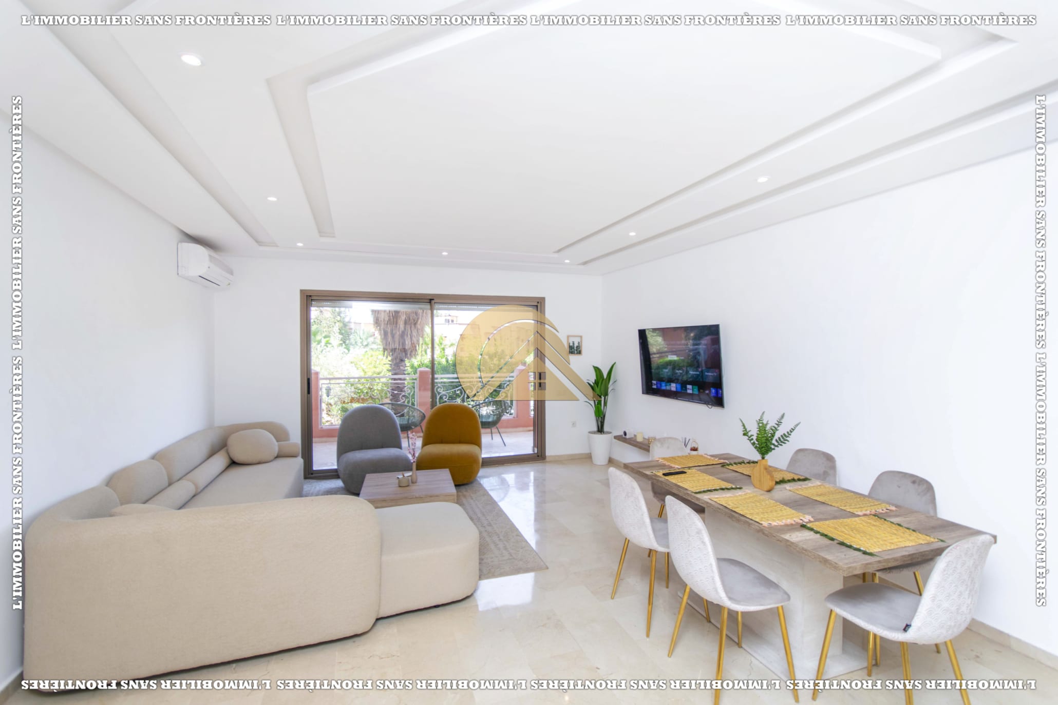 Real Estate Without Borders offers this furnished 96 m² apartment for sale on Route de Casablanca in Marrakech, located on the ground floor of a secure residence. It provides easy access to amenities and the city’s main routes.