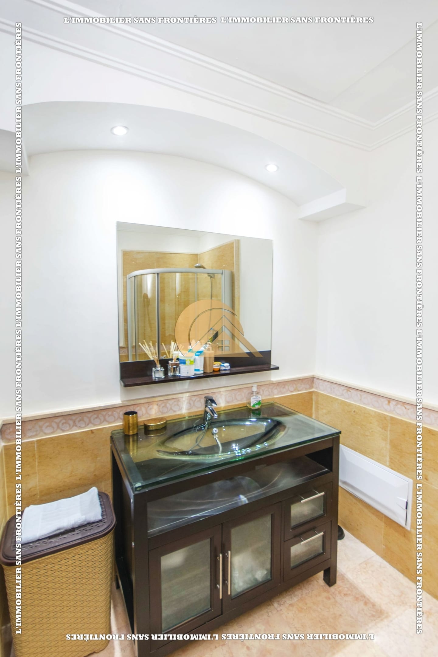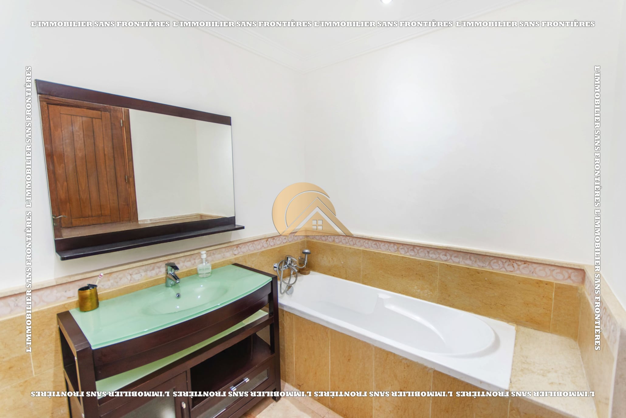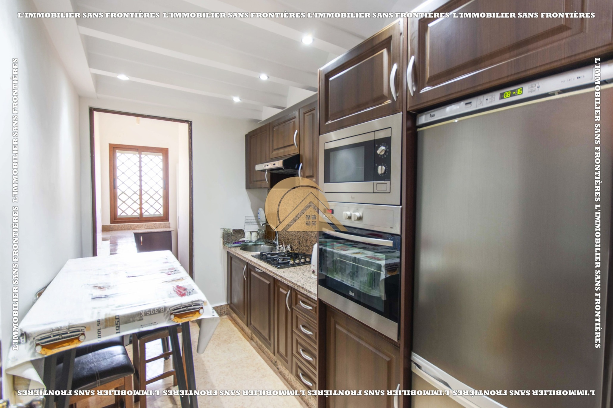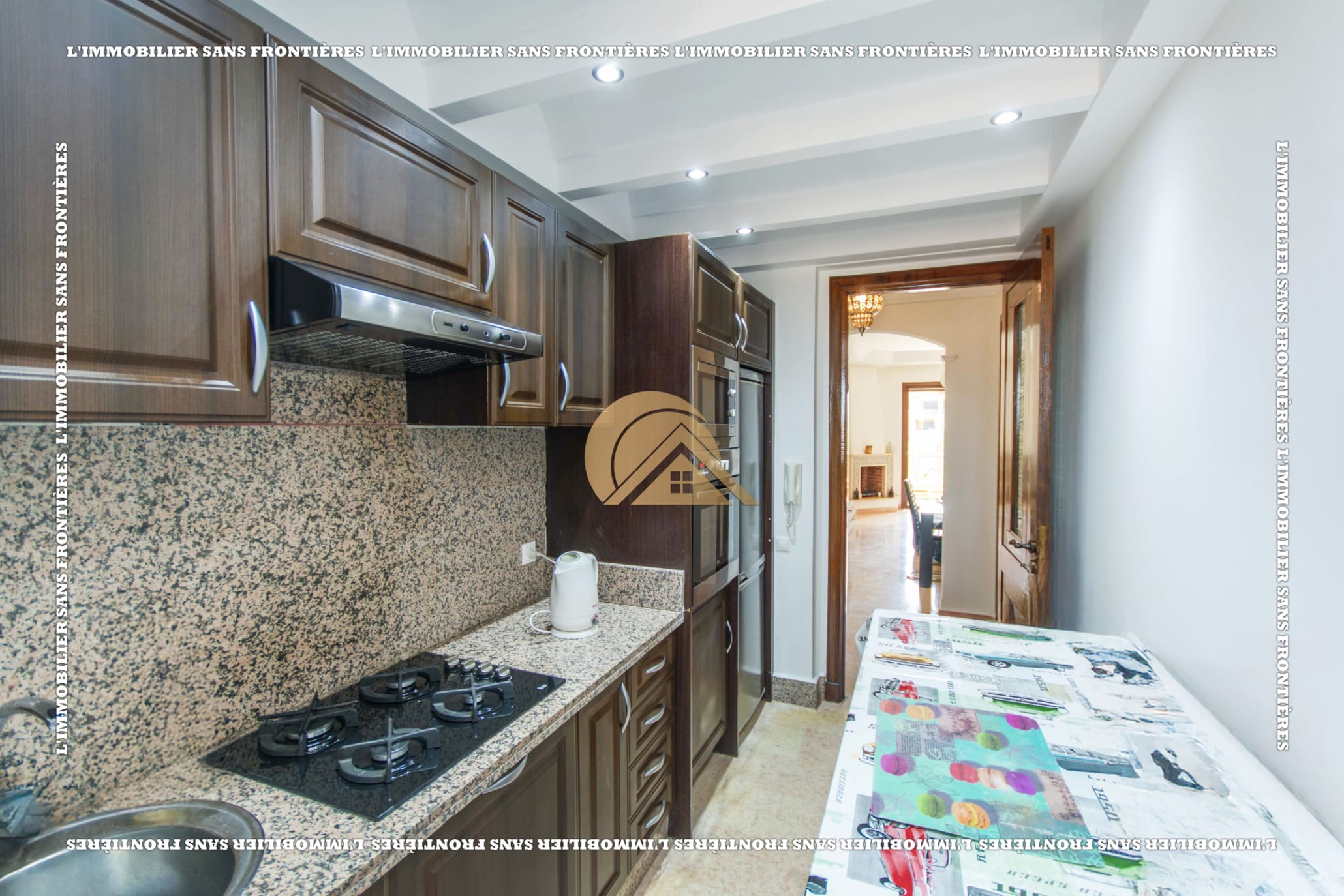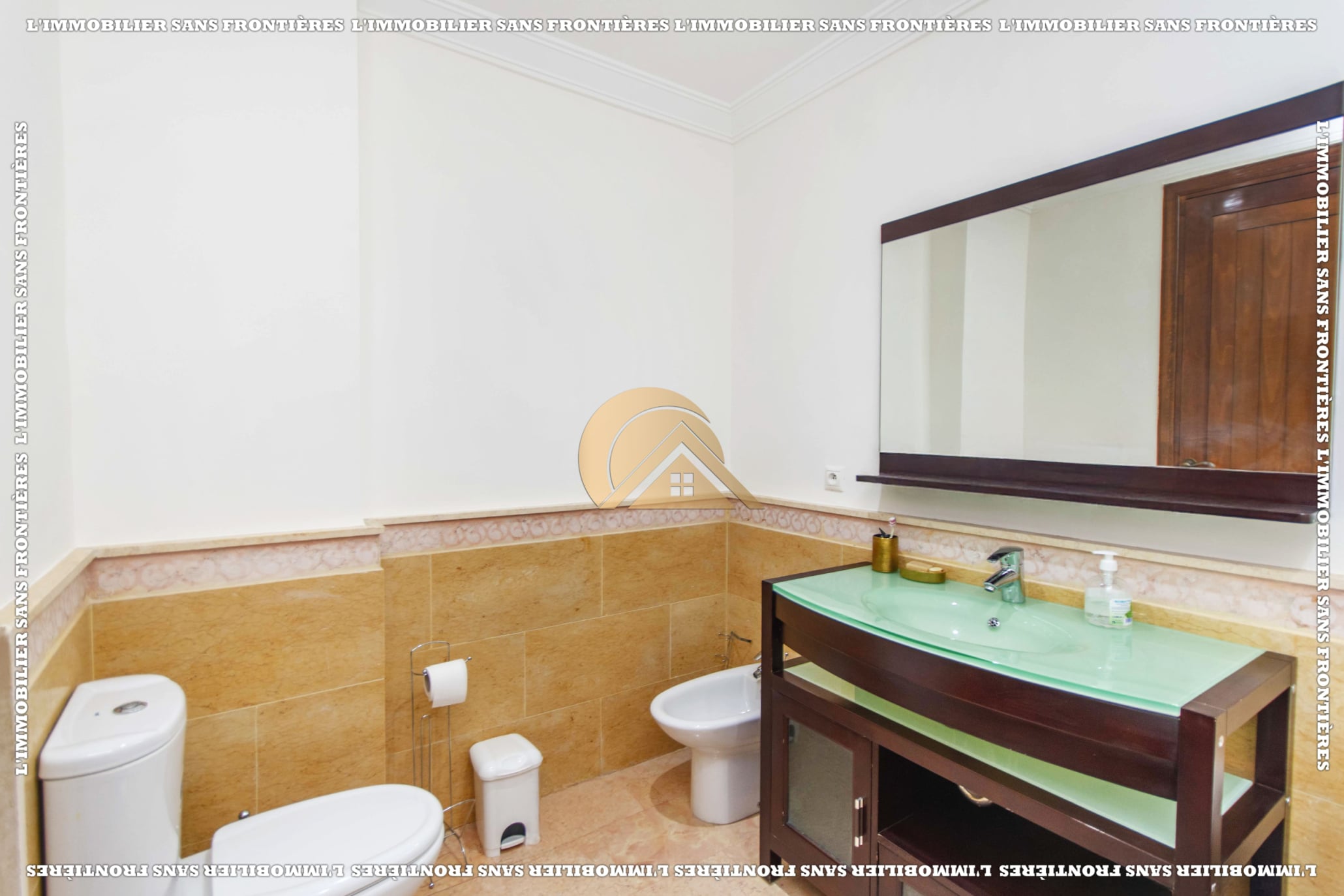 Real Estate Without Borders offers this furnished apartment for sale in Agdal, Marrakech, on the 2nd floor. It is in a calm, secure and well-maintained residence with an elevator, shared garden, shared pool and basement parking. The stated area is 104 m².