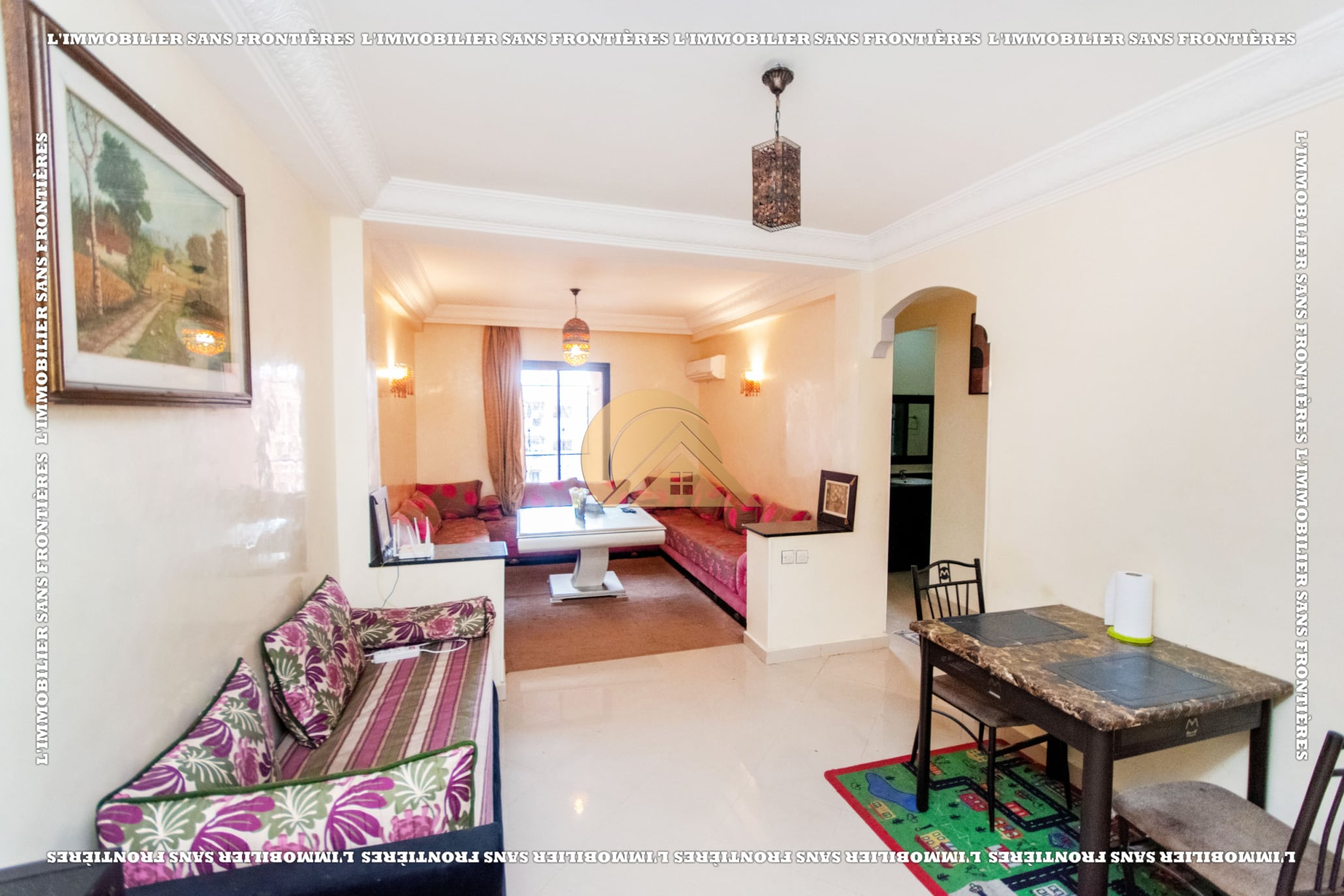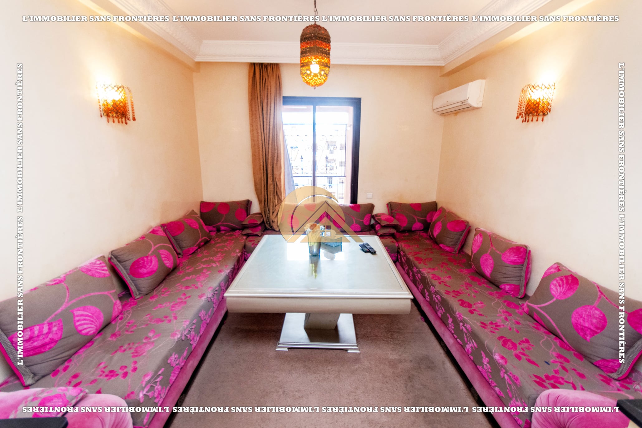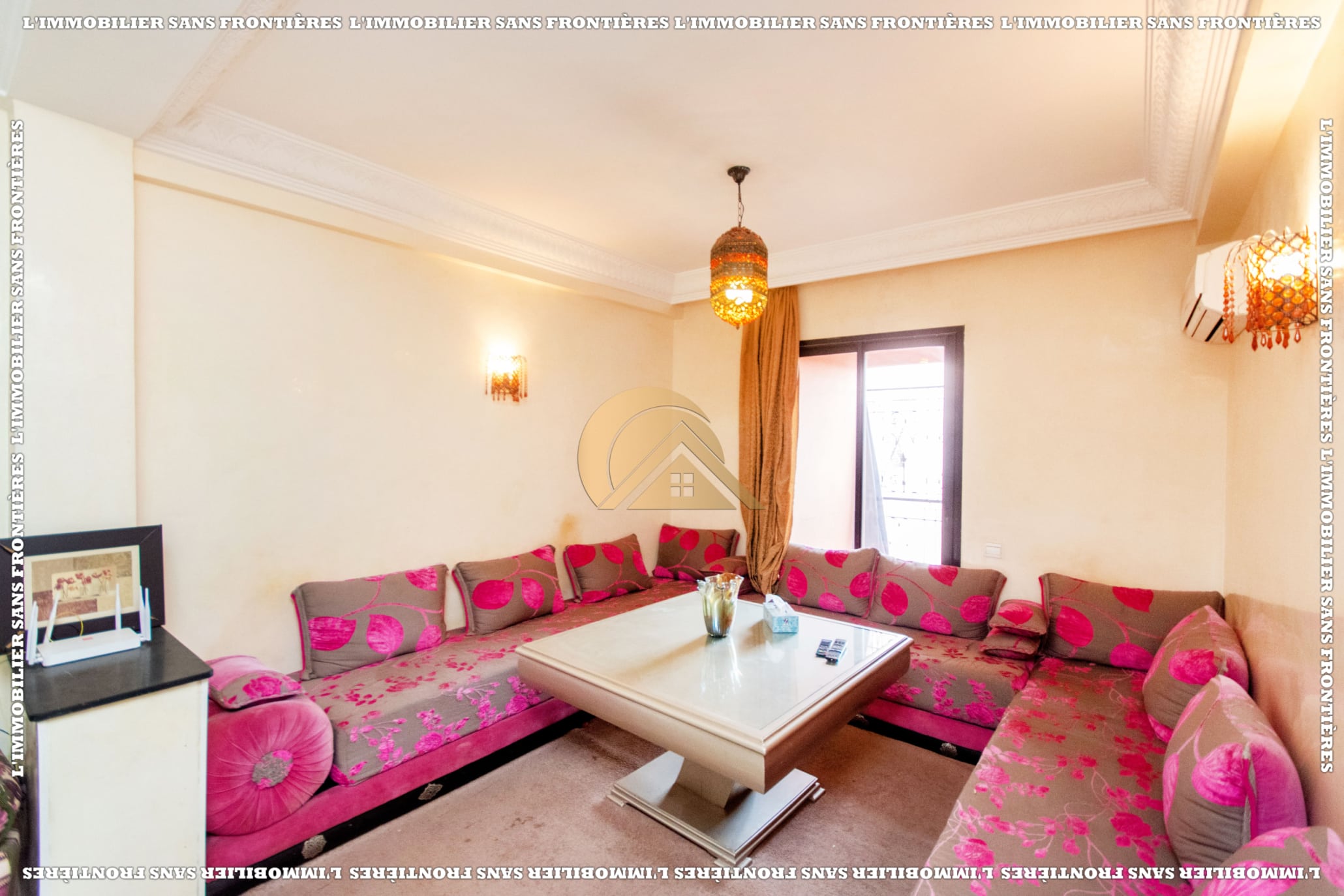 Real Estate Without Borders offers this furnished apartment for rent in Hay Charaf, Marrakech, located on the 4th floor of a modern building in a calm and secure area. The listing mentions a building with several comfort facilities. The stated area is 80 m².