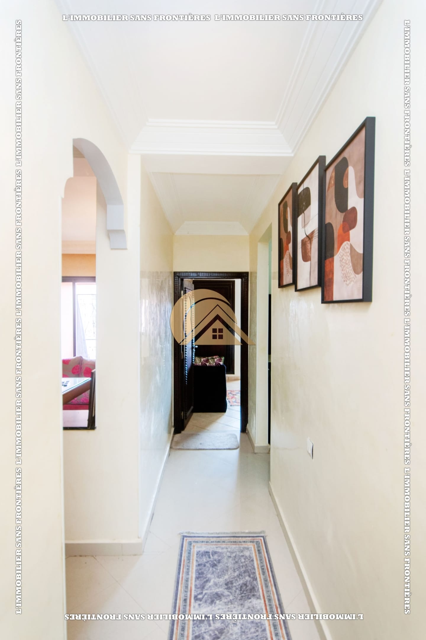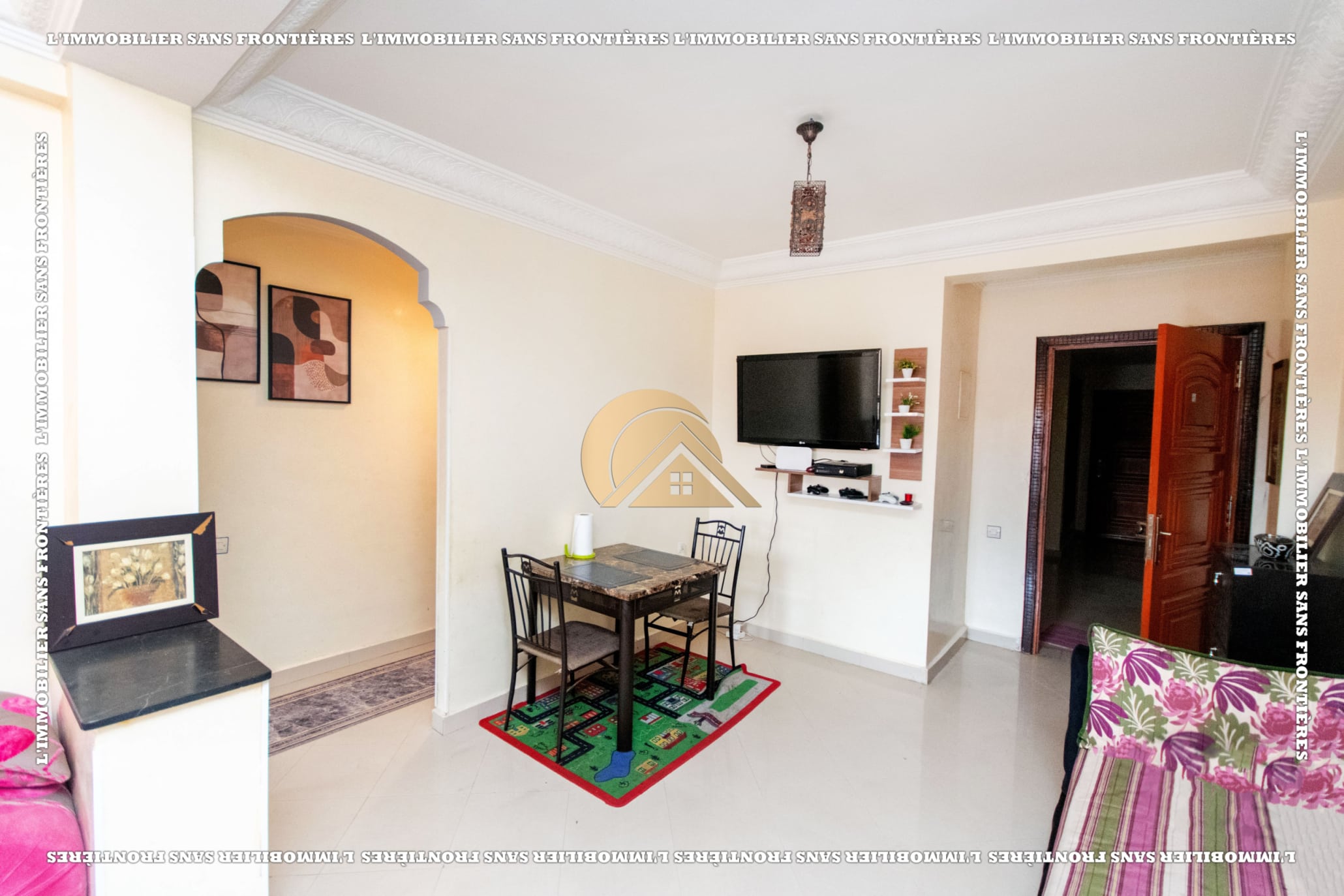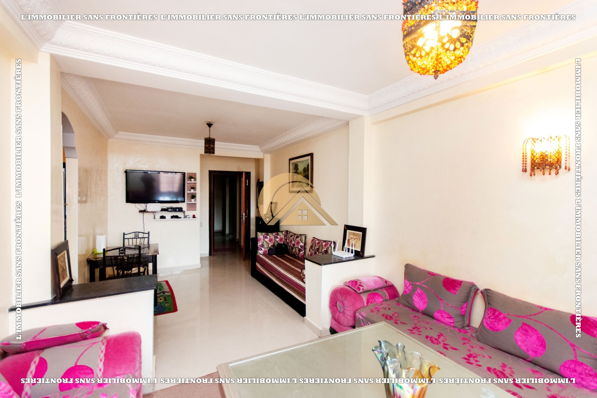 Real Estate Without Borders offers this furnished apartment for rent in Hay Charaf, Marrakech, located on the 4th floor of a modern building in a calm and secure area. The listing mentions a building with several comfort facilities. The stated area is 80 m².