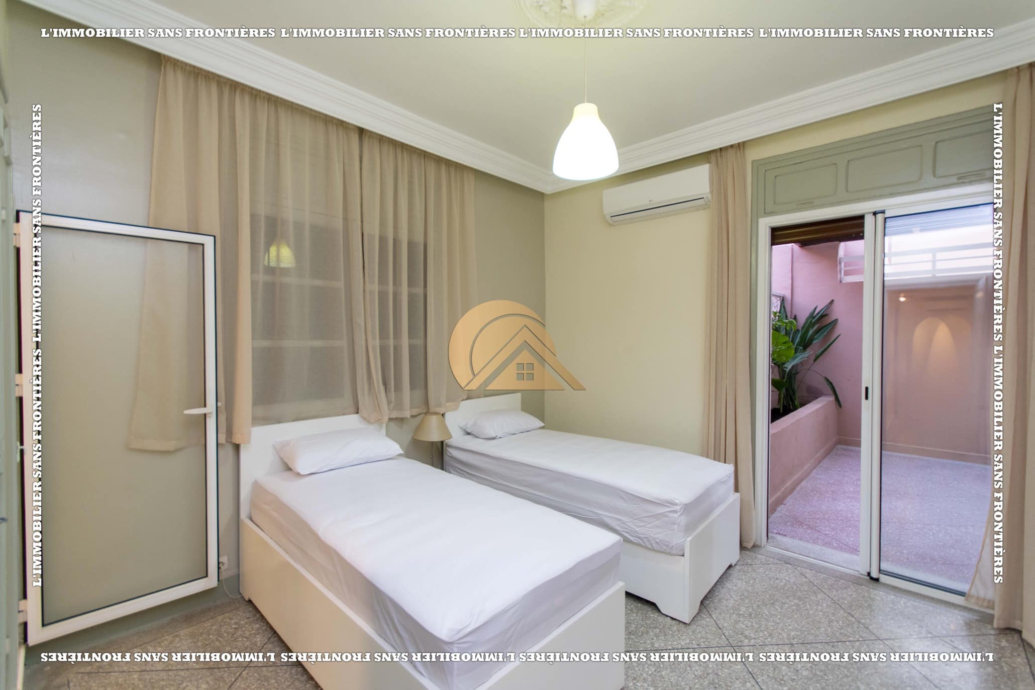 Real Estate Without Borders offers this furnished villa floor for rent in Guéliz, Marrakech, close to shops, amenities and main roads. With 150 m², it is located on the 1st floor and is suited for residential use.