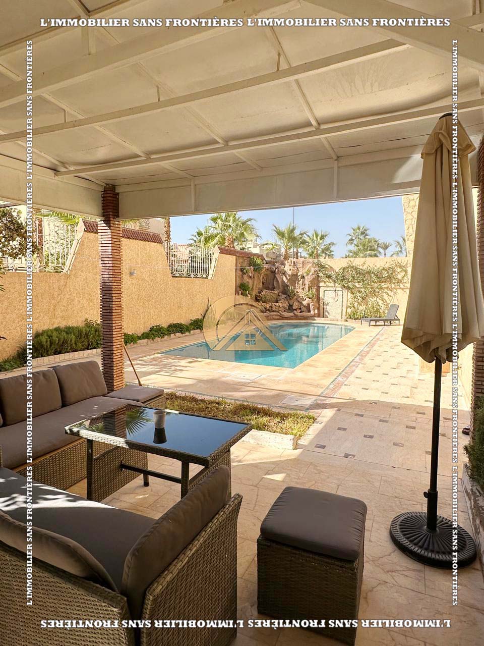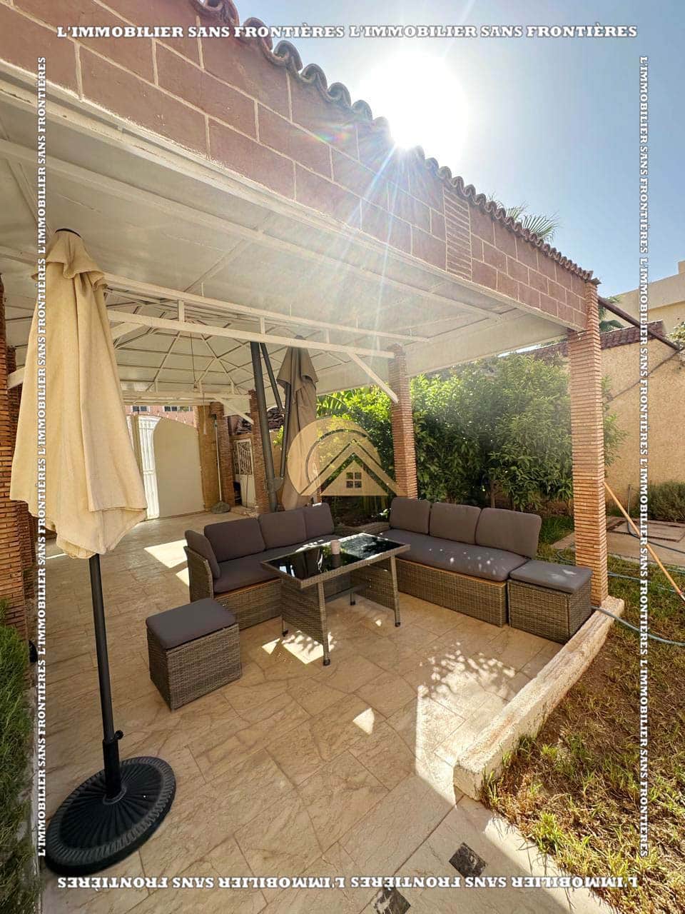Real Estate Without Borders offers this furnished villa for rent on Route de Casablanca in Marrakech, within a secure residence and a calm living environment. Set on a 400 m² plot, it includes a private garden and a private pool.