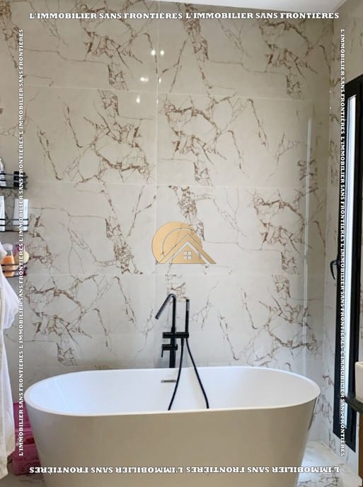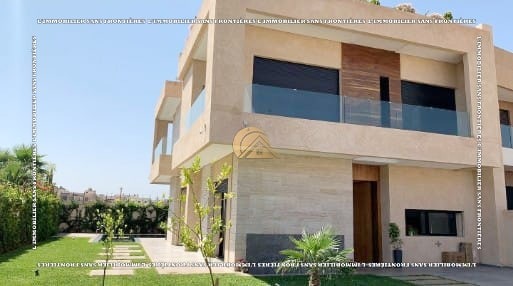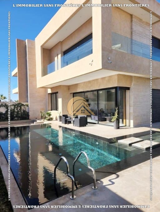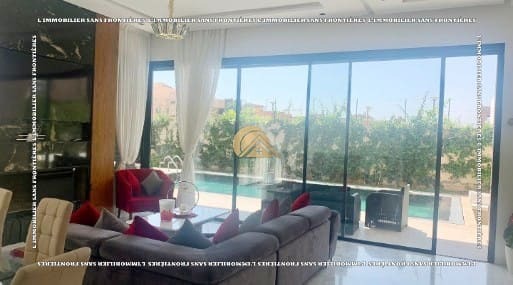 Real Estate Without Borders offers for rent this furnished villa located in Noria, Route d’Amizmiz, Marrakech, in a calm residential environment. Built on a 528 m² plot with 400 m² of living area, the villa offers generous volumes, excellent natural light, a private garden, and a private Bali-stone pool.