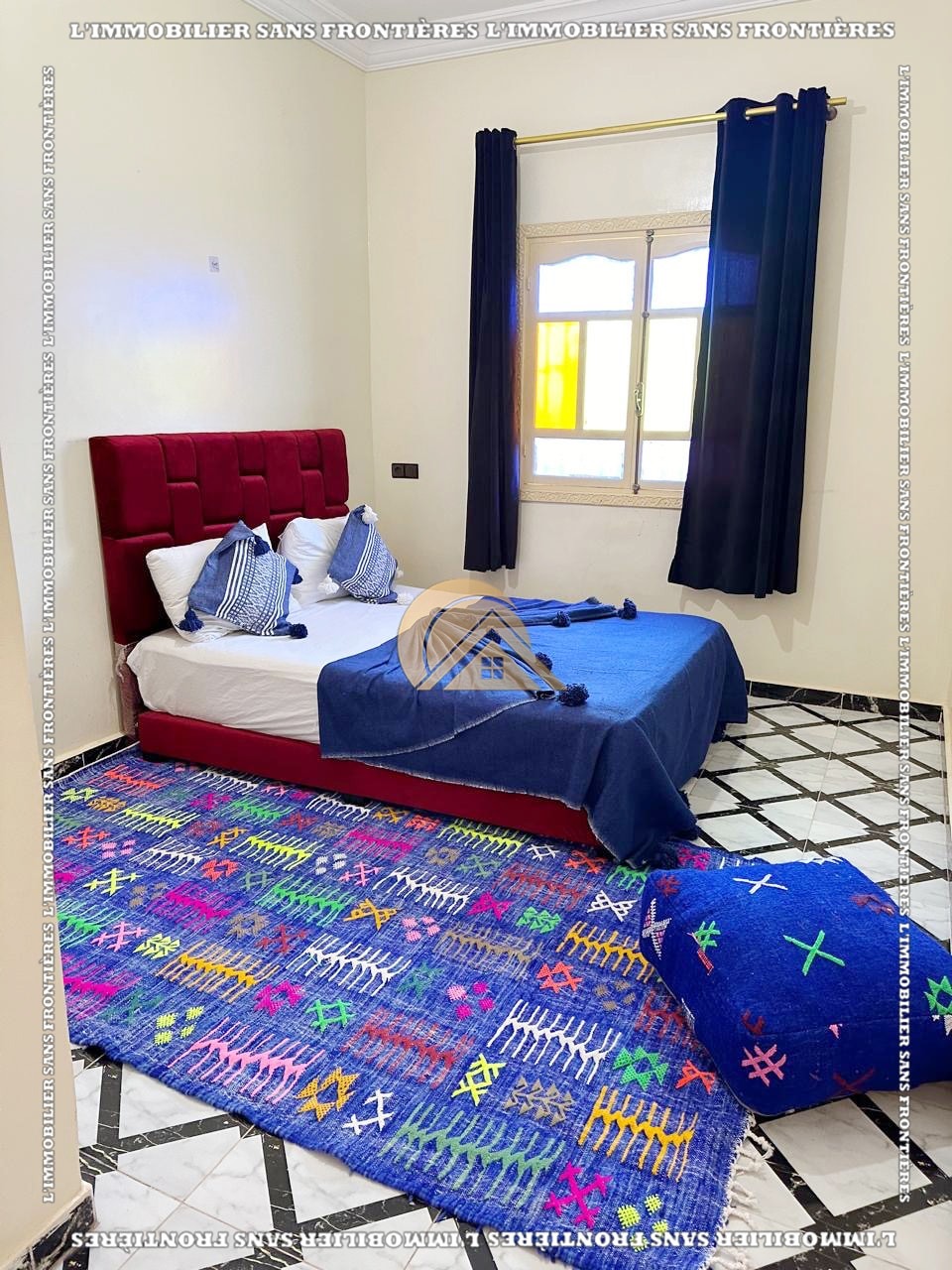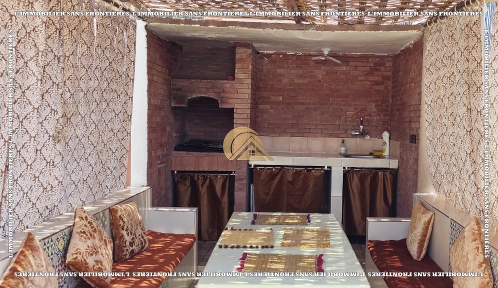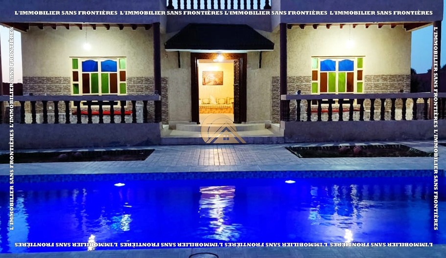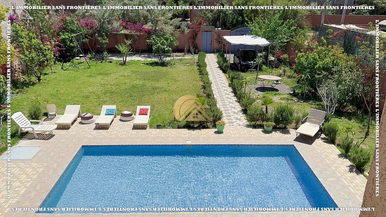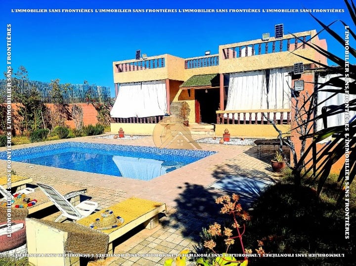 Real Estate Without Borders offers this single-storey furnished villa for rent on Route Ouarzazate Km 24, Marrakech, accessible after 800 m of track. Set on a 1080 m² plot with 186 m² of living space, it provides a private setting with garden and pool.