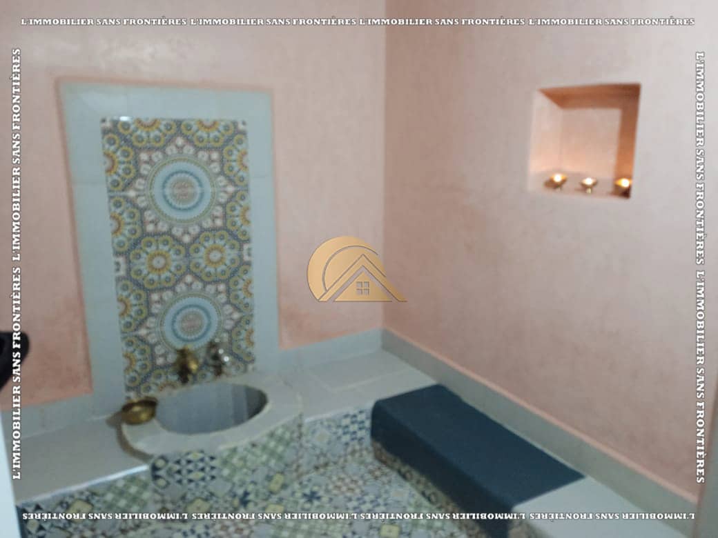 Moroccan living room – European living room – Sitting area – Equipped kitchen – Master suite with bathroom – 2 additional bedrooms – Bathroom – 2 terraces – Beldi hammam