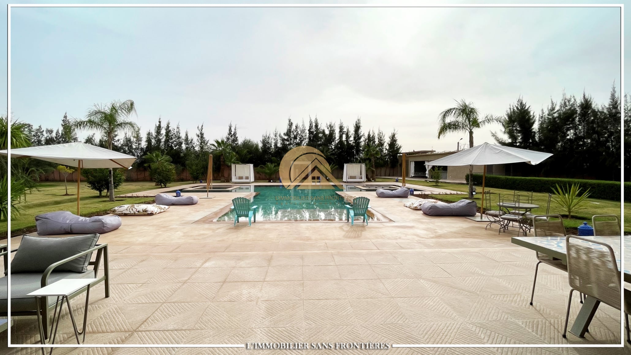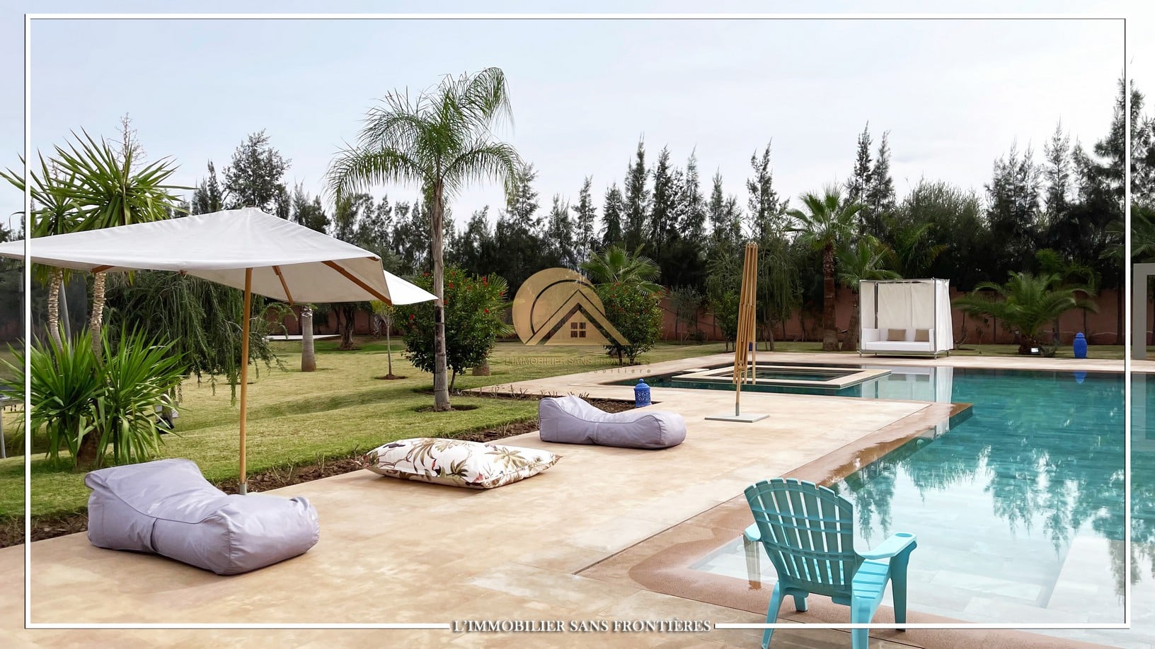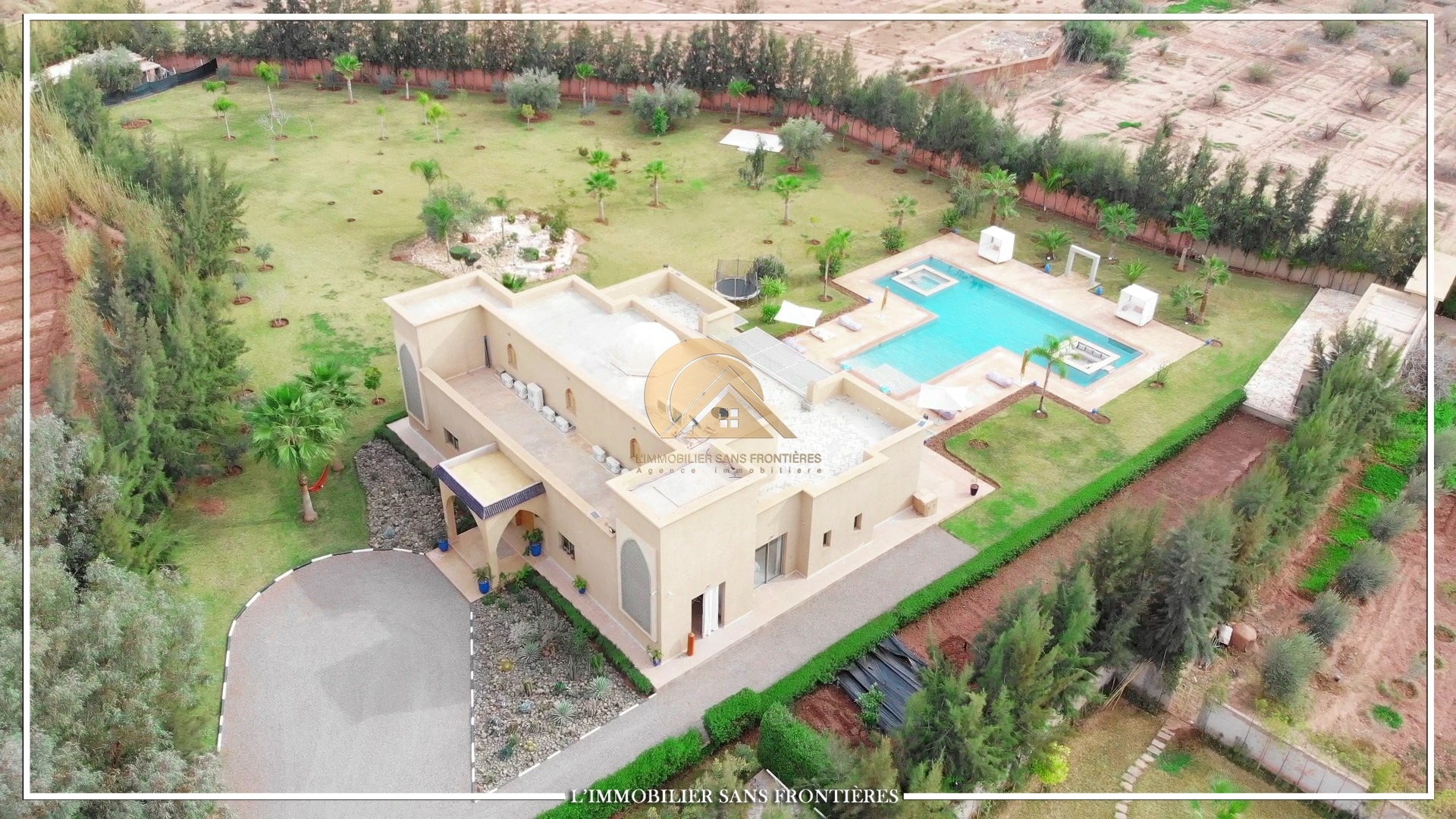 Landscaped garden – 22 m x 14 m pool – Gate and garage – Marble flooring – Atlas view