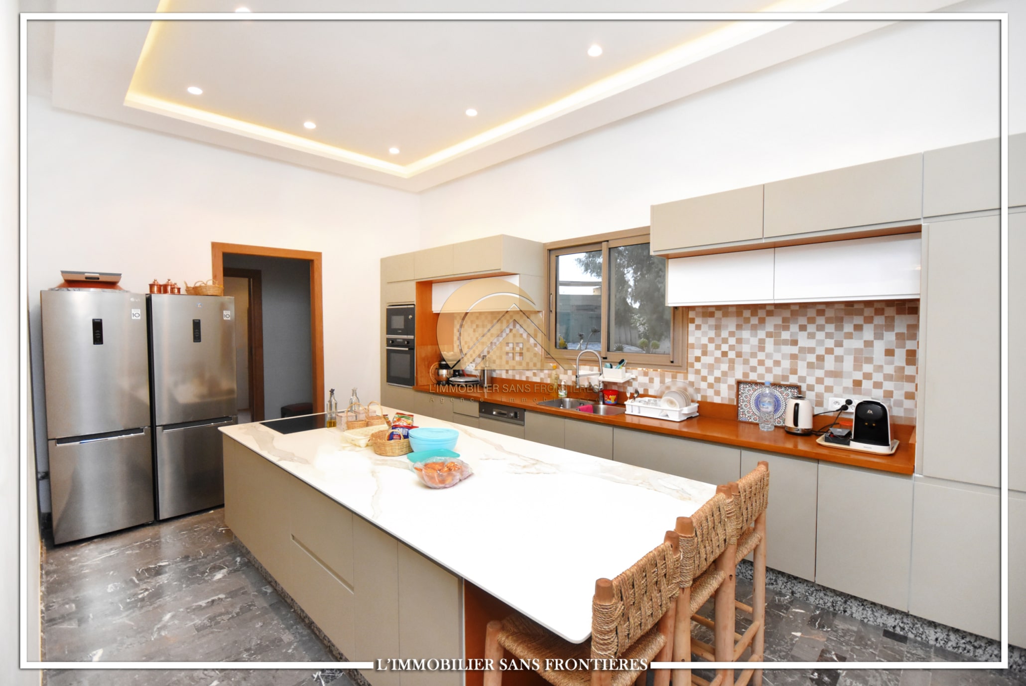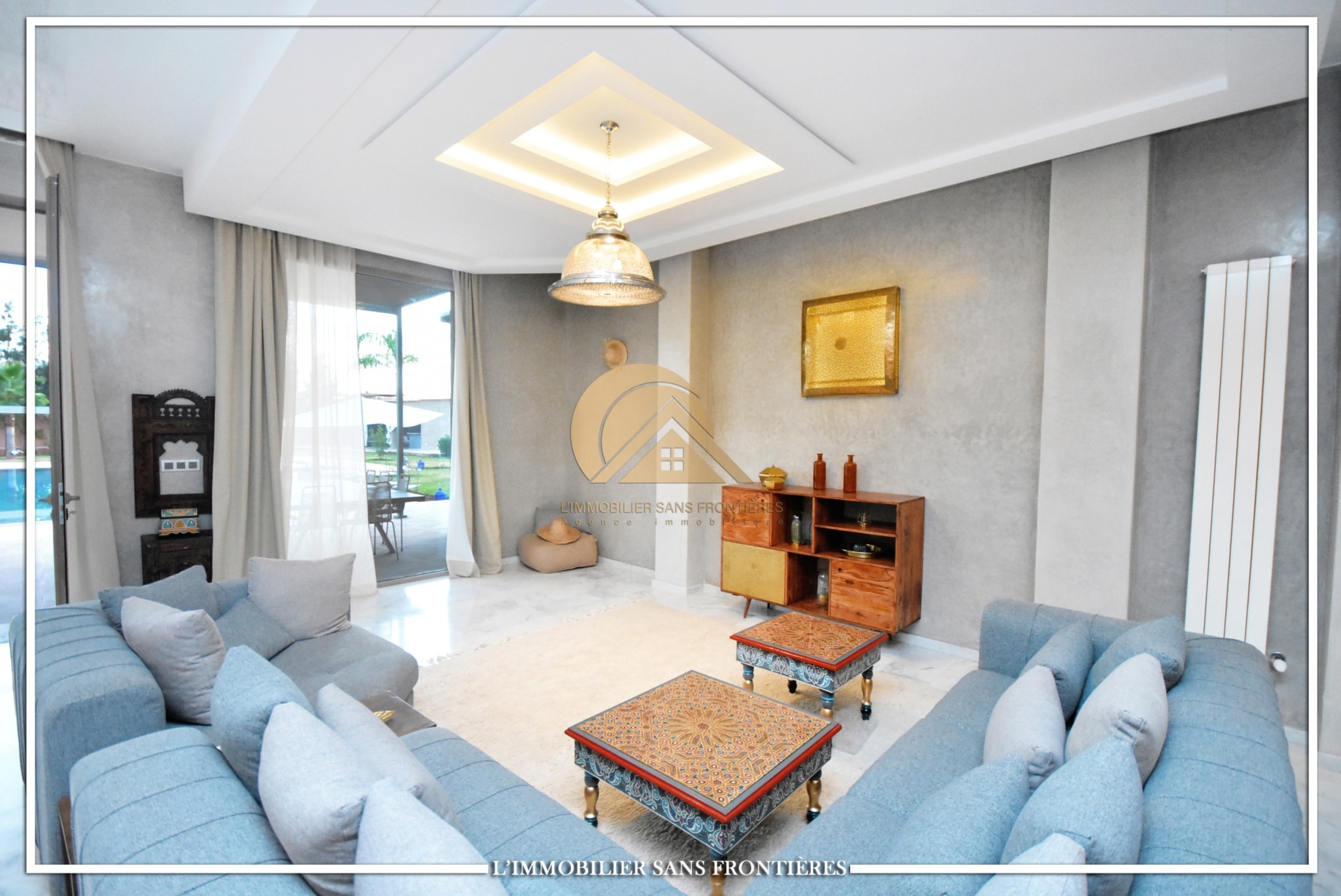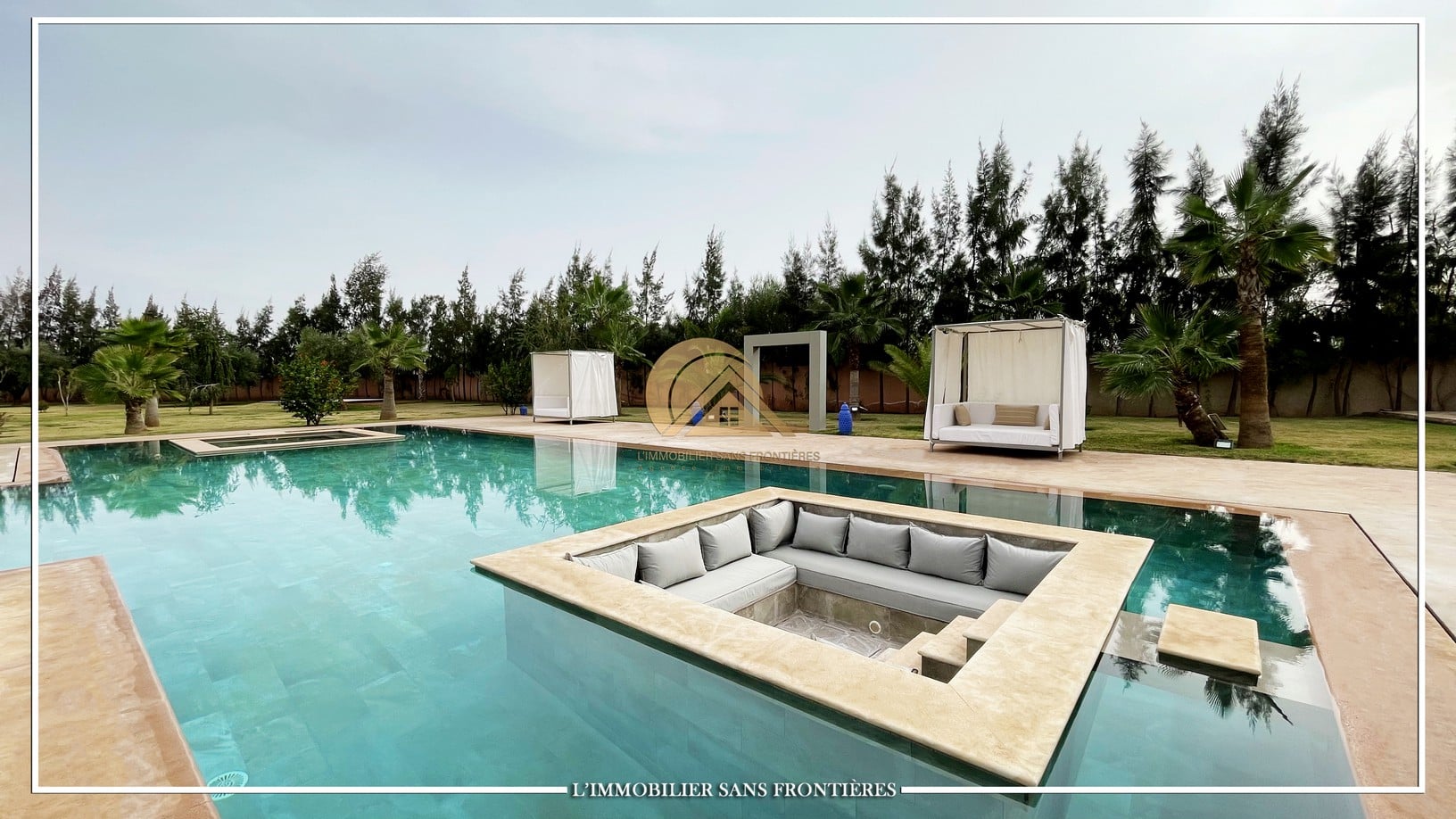Landscaped garden – 22 m x 14 m pool – Gate and garage – Marble flooring – Atlas view