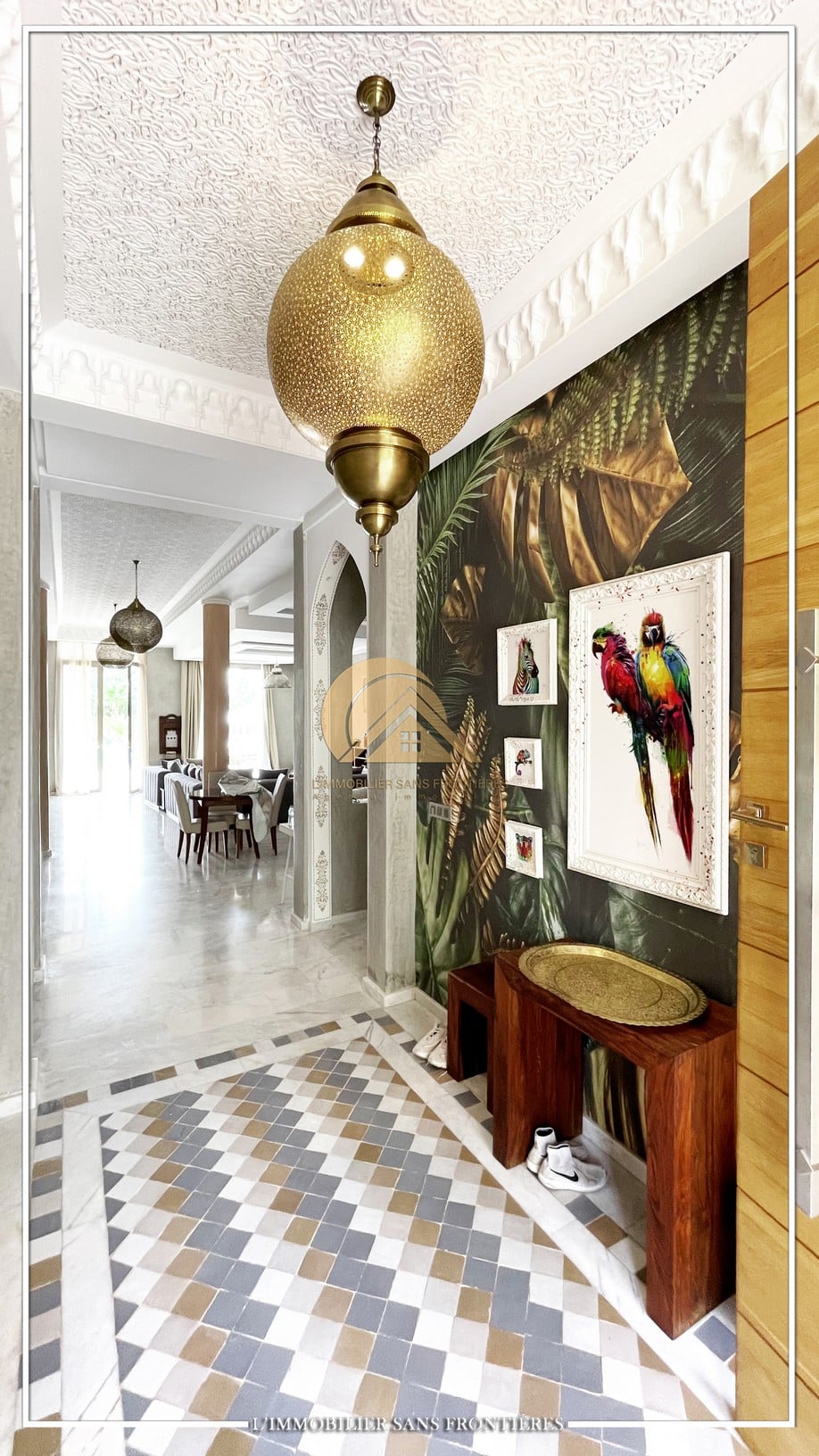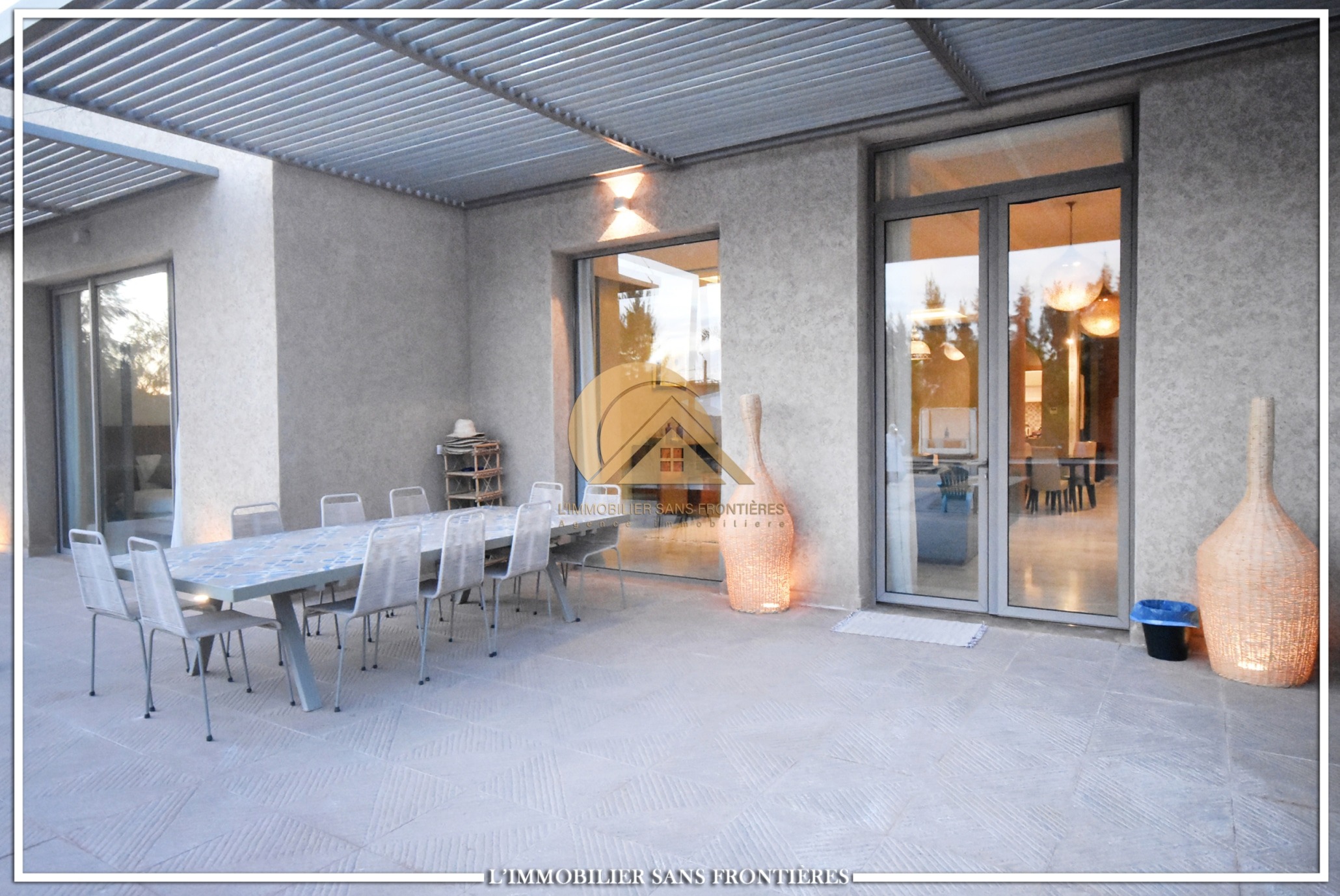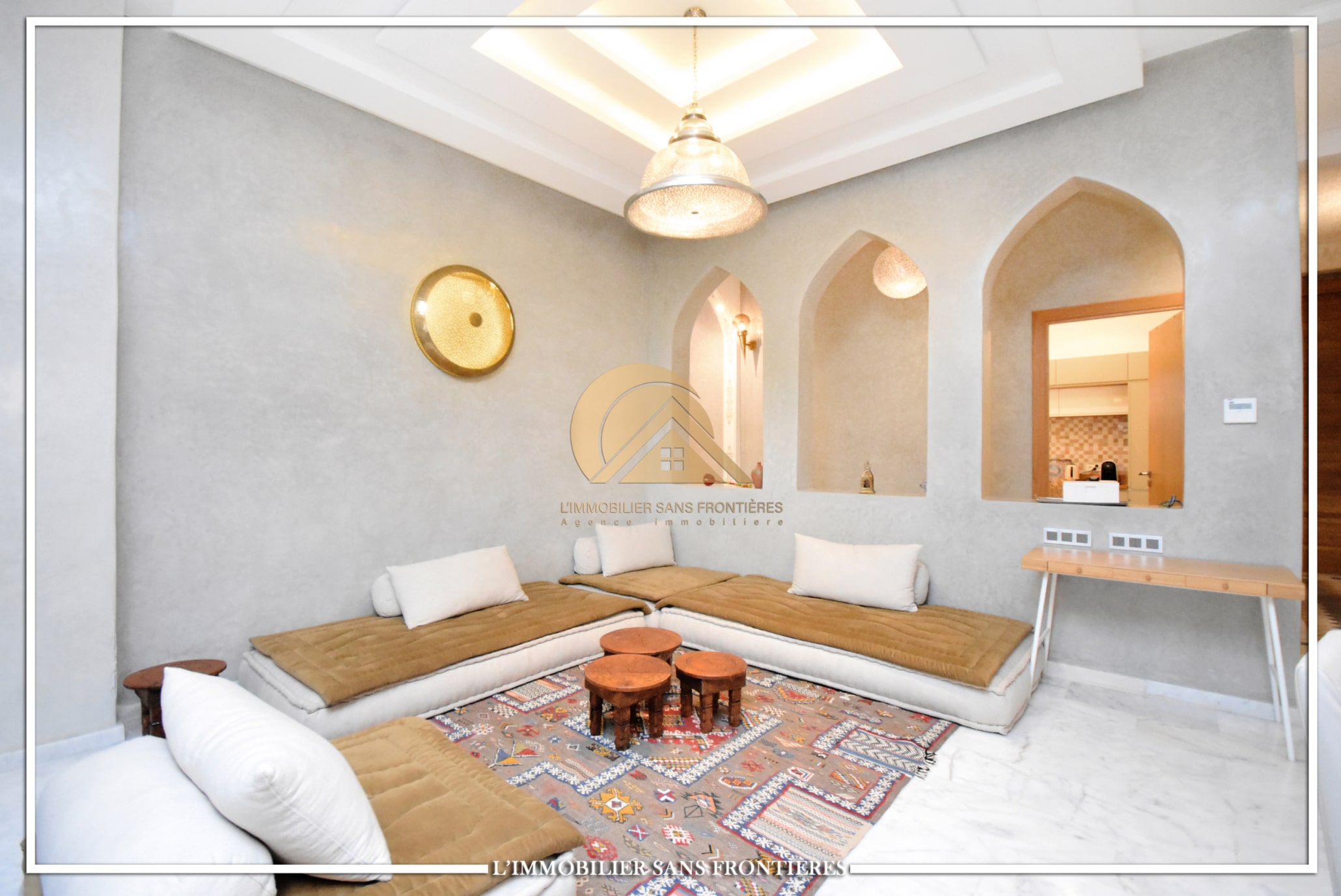 Real Estate Without Borders offers for sale this private furnished villa on Ouarzazate Road, 13 km from Marrakech. The stated land area is 7,500 m² and the stated living area is 600 m².
