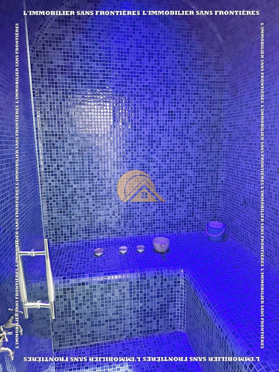 Heated pool (11 x 6 m) – Private garden – Automatic gate – Cameras and alarm with access code – 2 jacuzzis (6 people) – Steam hammam