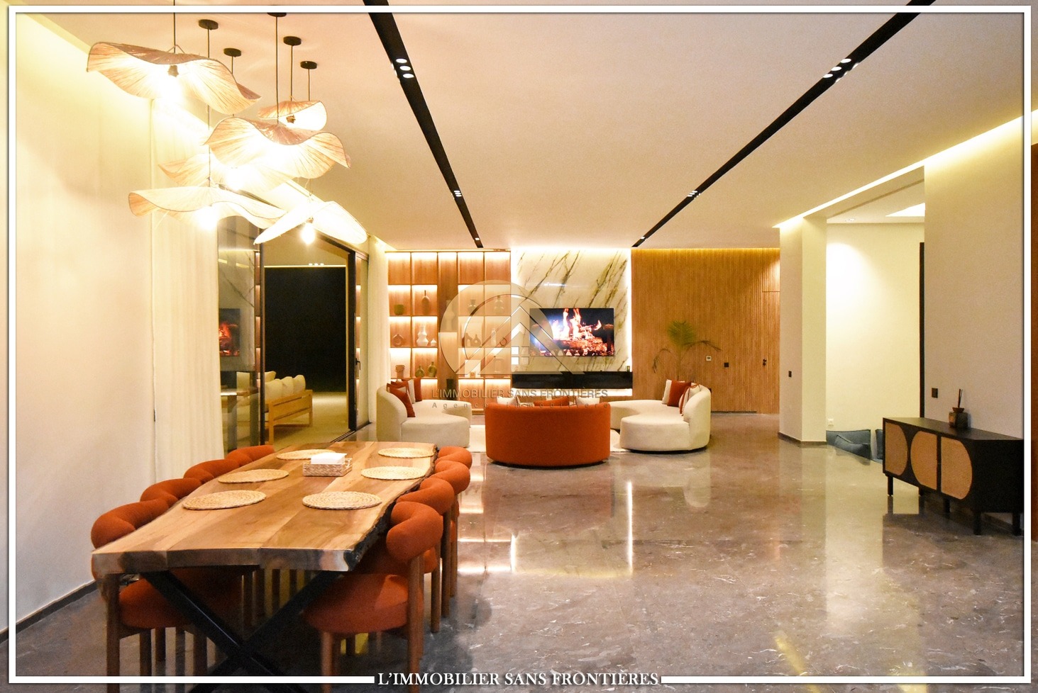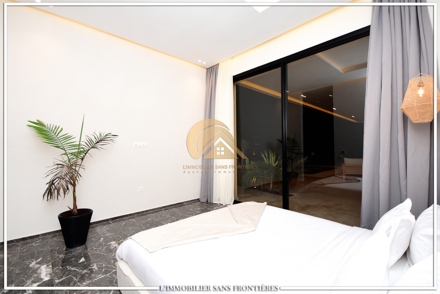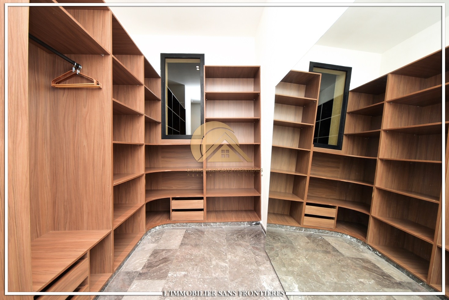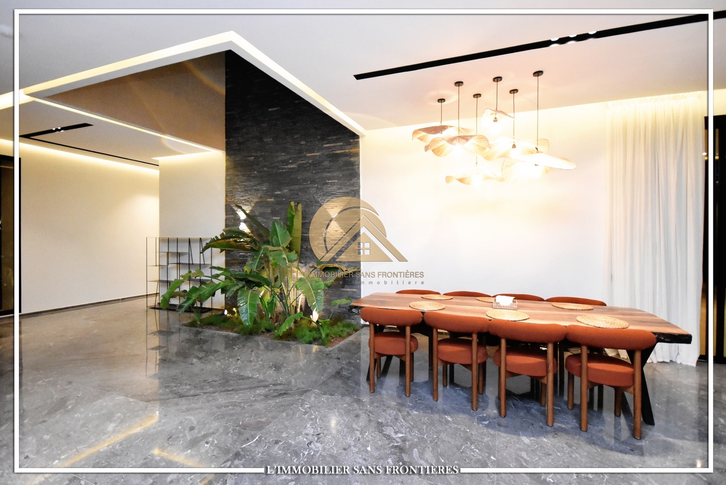 Moroccan living room – European living room – sitting area – 4 suites with bathrooms, dressings and A/C – kitchen – laundry area – guest toilets – terrace – bay window