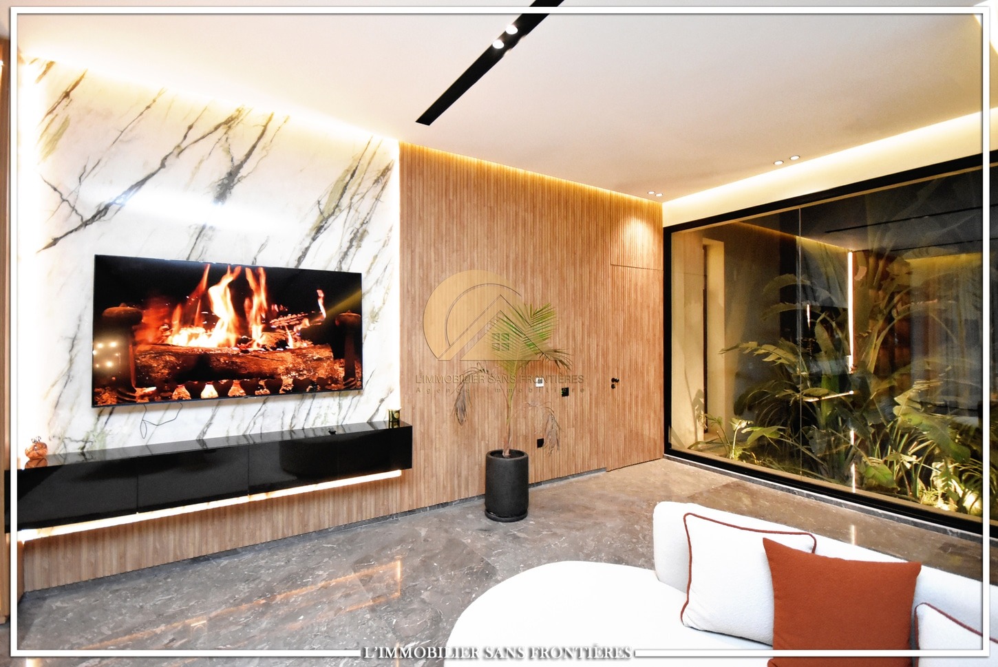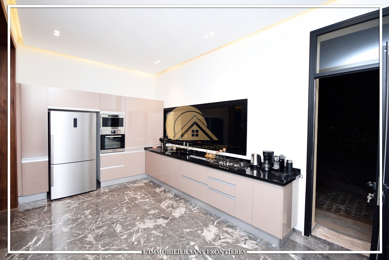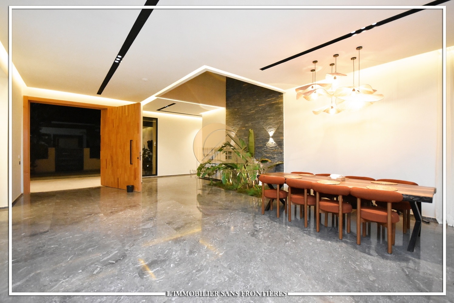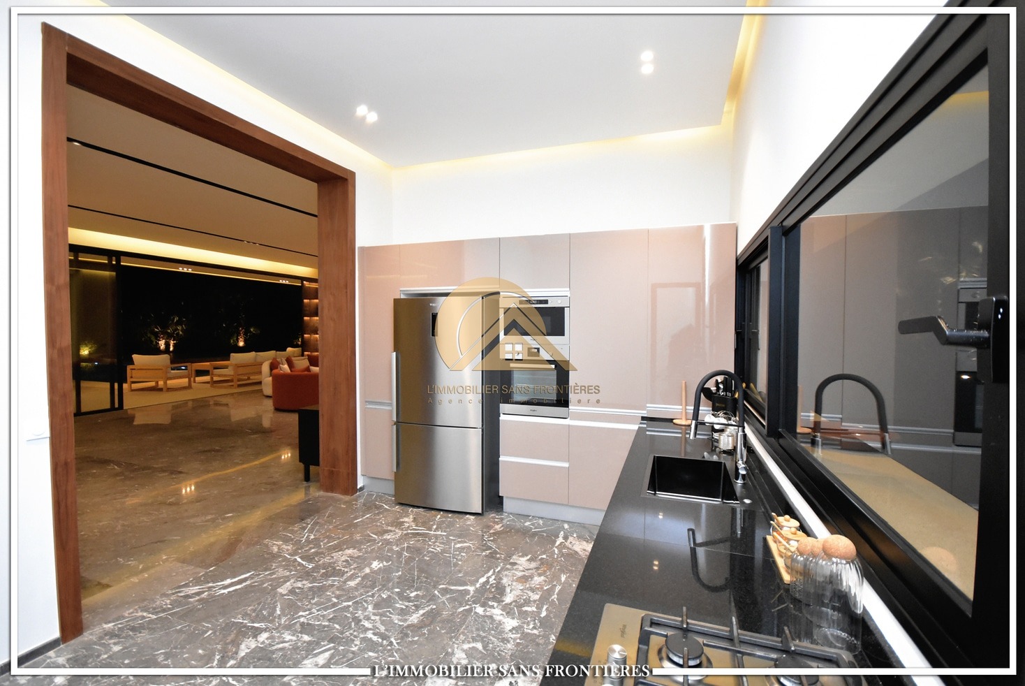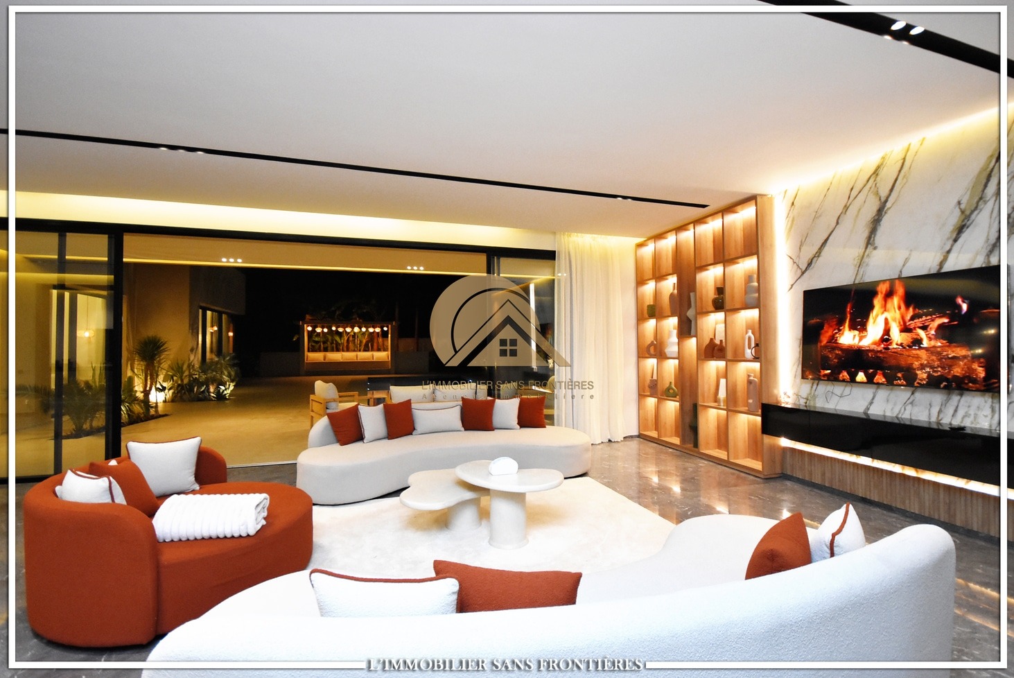 Moroccan living room – European living room – sitting area – 4 suites with bathrooms, dressings and A/C – kitchen – laundry area – guest toilets – terrace – bay window