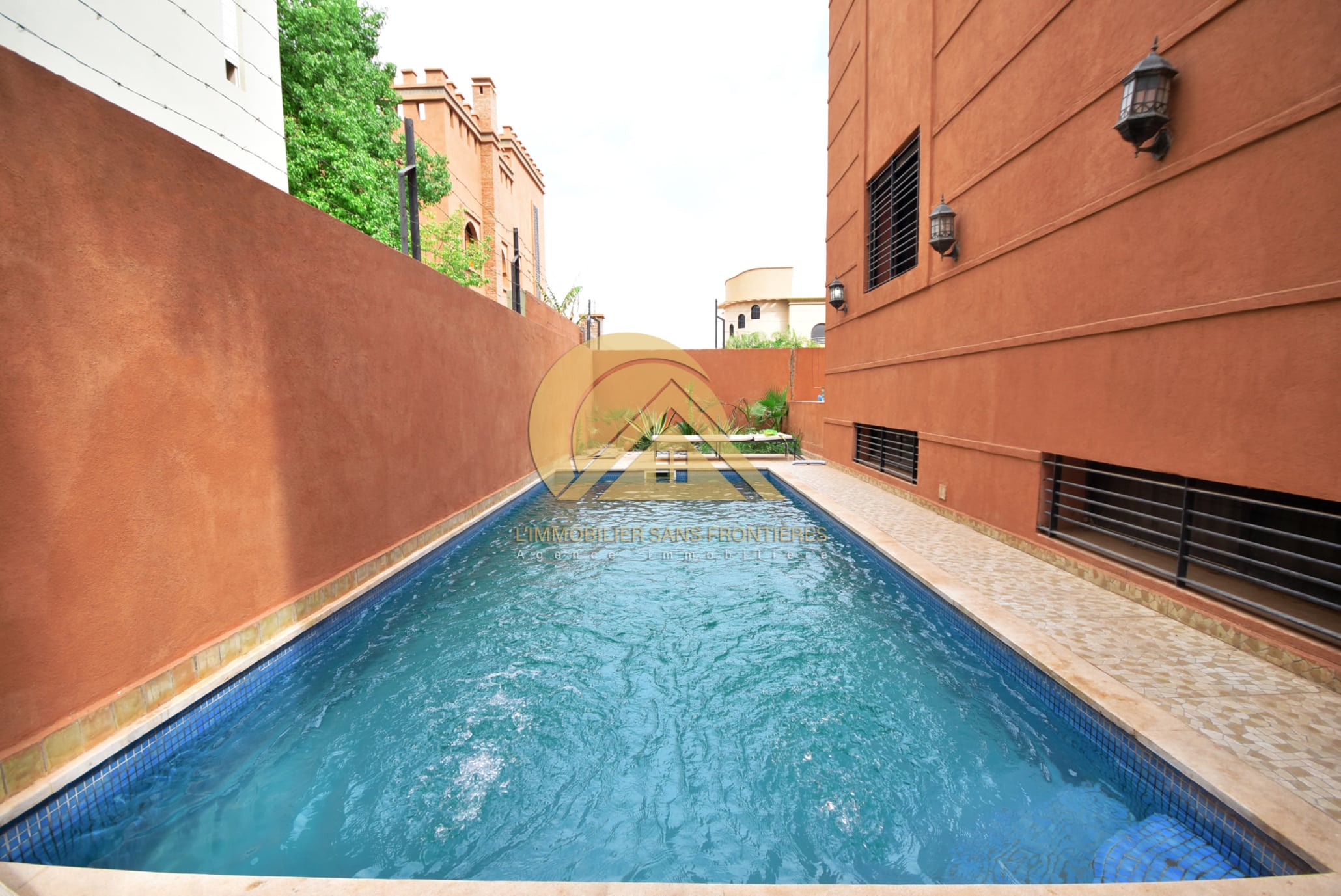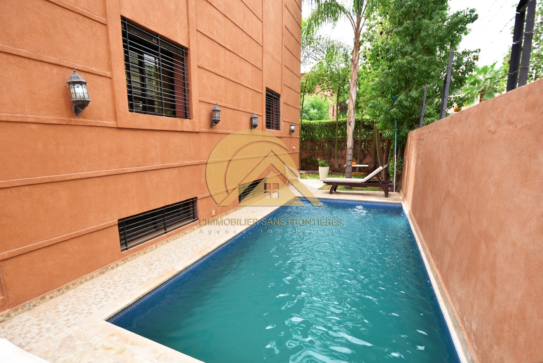 Real Estate Without Borders offers this furnished villa for sale in Targa, Marrakech. The text mentions a garden and a private pool.