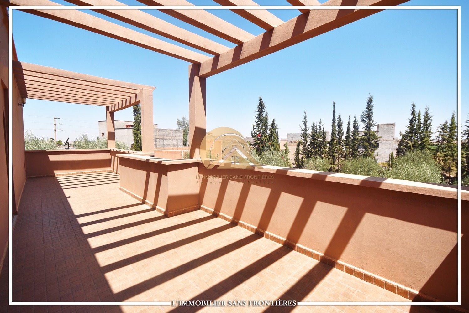 Real Estate Without Borders offers this furnished villa for sale on Route de Fes km 20, Marrakech, with no track access. It is stated with privacy, panoramic views, a private garden and a private pool, in a calm setting.