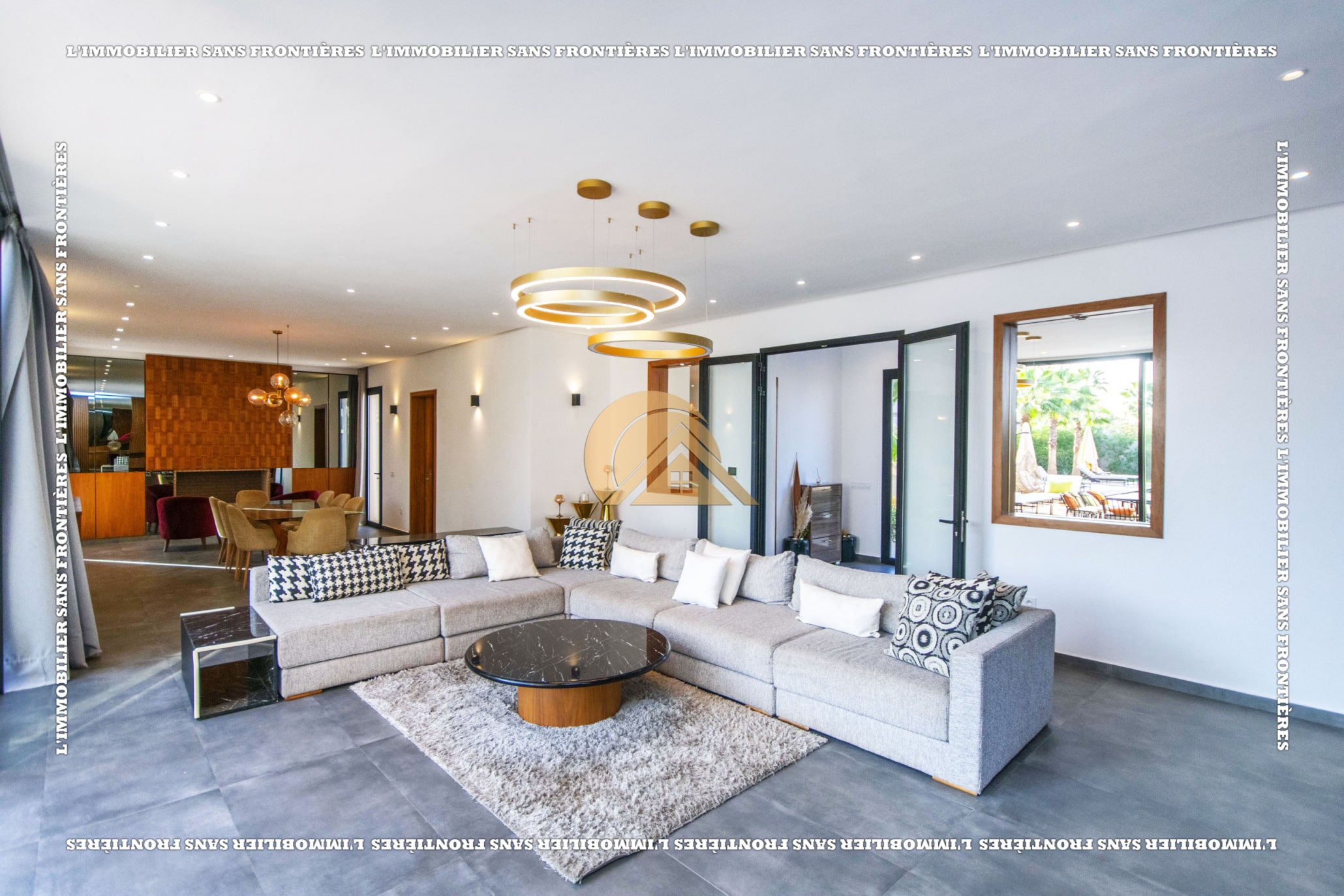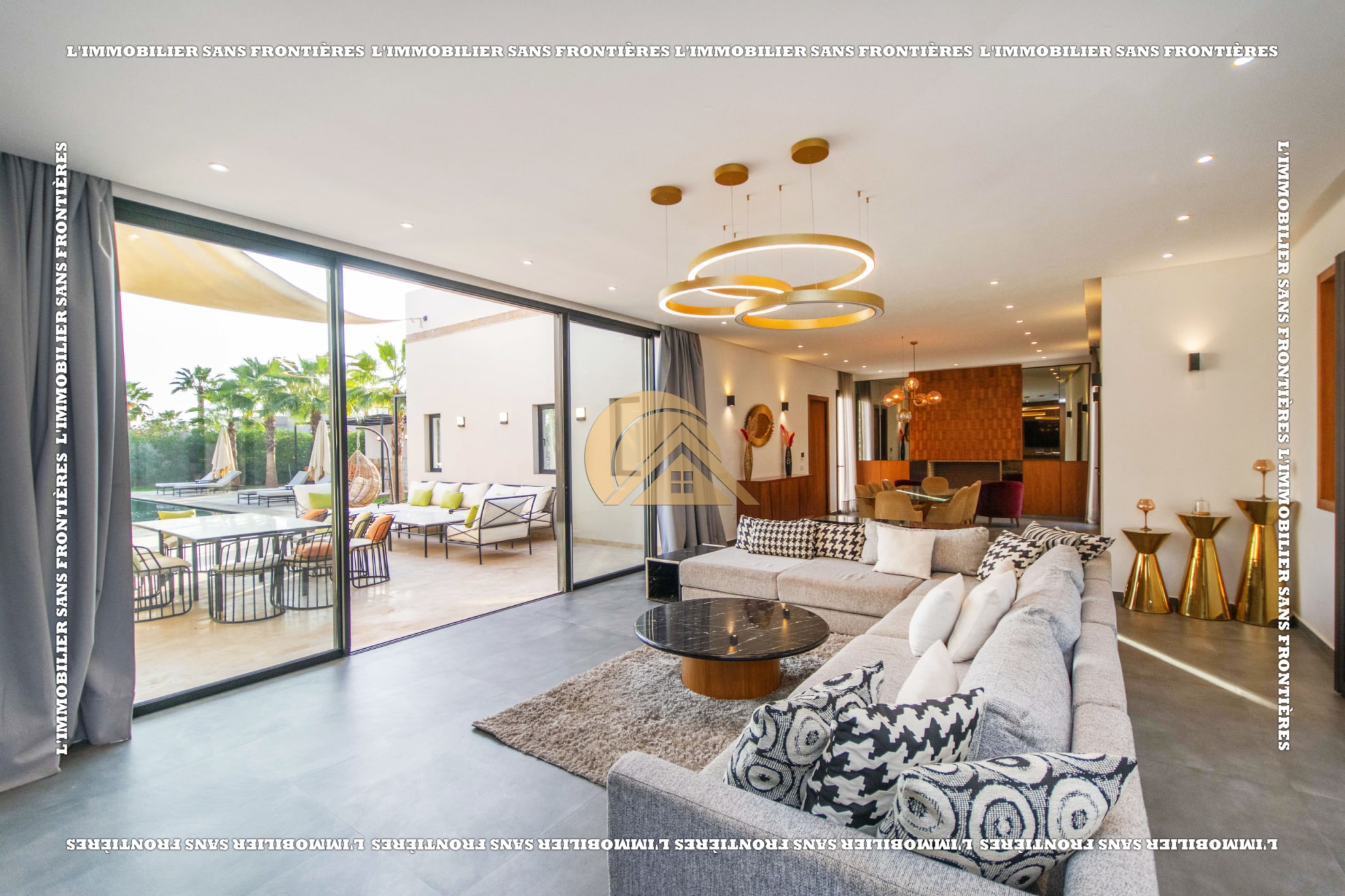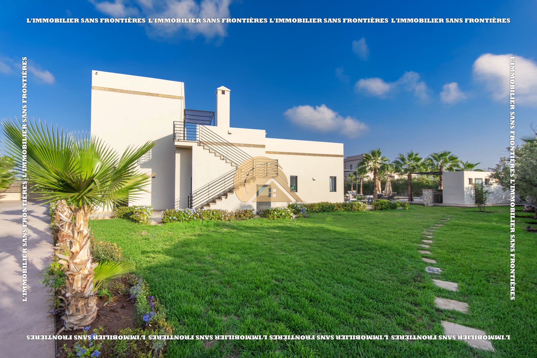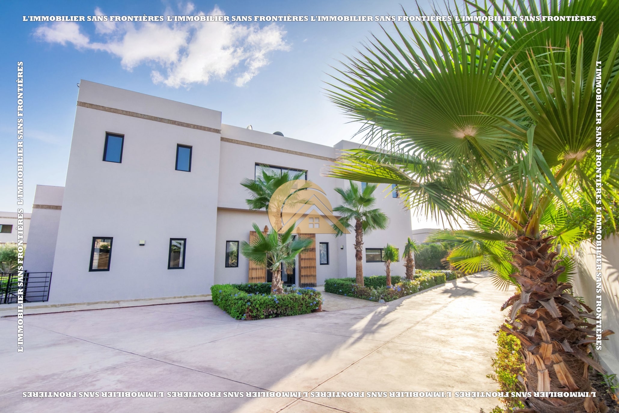 Real Estate Without Borders offers for sale this furnished villa with VNA in a residence on Route de Fès Km 18, Marrakech. The stated plot size is 2,138 m² and the living area is 430 m².