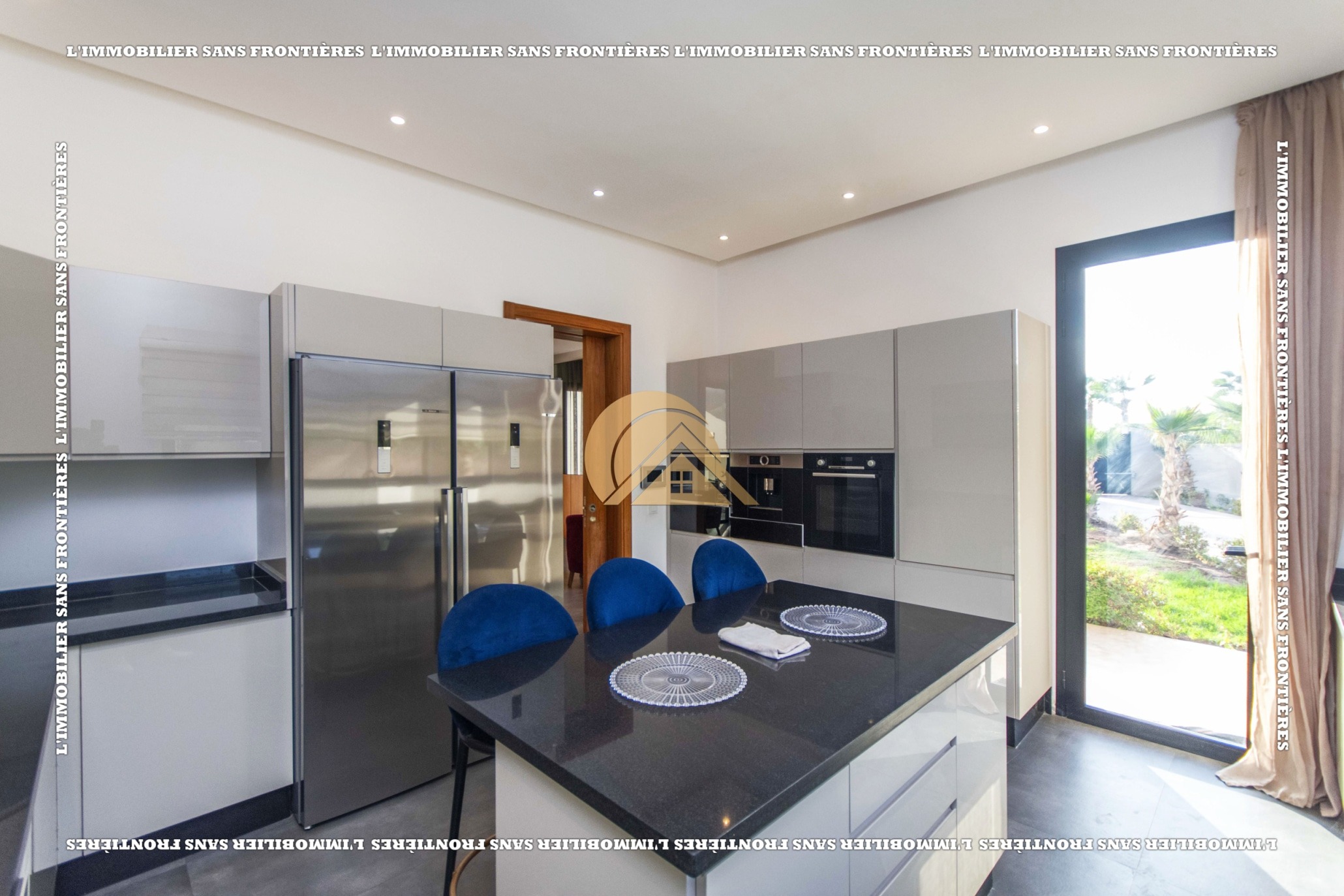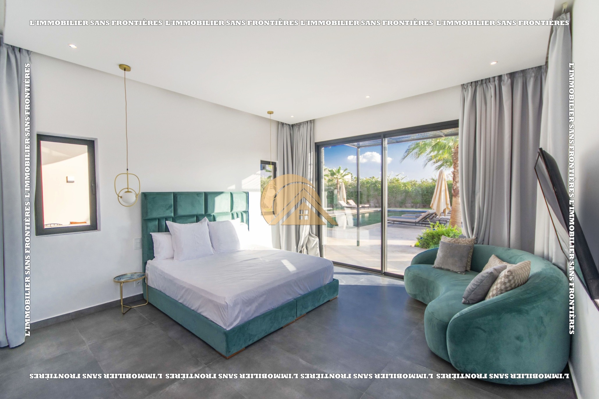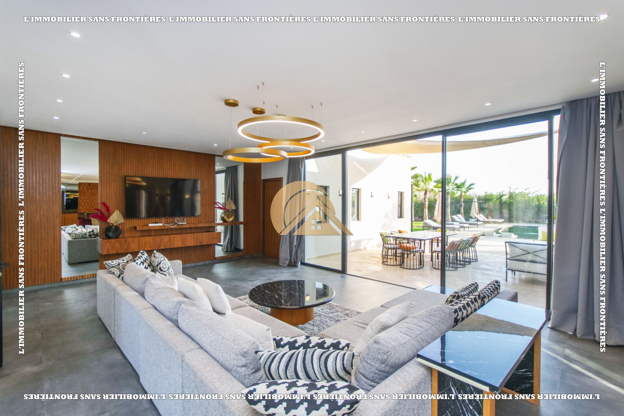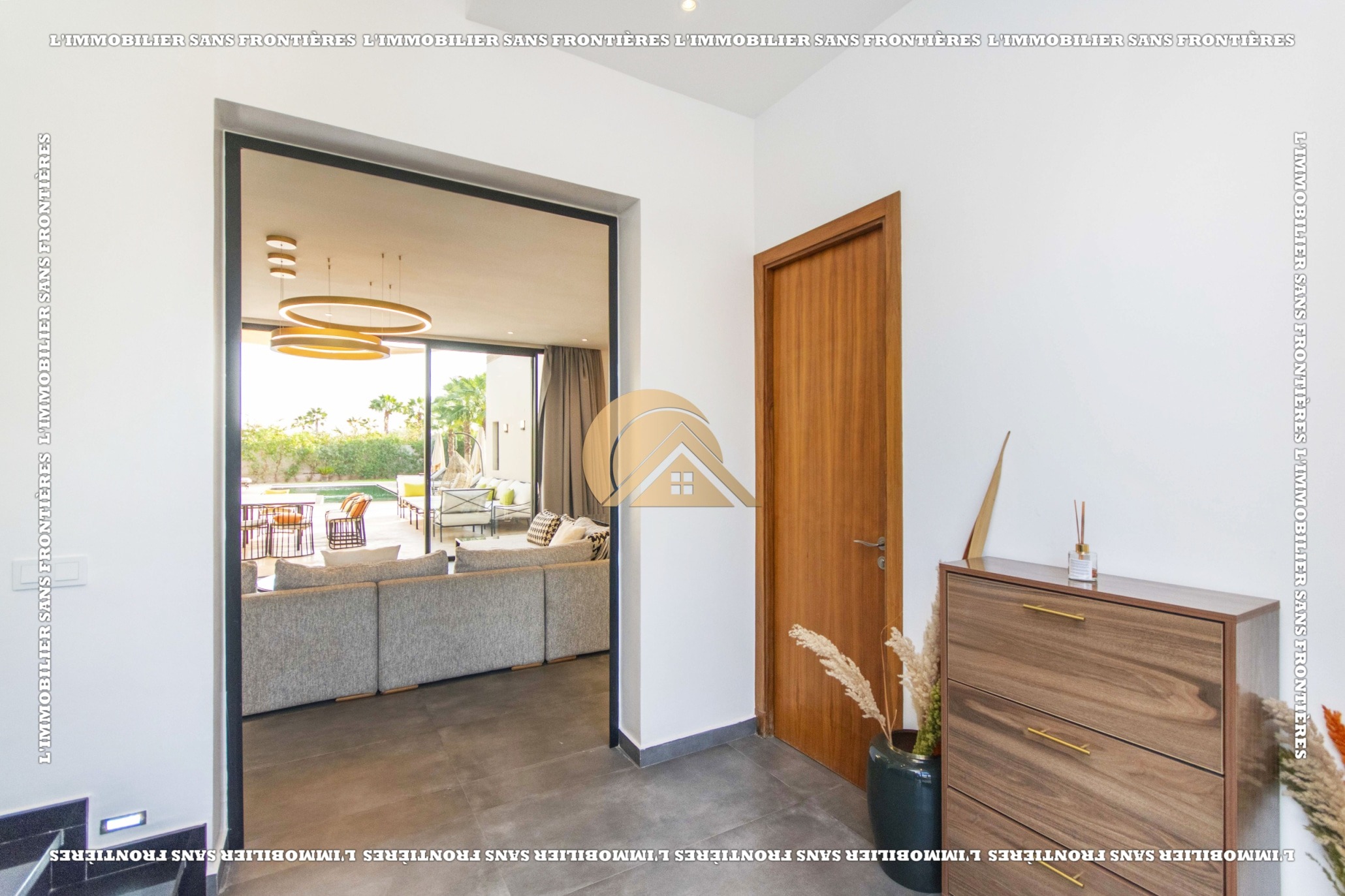 Real Estate Without Borders offers for sale this furnished villa with VNA in a residence on Route de Fès Km 18, Marrakech. The stated plot size is 2,138 m² and the living area is 430 m².